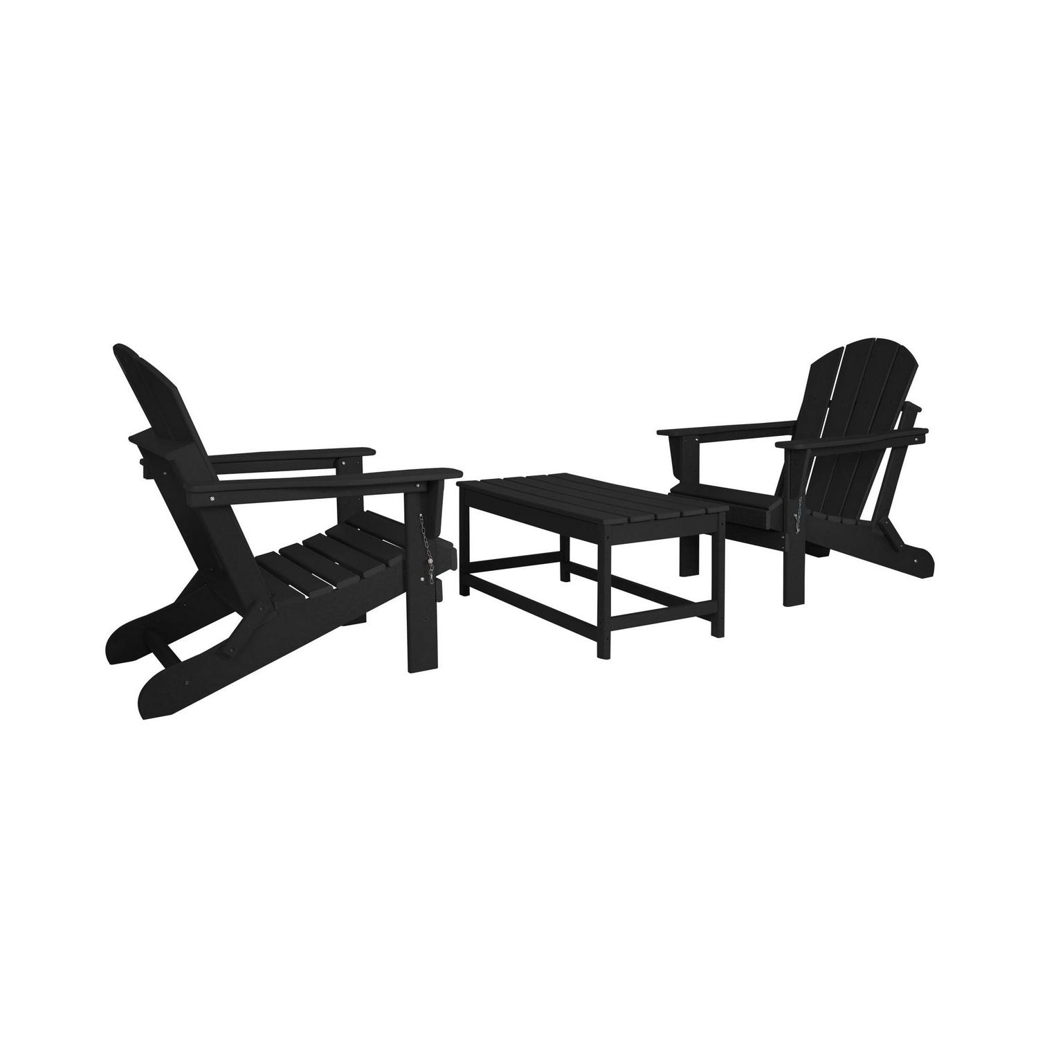 3-Piece Bistro Set Outdoor Patio Adirondack Chair with Coffee Table, Black