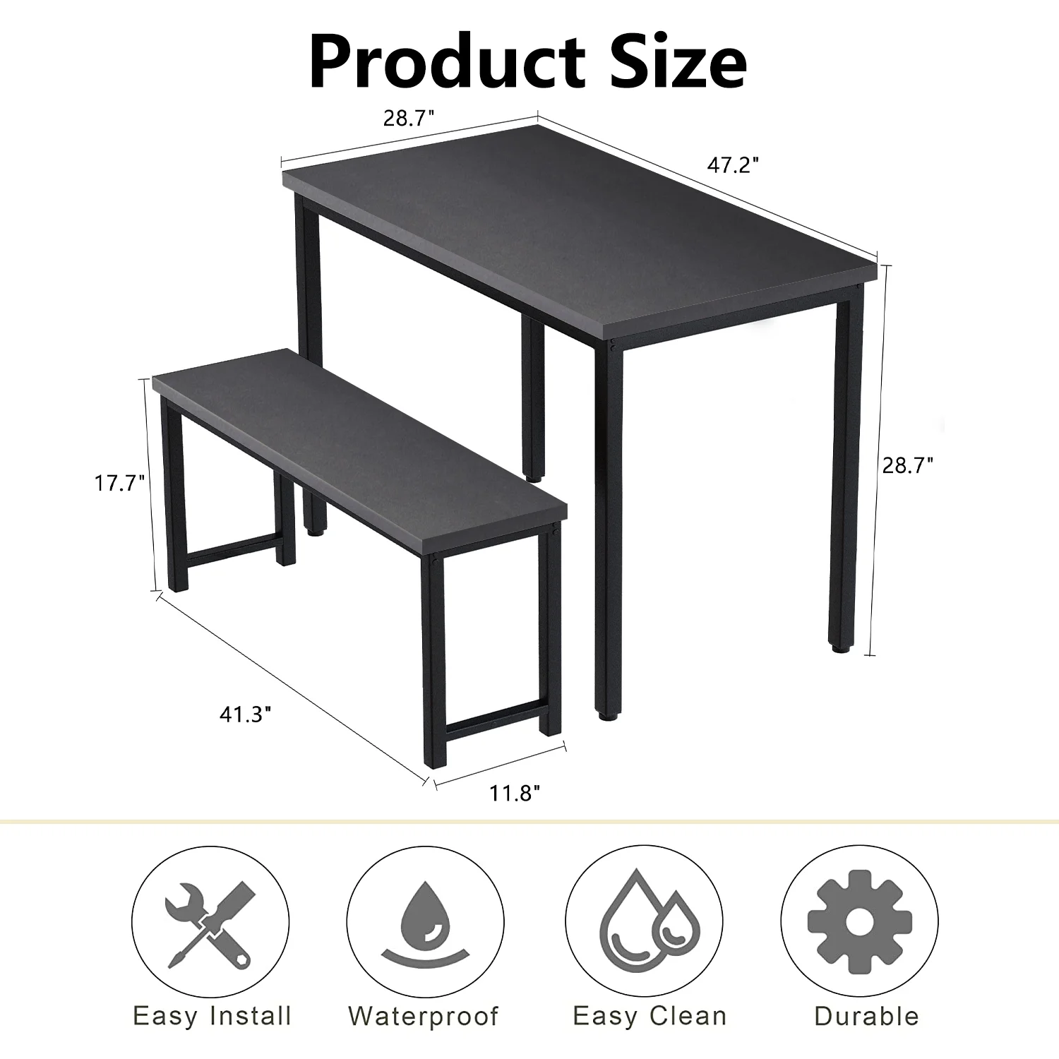 MODERN DINING TABLE SET – The dining table with bench set comes complete with a spacious table and 2 benches. Designed with classic color schemes, choose from two eye-catching neutral colors, dining table set feature natural wood texture sealed in a protective PVC coating that will add a modern touch to your home. SUPER DURABLE AND STURDY – The Dining Table Set tabletop is made of manufactured wood with perfect edge technology, well made and solid, waterproof and anti-scratch, very easy to clean. The Dining Table Set legs are made of heavy duty powder coated metal, which ensures stability and durability. PERFECT SIZE – The Dining Table Set’ Compact size allows it to multi-task as a breakfast/dining table, or as a writing study desk/work-space, and It’s perfect for the kitchen, dining room, dining room and coffee shop. The Dining Table Set can accommodate 2-4 people and is an ideal place for family dinner or a small gathering of friends. SIMPLE INSTALLATION – Designed with easy and fast assembly in mind, each dining table set comes conveniently flat packed with easy to follow instructions and all necessary tools included. Our Dining Table Set is a great solution for small spaces, small condo, small kitchen, studio apartment, and more. At UHOMEPRO, we care about quality as much as you do, get the perfect set of dining table set for your home. 100% SATISFACTION GUARANTEED- Actual color and size may vary slightly from the image due to different computer performances. Because of manual measurement, please allow 1-2cm slight deviation. Welcome to email us if there has any question about our Dining Table Set, we will provide support for you within 24 hours. Except for quality issues, URHOMERPO does not provide return service. MODERN DINING TABLE SET – The dining table with bench set comes complete with a spacious table and 2 benches. Designed with classic color schemes, choose from two eye-catching neutral colors, dining table set feature natural wood texture sealed in a protective PVC coating that will add a modern touch to your home. SUPER DURABLE AND STURDY – The Dining Table Set tabletop is made of manufactured wood with perfect edge technology, well made and solid, waterproof and anti-scratch, very easy to clean. The Dining Table Set legs are made of heavy duty powder coated metal, which ensures stability and durability. PERFECT SIZE – The Dining Table Set’ Compact size allows it to multi-task as a breakfast/dining table, or as a writing study desk/work-space, and It’s perfect for the kitchen, dining room, dining room and coffee shop. The Dining Table Set can accommodate 2-4 people and is an ideal place for family dinner or a small gathering of friends. SIMPLE INSTALLATION – Designed with easy and fast assembly in mind, each dining table set comes conveniently flat packed with easy to follow instructions and all necessary tools included. Our Dining Table Set is a great solution for small spaces, small condo, small kitchen, studio apartment, and more. At UHOMEPRO, we care about quality as much as you do, get the perfect set of dining table set for your home. 100% SATISFACTION GUARANTEED- Actual color and size may vary slightly from the image due to different computer performances. Because of manual measurement, please allow 1-2cm slight deviation. Welcome to email us if there has any question about our Dining Table Set, we will provide support for you within 24 hours.