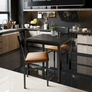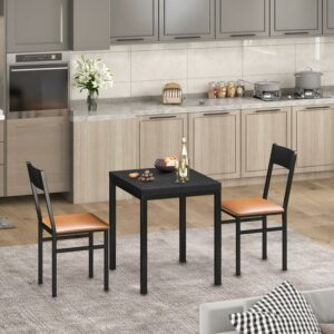 3 Piece Dining Table Set with Cushioned Chairs for Dining Room, Kitchen, Small Spaces, Espresso and Brown