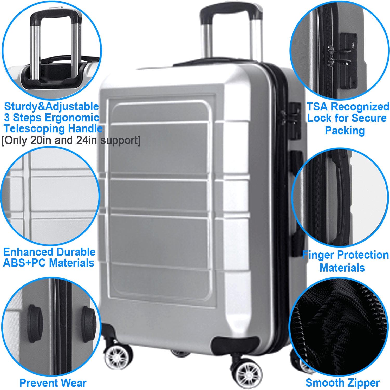 3 Piece Luggage Sets ,ABS Hardshell Lightweight Suitcase with TSA Lock Double Spinner Wheels, Silver