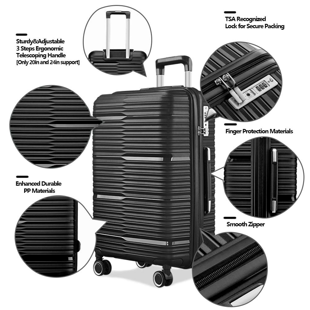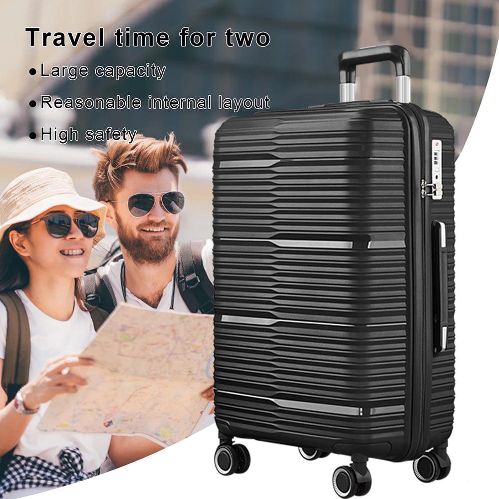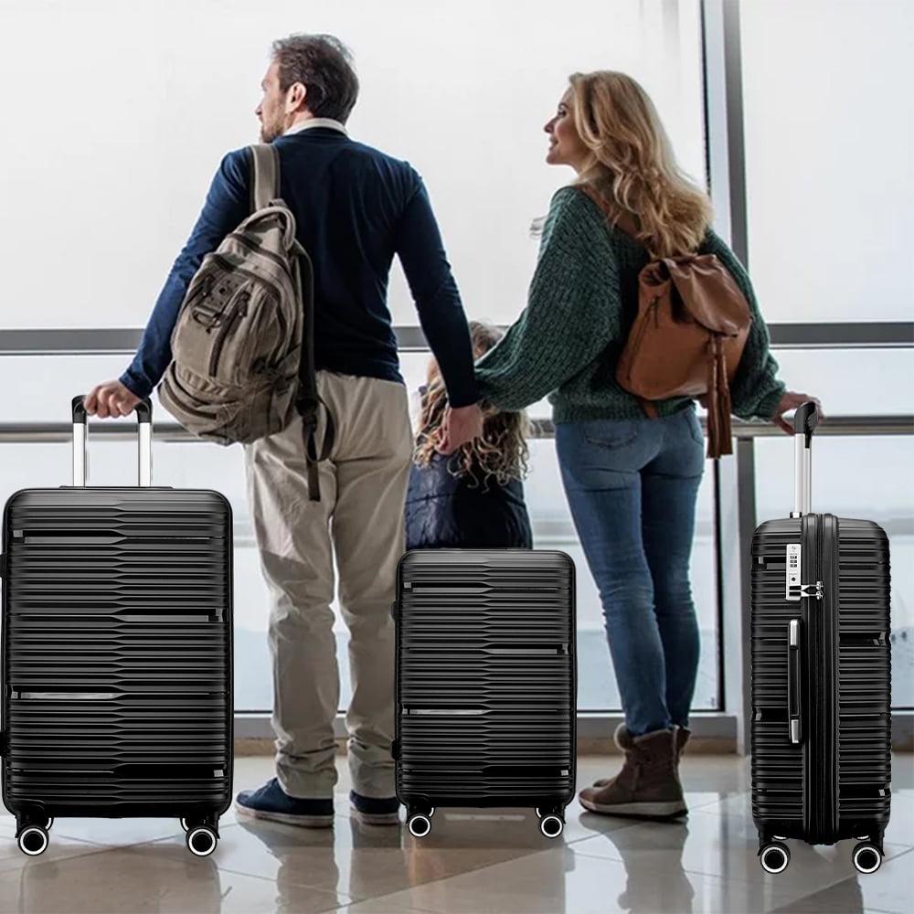 3 Piece Luggage Sets, PP Hardside Suitcase Set, TSA Lock, Black
