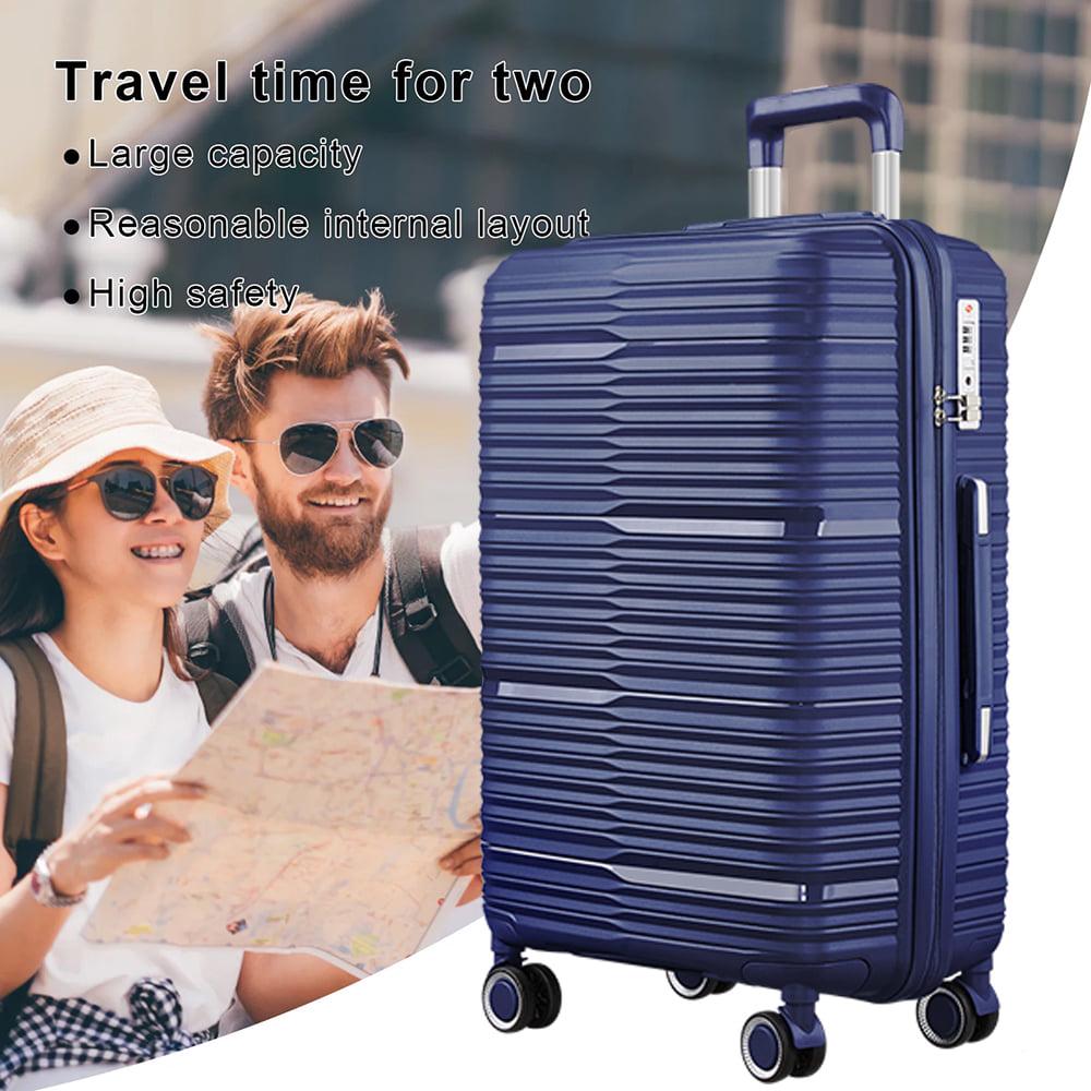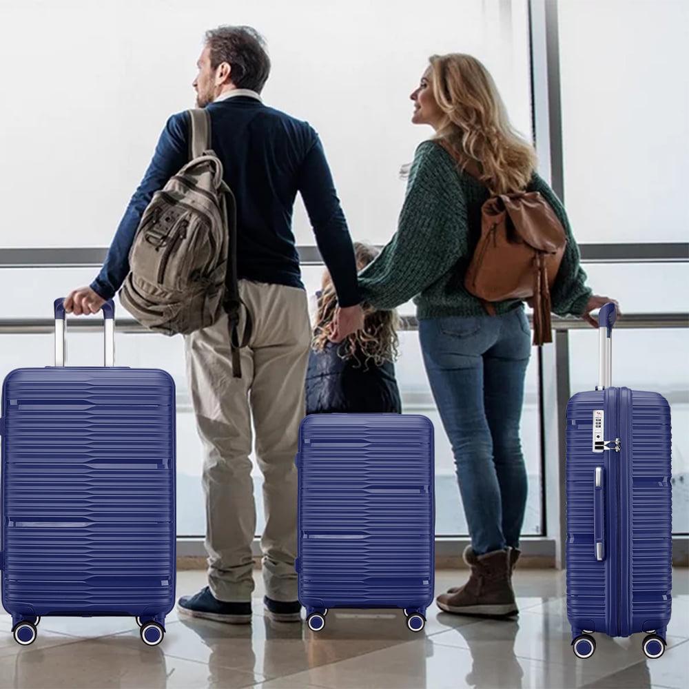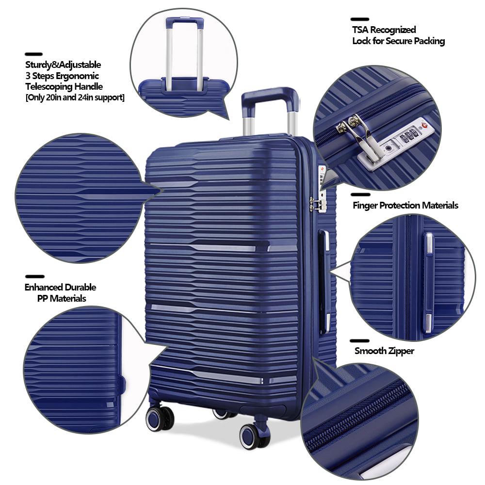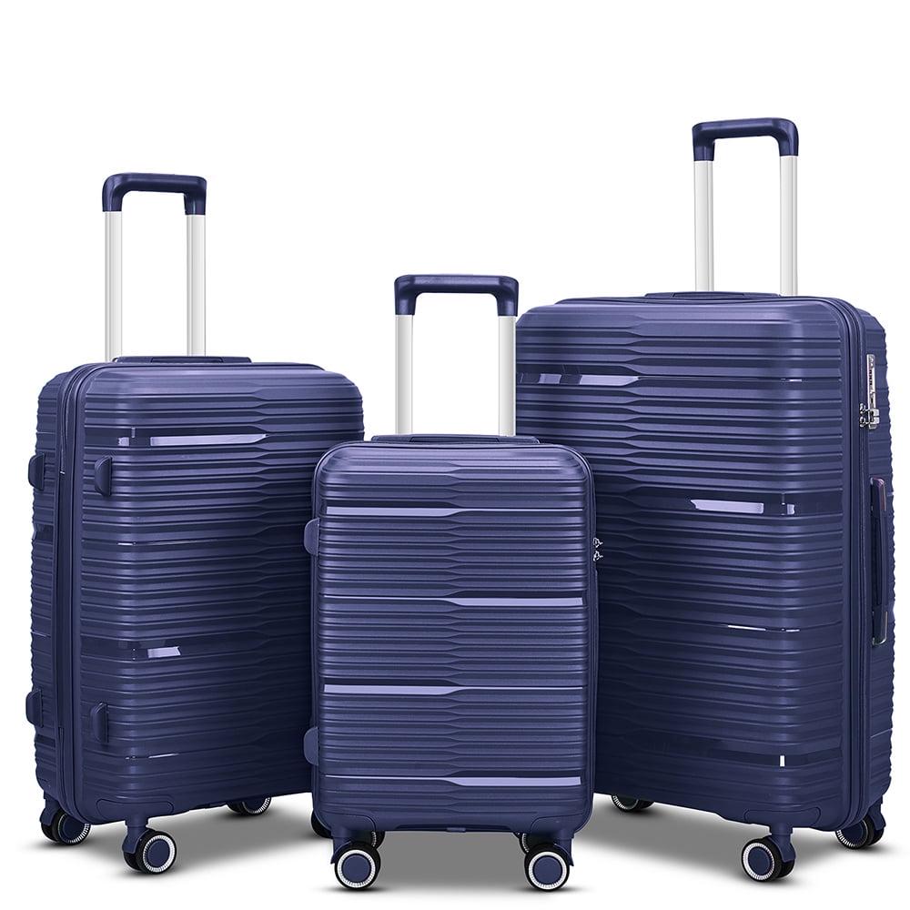 3 Piece Luggage Sets, PP Hardside Suitcase Set, TSA Lock, Blue