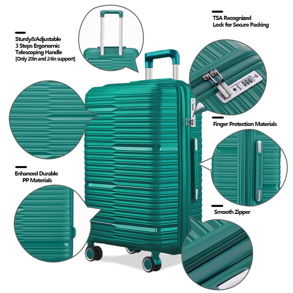 – [Top Quality Materials] : Made of brand new extra-thick PP materials for hard shell, which make the luggage more durable, lighter and impact-resistant. Features textured finish to prevent against scratches, keeping cases beautiful after a trip. 20in is best carry on luggage for airplane (not expandable), 24 inch and 28 inch luggage (maximize your packing power), Best choice for long-term travels and business trips.