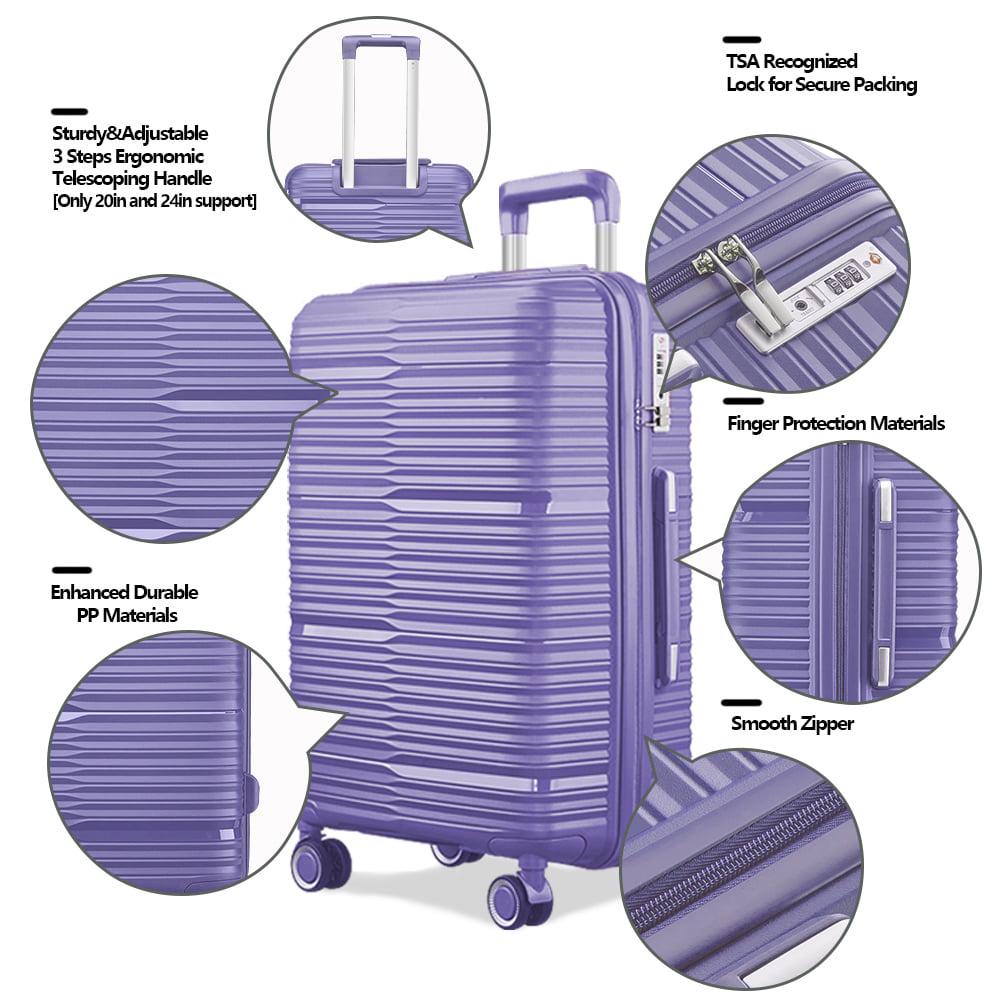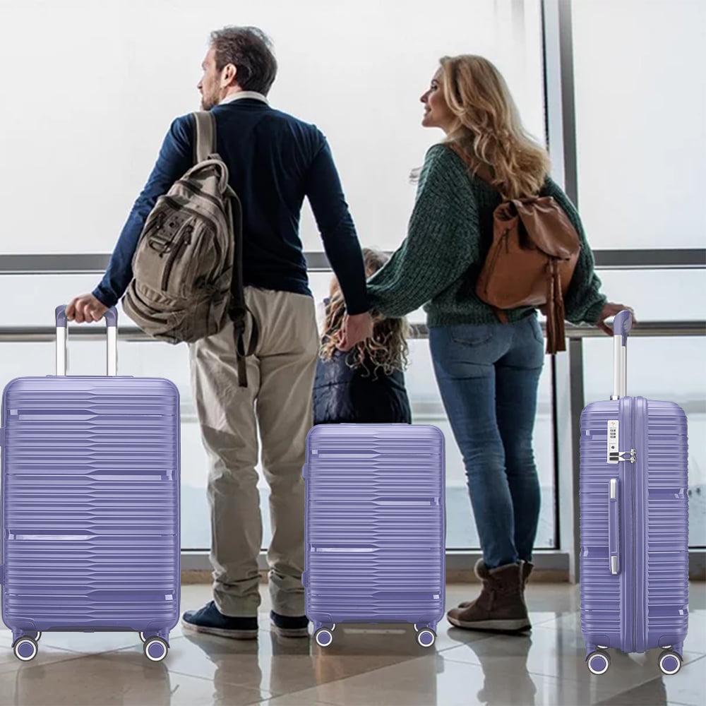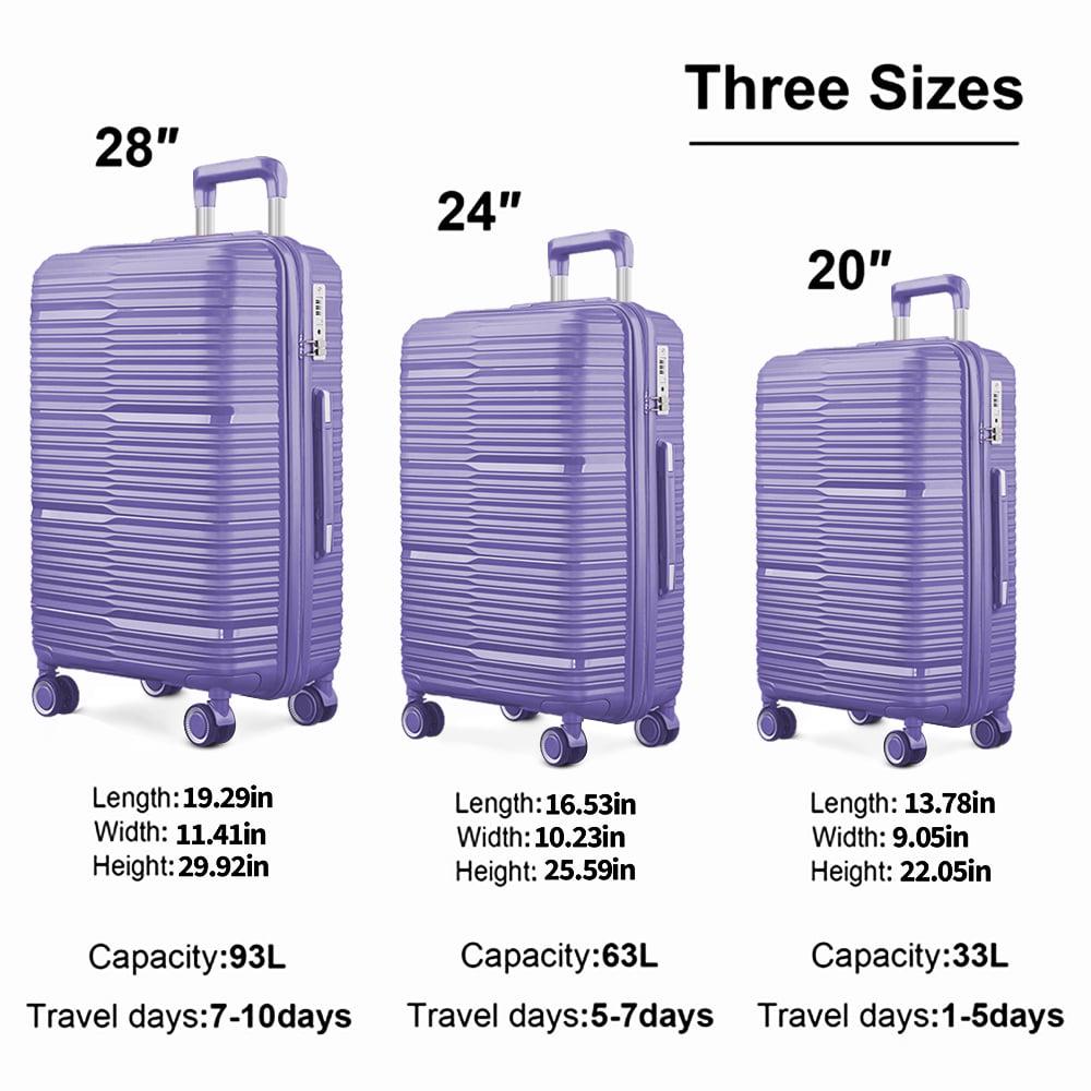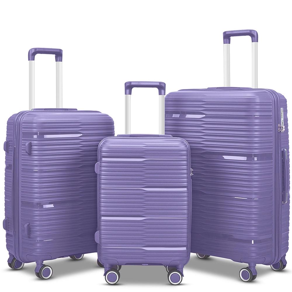 3 Piece Luggage Sets, pp Hardside Suitcase Set, TSA Lock, Purple