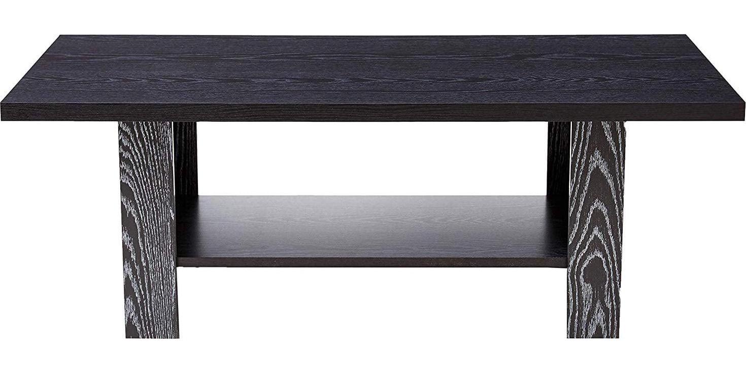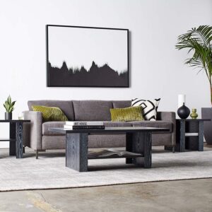 Chic, modern three piece occasional set with a cool, contemporary feel Bold, black finish adds depth to a living room Lower shelf provides ample storage space Finish: Black oak Assembly type: RTA Assembly required: Yes