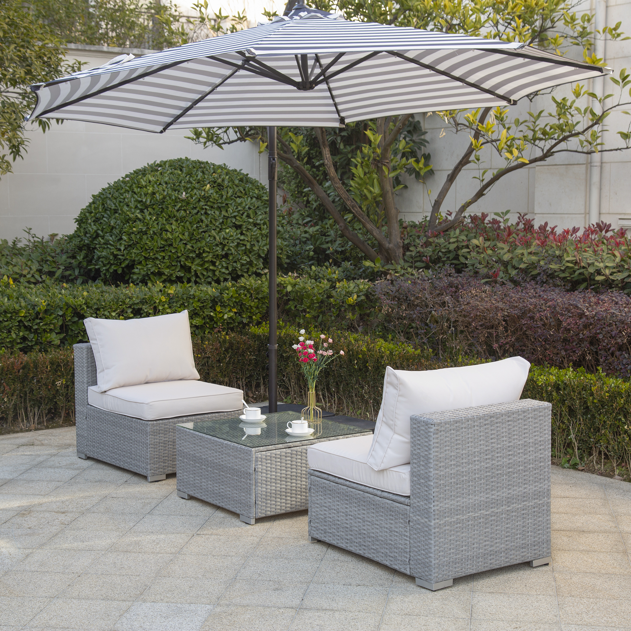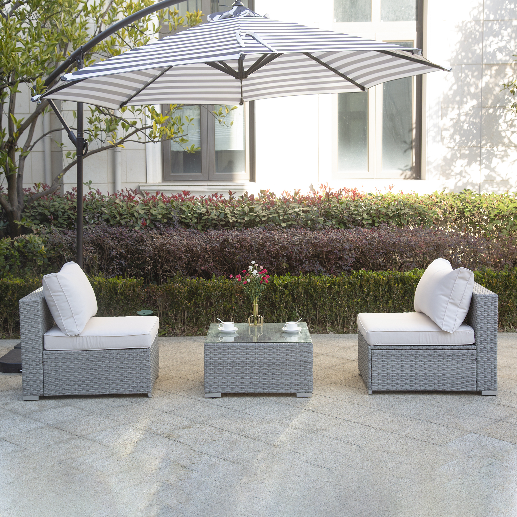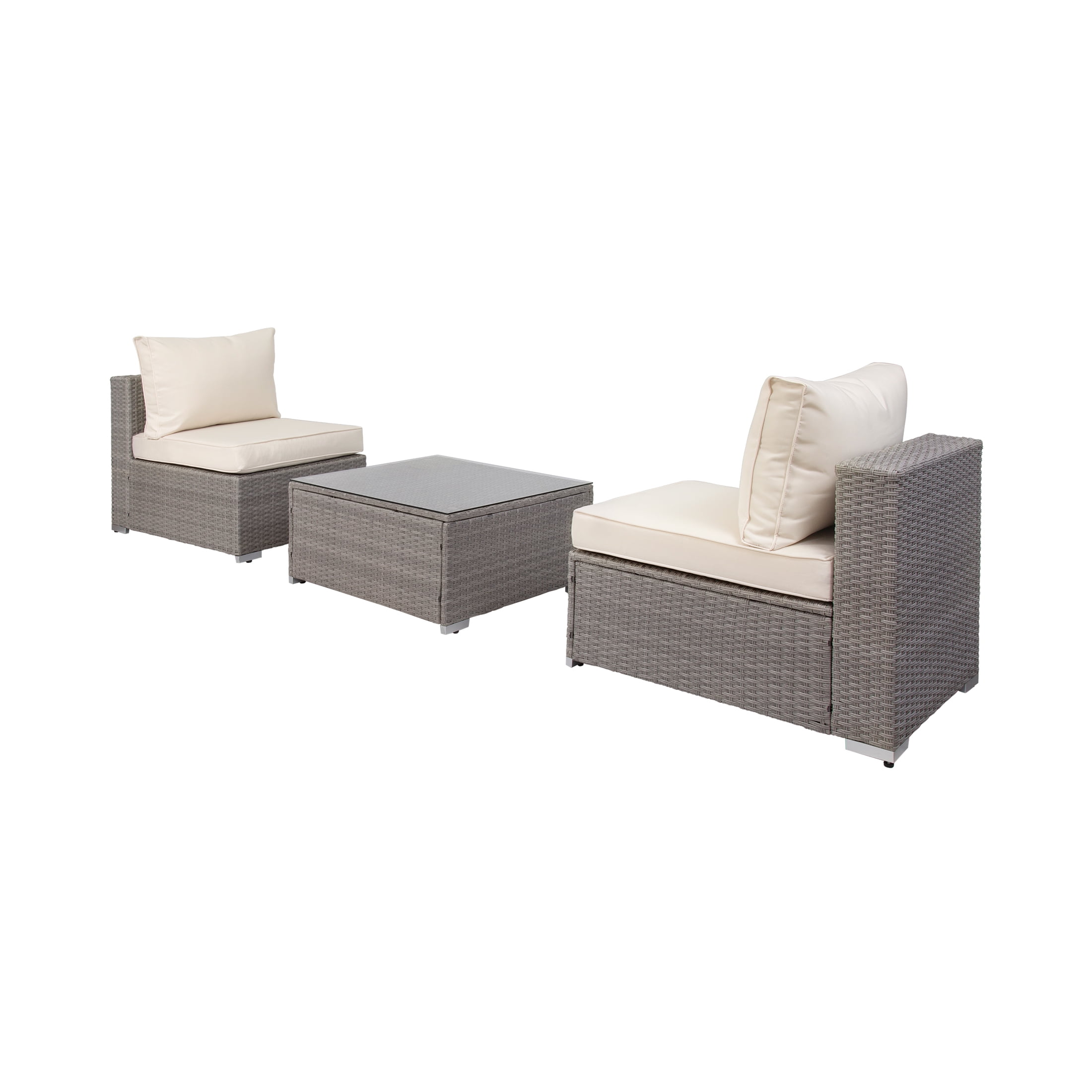 3-Piece Outdoor Patio Armless Sofa Conversation Bistro Set with Coffee Table, Gray/Ivory