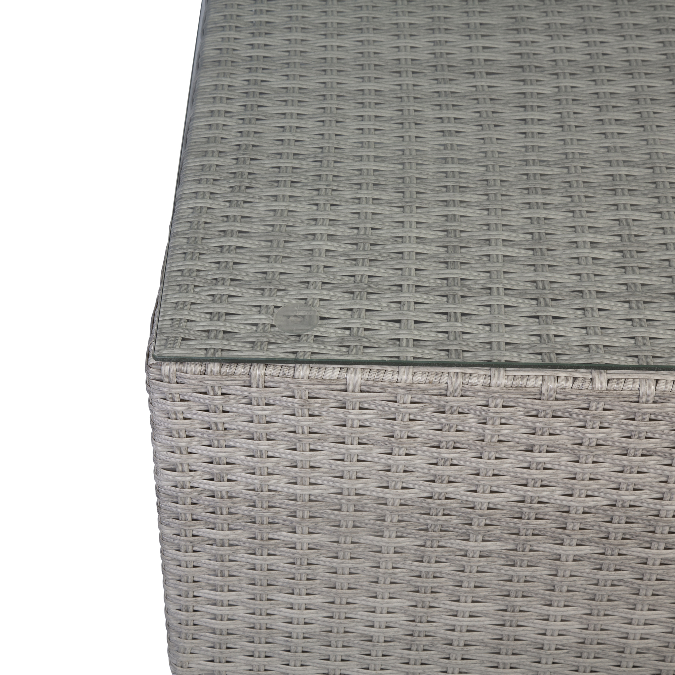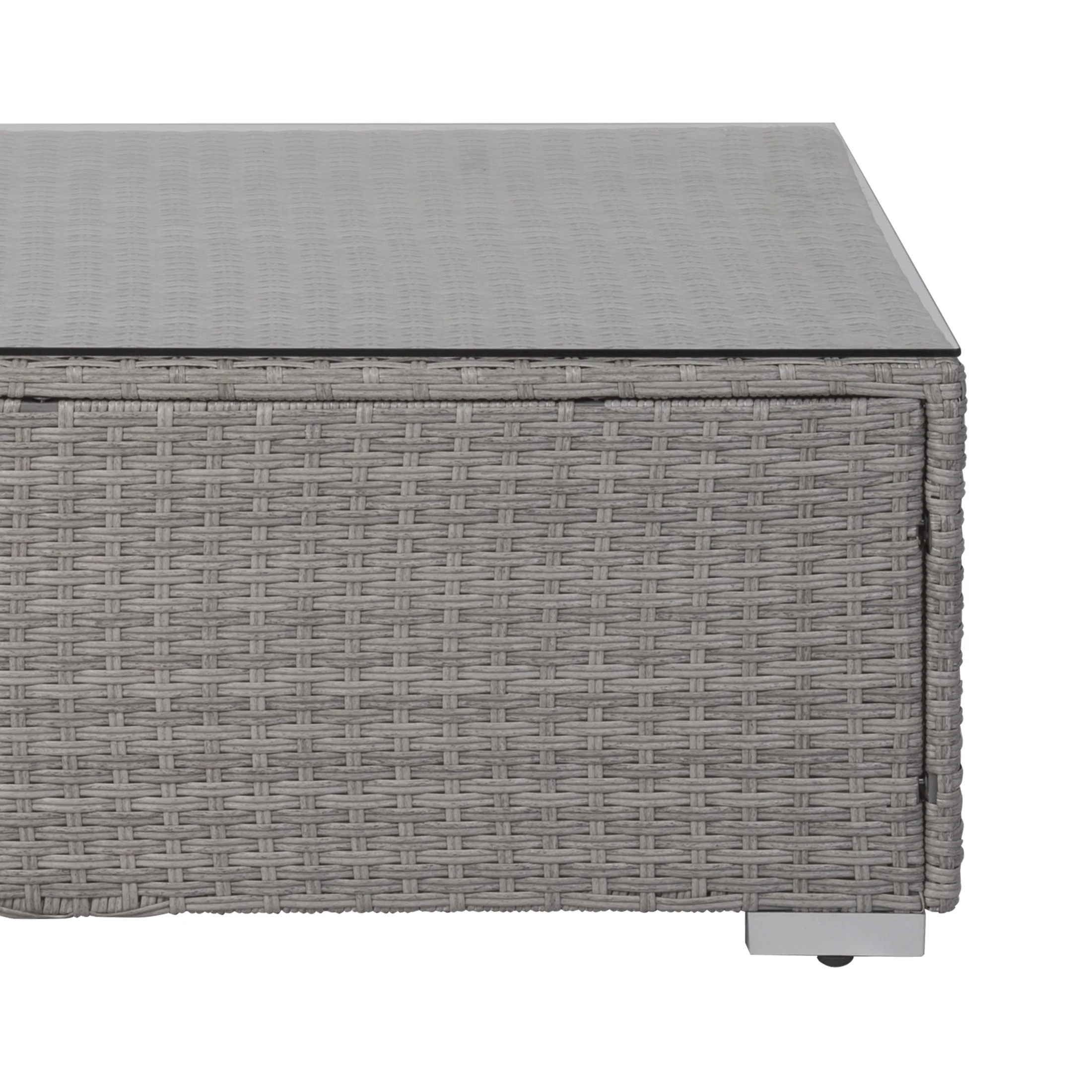 Set Includes: Two (2) Armless Sofas, One (1) Coffee Table Rattan Wicker Steel Frame Plush Seat and Back Cushion Simple Assembly Required