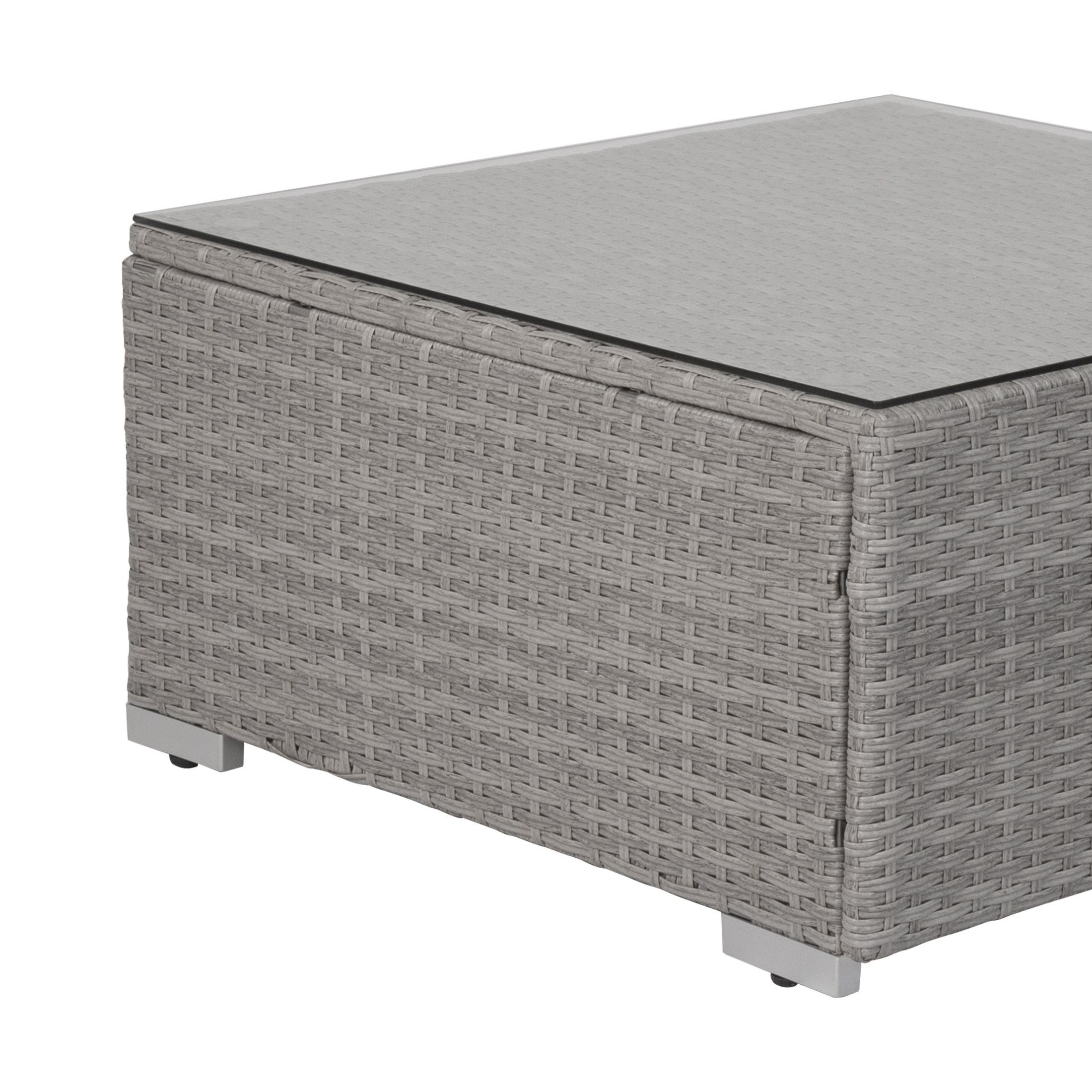 The ideal setup for any outdoor lounge area. Made with durable steel frame and all-weather and UV resistant rattan wicker. Sit in comfort in the plush seat and back cushions. Stylish and multi-function ottoman that can be used as a coffee table or extra seating. A must-have for any outdoor patio area.