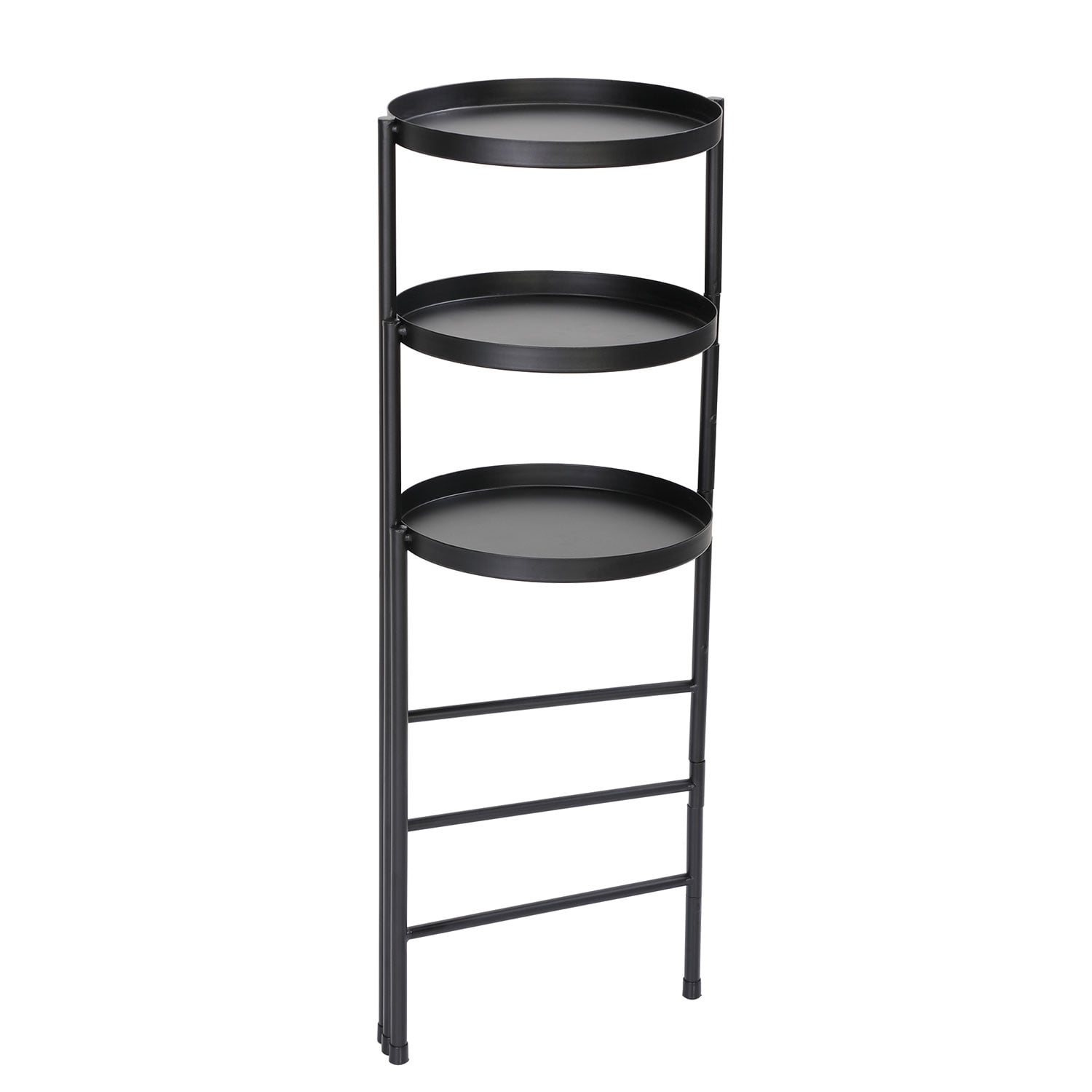 3 big plants trays, large load capacity, compact size Space-saving: folding structure, 360°hinges Multiple Decor Styling: trays with different heights Good Stability: precise welding, skid-proof foot caps