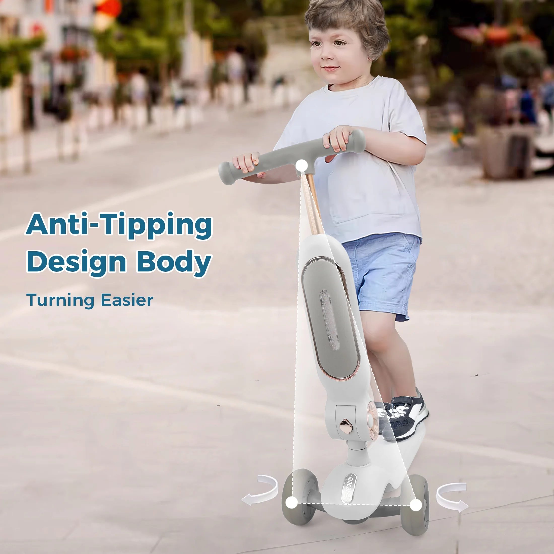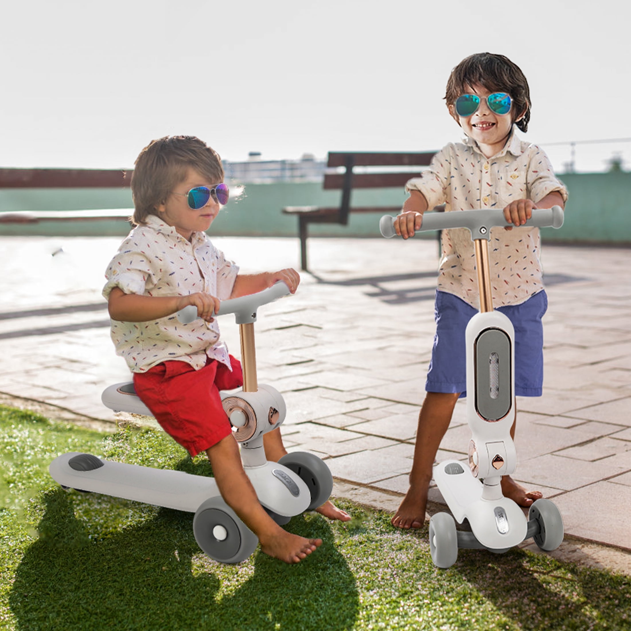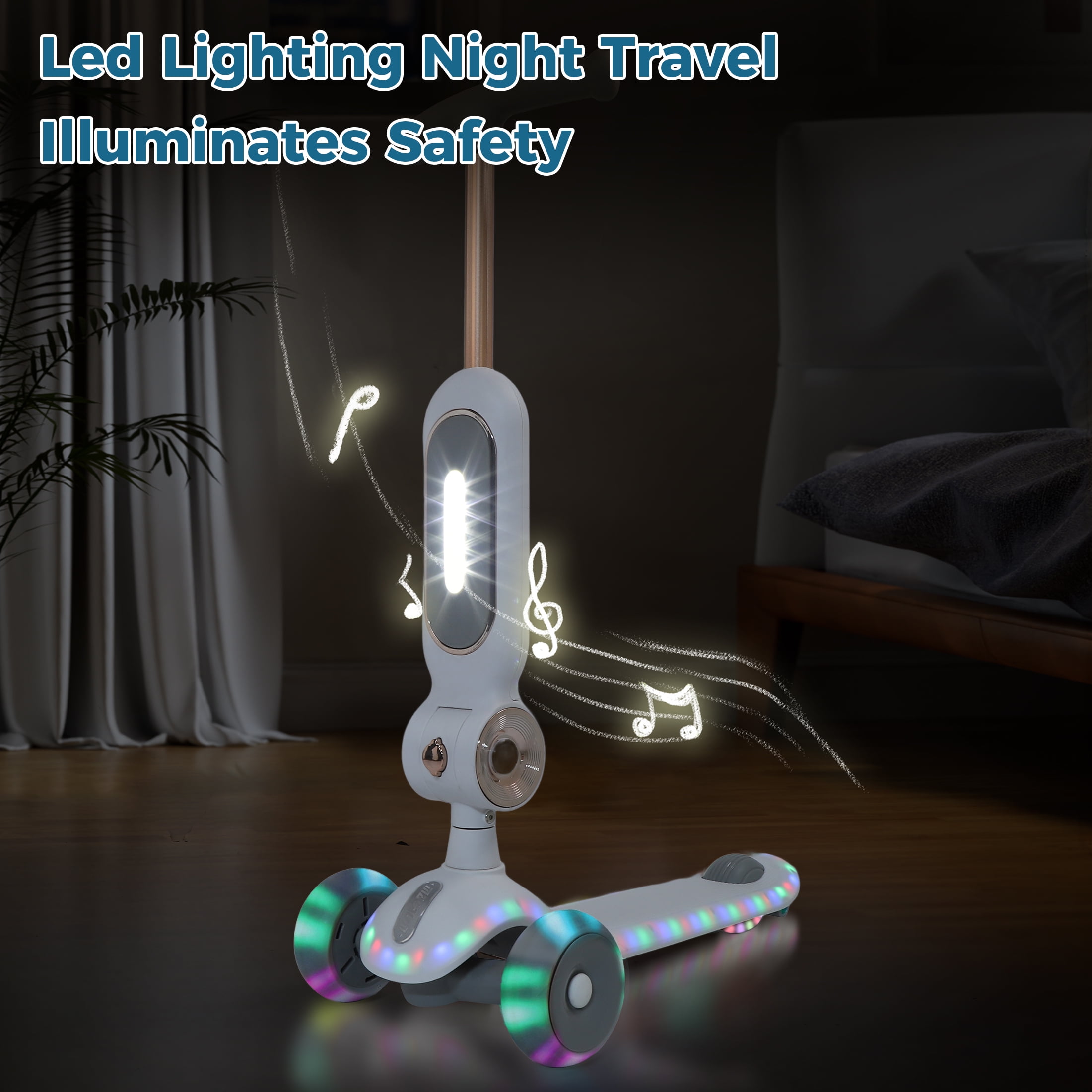 3 Wheel Scooter For Kids, 2-In-1 Folding Toddler Scooter ,Scooter With Adjustable Handlebar And Folding Seat, Ride On Toys With Music Led Lights Rear Brake For Boys Girls Ages 3-5 ,Kids Gift(White)