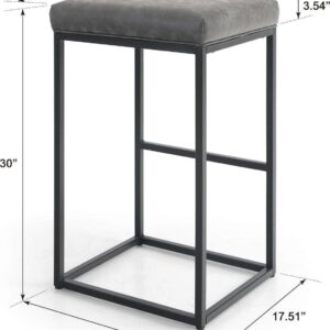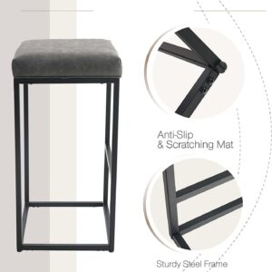 30 Counter Height Bar Stools Footrest PU Leather Set of 2 Armless Bar Stools Metal Steel Frame Base, Gray