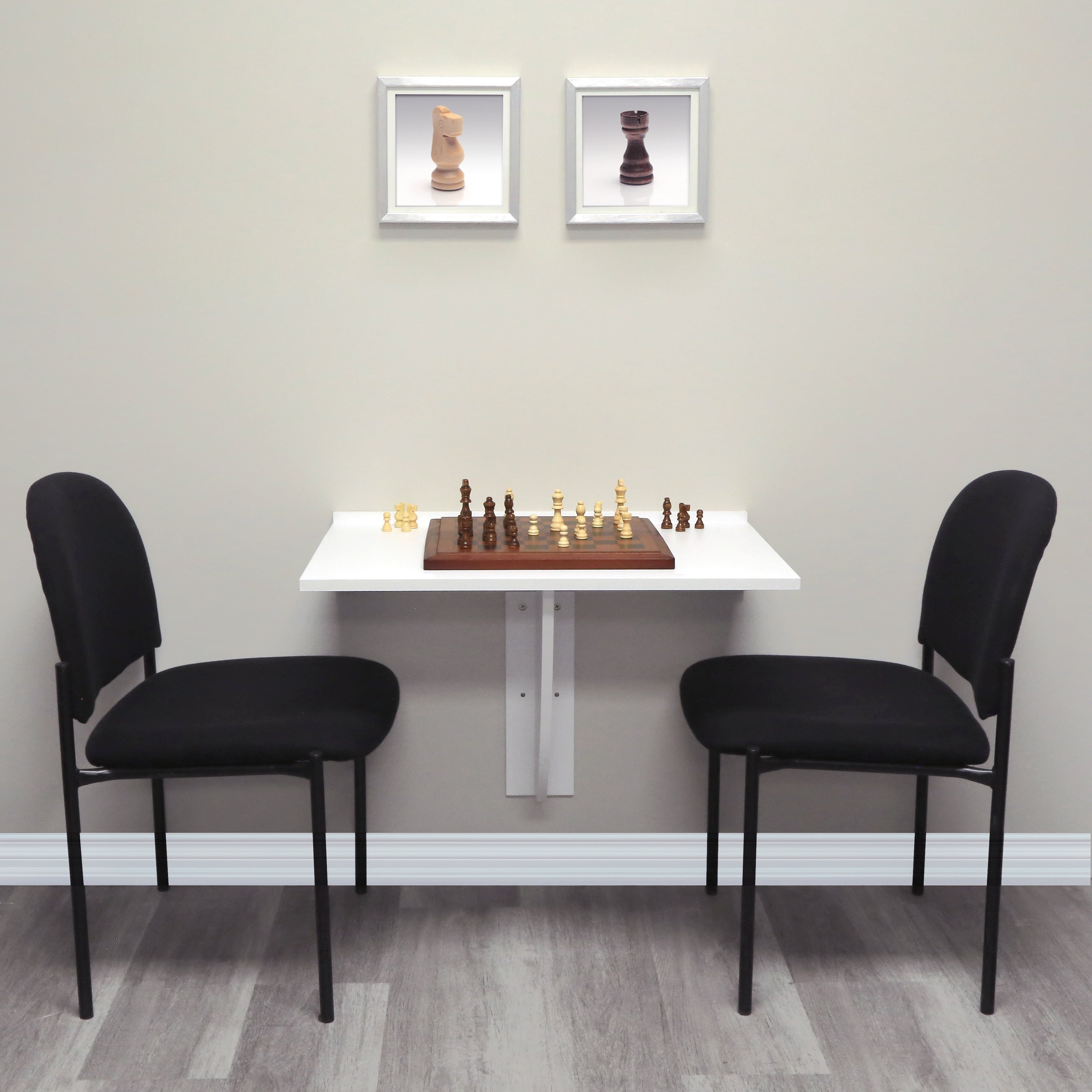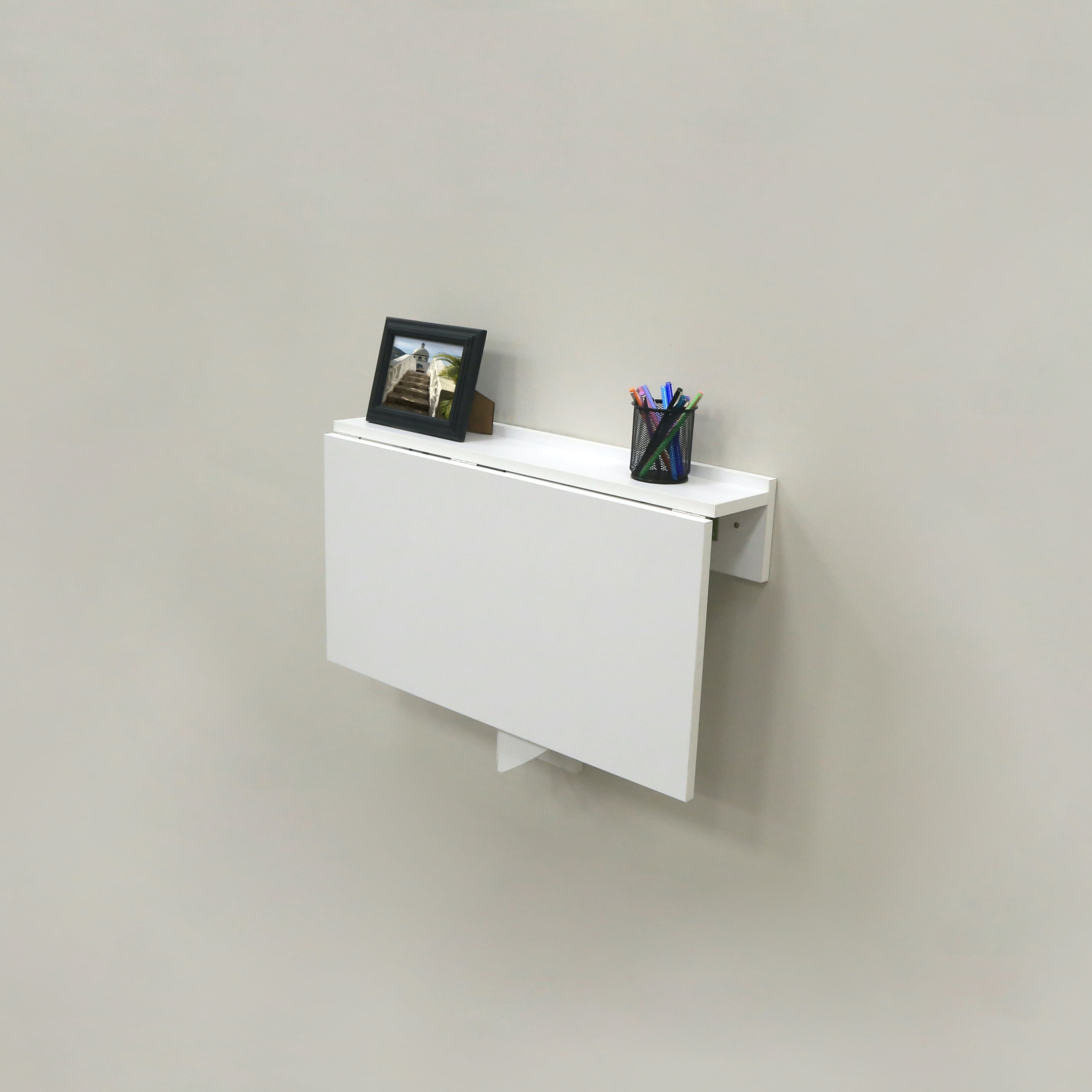 This beautiful white wall mounted small desk is ideal for small spaces and is highly functional. Use this desk as a game or small dinner table. When open, the shelf measures 30″ wide x 21.5″ deep x 21.5″ high, and has a load capacity of 30 lbs. This desks are simple to install and all mounting hardware and instructions are included. They mount on walls and fold up without legs that touch the ground. When the tabletop is folded down, a small photo ledge remains to display pictures or personal belongings. These desks will work perfectly in your home office, kitchen, living room, or anywhere else you would like to save some space. This folding desk design can be used as laptop table, vanity desk, fold-able table, standing desk, writing desk, and more! Holds up to 30 lbs, evenly distributed. FEATURES: This white desk features a permanent thin display shelf and a foldable tabletop design. HOME OFFICE DESK: Easy to install and upgrade your home office with this multifunctional small desk. DESIGN: This folding desk is designed to be folded down and kept out of they way until its next use. COMPACT – Use this desk as a game or small dinner table and holds up to 30 lbs, evenly distributed. DESK DIMENSIONS: When open, this wall mounted folding desk is 30 in W x 21.5 in D x 21.5 H.