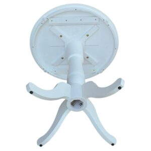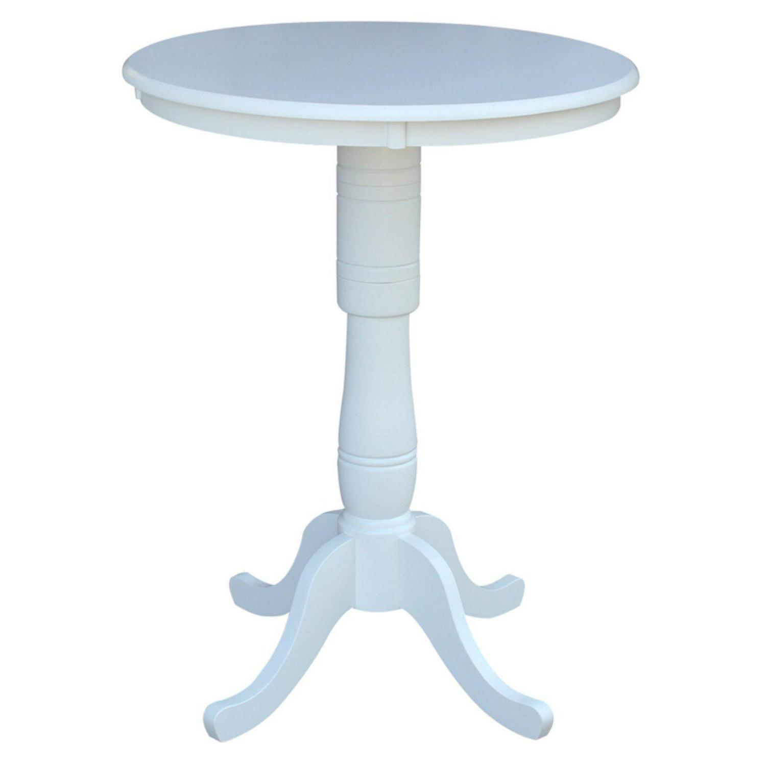 From breakfast nook to den, the International Concepts 30 in. Round Top Pedestal Table creates classic, space-efficient dining possibilities. The crisp white finish complements a range of styles. Height options are offered, subject to availability. The 36H inch option comes with one extension for the pedestal base, allowing you to use your table at a standard 30 inch height or counter height at 36 inches. The 42H inch option includes two pedestal extensions (each measuring 6 inches) The 42 inch height is ideal for use with standard bar height chairs and stools.