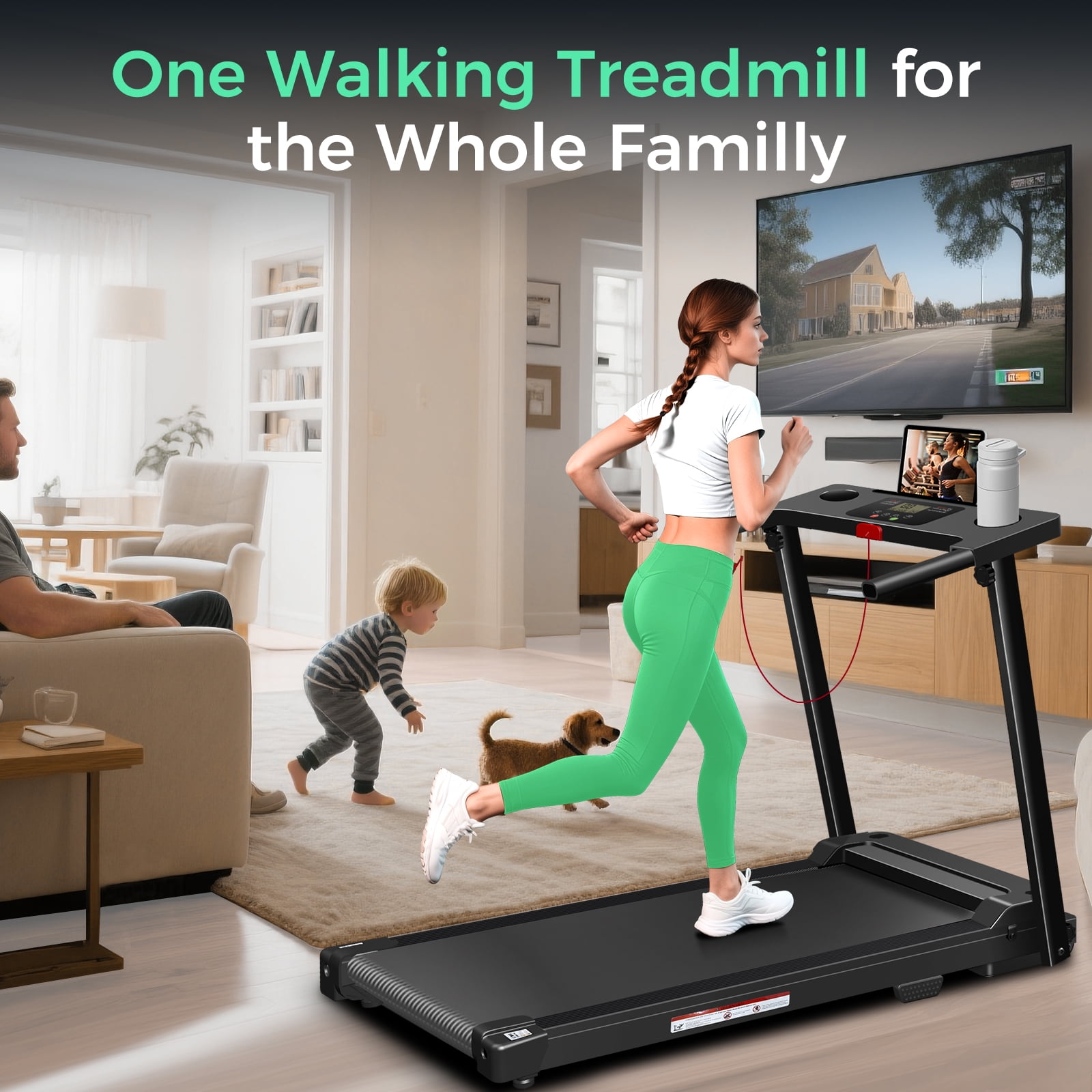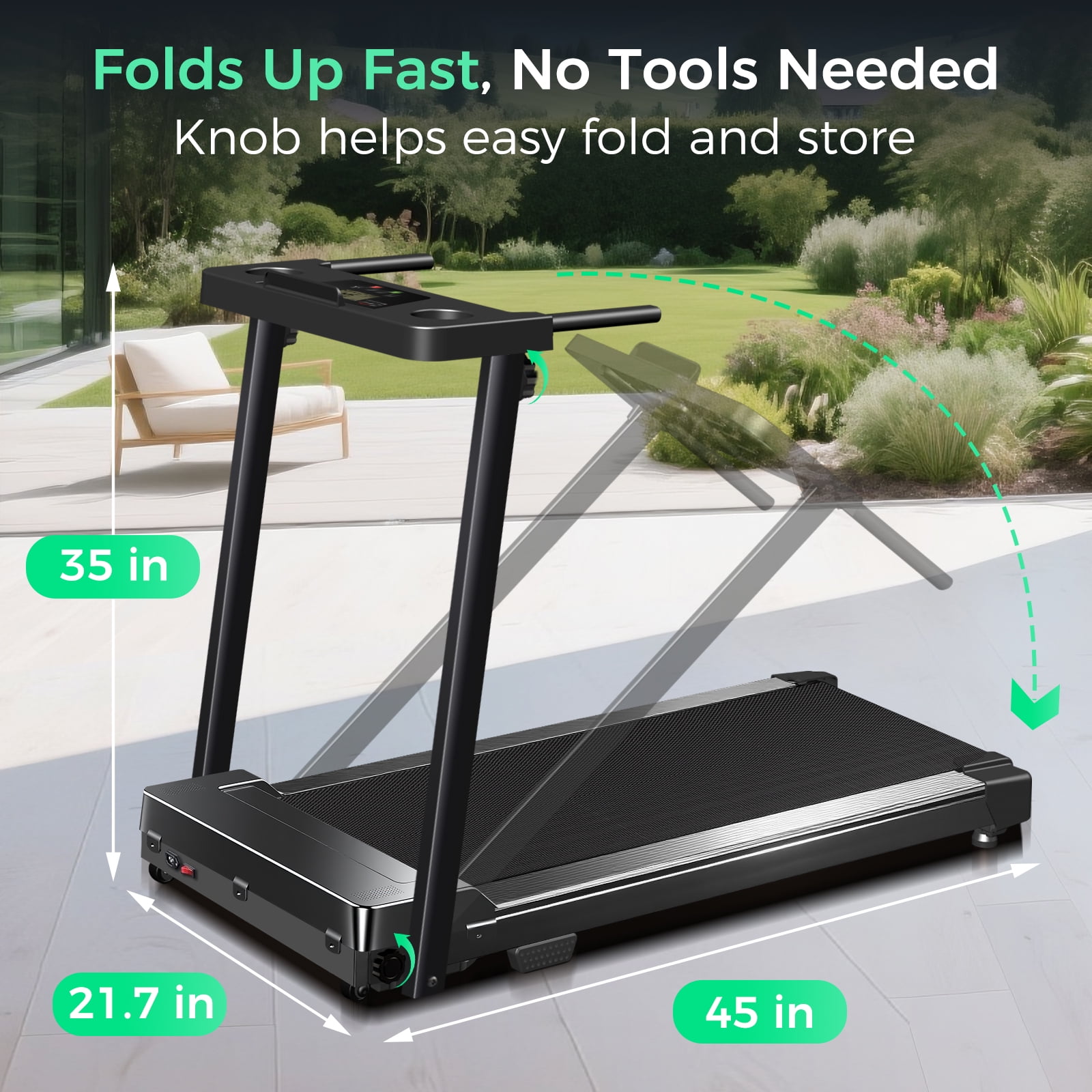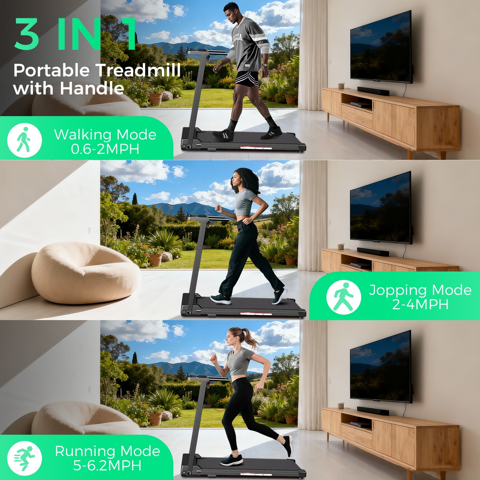 COMFORT QUALITY: Portable Folding Treadmill with featuring 3.0 HP quiet motor while providing speeds of 0~6.2 MPH, below 55 db, supports up to 300 lbs capacity. Also, flodable treadmills with 12 preset programs, 3 countdown modes, 3.6 in multi-function LED display easy to track time, speed, distance and calories, which will make exercise clear for reaching different training goals, besides, has cup holder, tablet/phone holder, and emergency stop, providing convenience for your running exercise. COMPACT & SAFETY: This compact treadmill with knob and moving wheels for easy fold, move and store. When folded, it has a total dimension of just 48 L x 22 W x 5.5 H inches. The running belt of the portable treadmills for home is made of non-slip textured material, while protecting the knees, joints, muscle, lower back, hips, and ankles because of the anti-slip belt shock absorption features. COMFORT EVEN: This walking treadmills for home made of the 15 x 41” running belt provides plenty of space for exercise more comfortable experience for your run. Rated Voltage: 120V/60HZ. 3.0 HP quiet motor with featuring smooth operation performance, delivering a more comfortable workout experience for you, your family members, and even your pets. provides a quiet movement environment. EASY ASSEMBLY: Only takes 10 minutes to assemble this walking pad treadmill! All tools, parts and instructions are well packed into one box. Also include lubricating oil. This treadmill has mostly of it’s assembled, you can start to run with music or watch videos for enjoyable home or office workouts. EXCELLENT QUALITY & ASSURANCE: We Tomile provides an awesome service. Please feel free to contact us, and we will give you a satisfactory solution within 24 hours until the problem is solved.