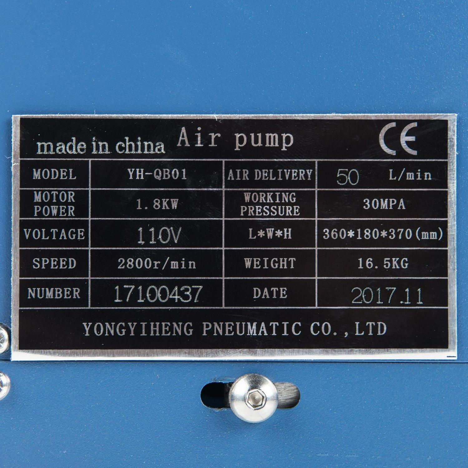– FAST FILLING: It takes only 38 minutes to fill full 6.8L tank to 300BAR, perfect for air impermeability test, pressure proof test, etc.