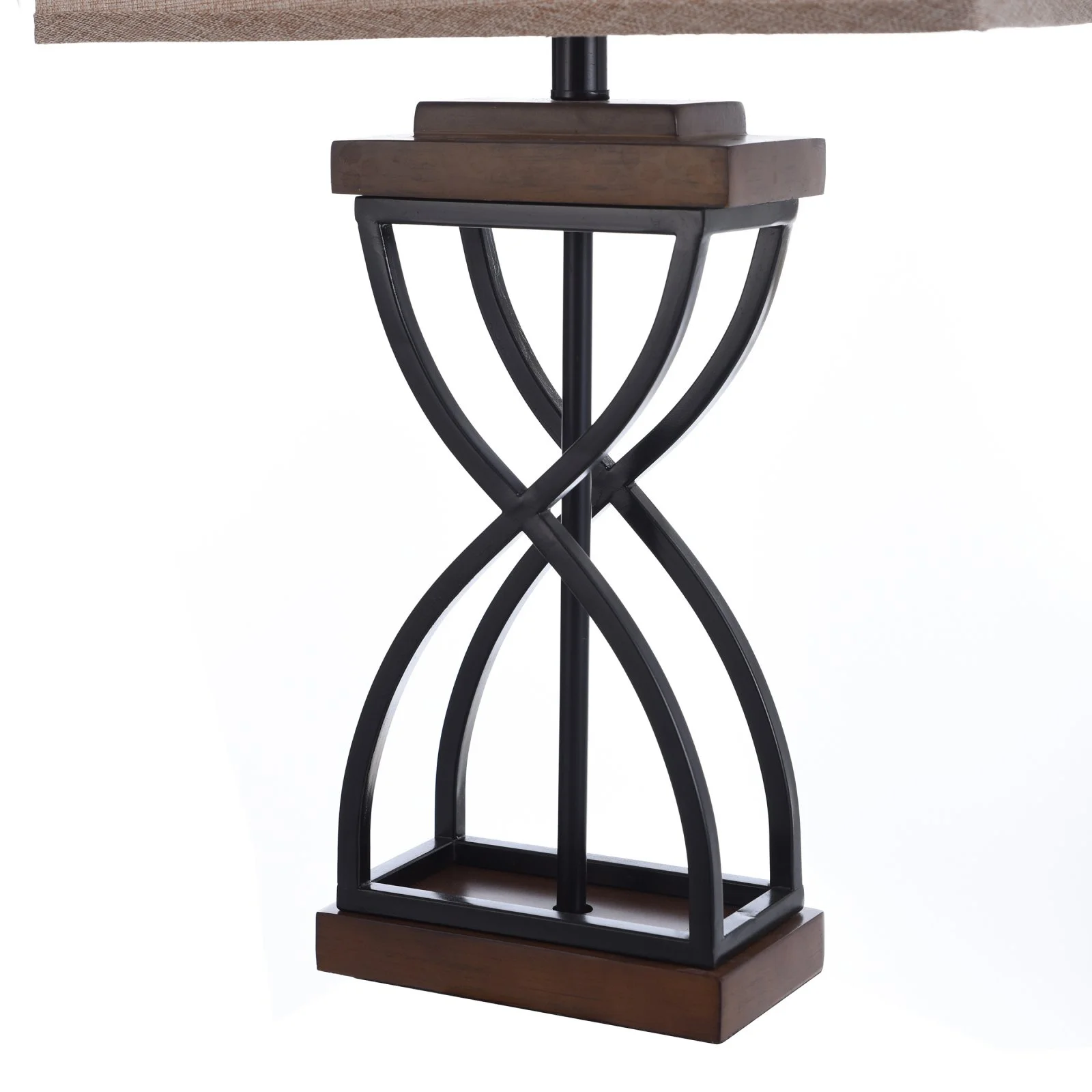 A subtle take on industrial-inspired décor, this table lamp features a black wood finish with brown accents. The rectangular hardback shade is made of beige fabric. The hourglass shape of the base ensures this black and brown lamp will enhance the look of a bedroom, living room, hallway, dining room, or office.
