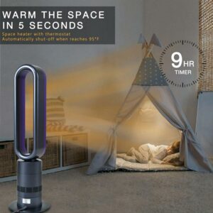 32 inch Bladeless Tower Fan have 3-speed warm wind modes and a 10-speed natural wind mode that is great for all-season indoor home use. Product features fast and efficient cooling, timer function, quiet operation and wide oscillating range. Wide Cooling Range Featuring a 32-in. tall and widespread oscillation, this feature help offer an even and wide cooling area and efficiently delivers a stream of cool to every corner it blows.