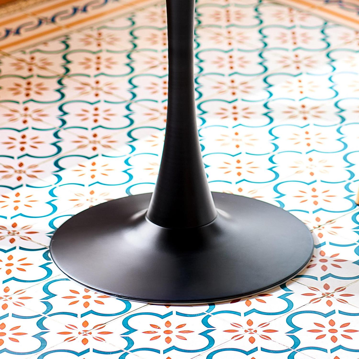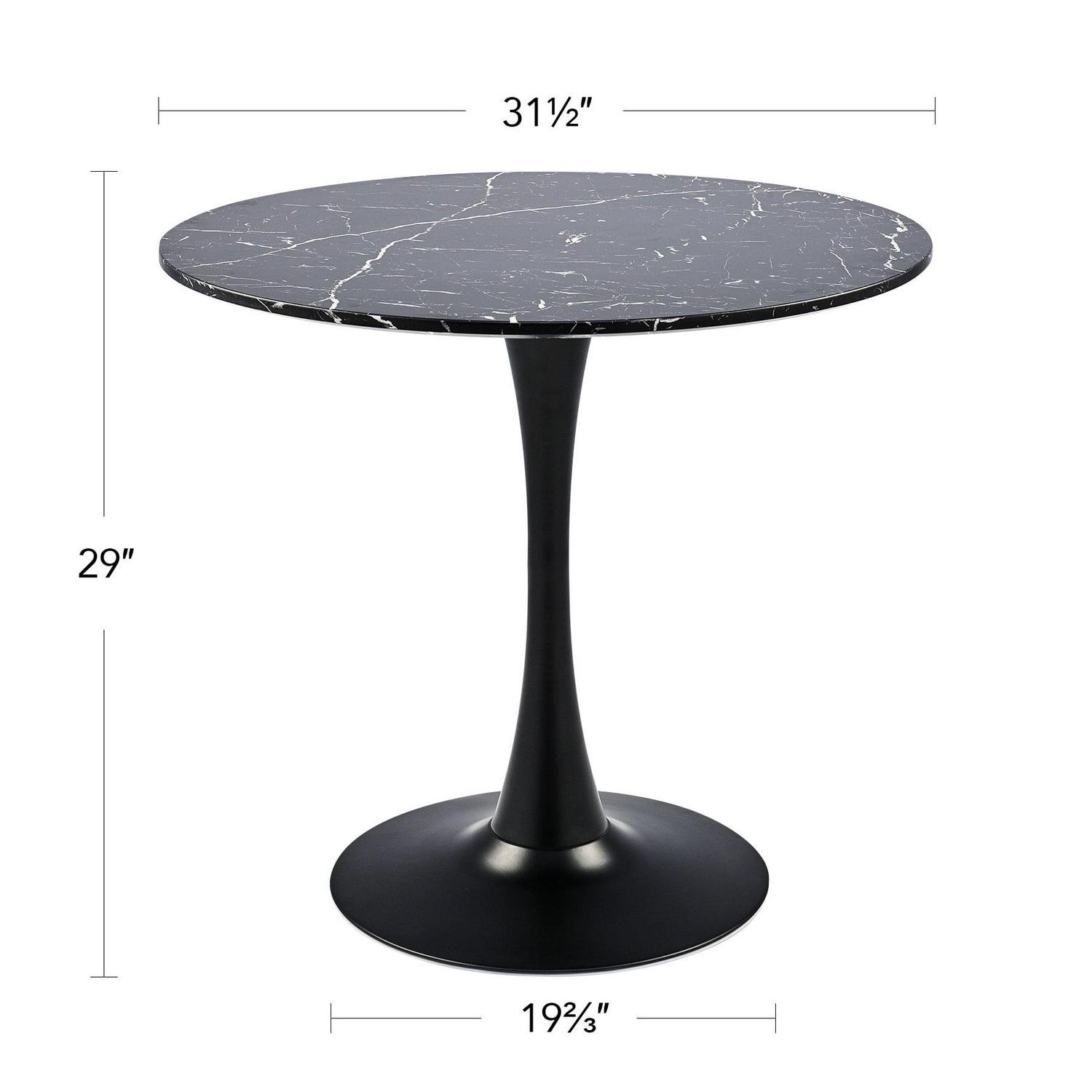 32 Inch Round Kitchen and Dining Room Table w Marble Desktop Tulip Pedestal, Black