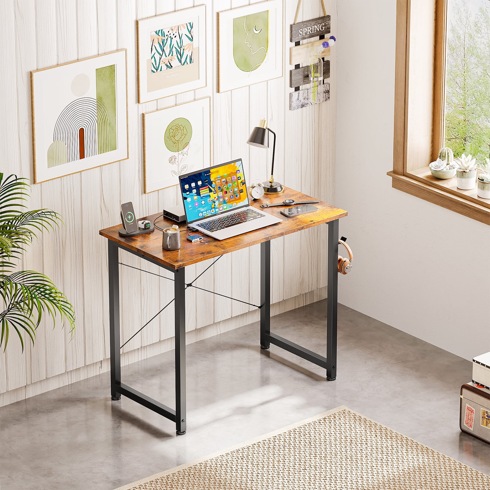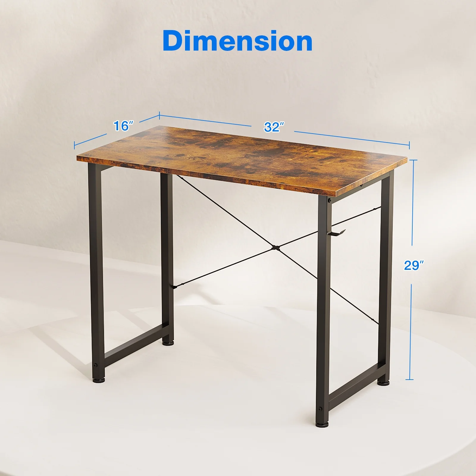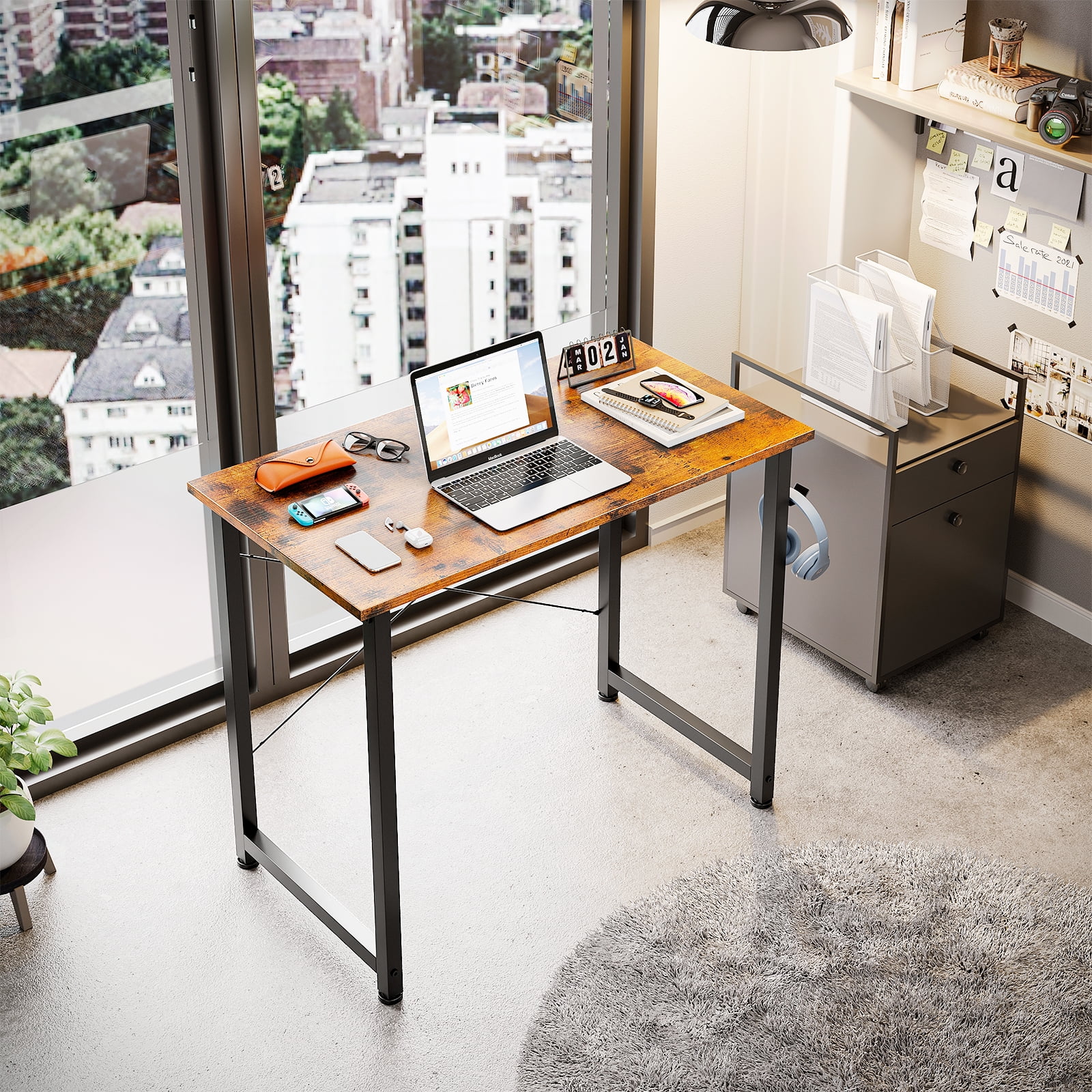 This small 31-inch computer desk/writing desk fits the small corner of the room perfectly and offers plenty of legroom for rest and storage. You’ll be surprised by the sufficient working room the small desk provides. Thick metal frames made of heavy-duty powder-coated steel improve stability and safety in use. The extremely easy-to-clean desktop is waterproof and scratch-resistant. Legs of high thickness are strong enough to support heavy-duty parcels. All tools are prepared in the package, so just follow the clear instruction to assemble the desk effortlessly within 30 mins! Melamine veneer tabletop is waterproof, heat-resistant, and dust-free so you just need a damp cloth to keep the table clean. Product Information: Size: 31″ (L) x 20″ (W) x 29″ (H) Color: Vintage Shape: Rectangular Style: Modern Top Material Type: Engineered Wood, Metal