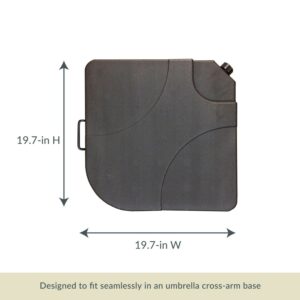 Securely anchor your outdoor shade with the Island Umbrella Four 35-lb Resin Cross-Arm Umbrella Base Weights. These square-shaped, black base weights are durably crafted from weather-resistant polyethylene and lend sleek, rugged support to your cross-arm umbrella. Each weight holds up to 35 lbs. when filled with water or sand, so they can securely positioning your umbrella in place. They are easy to carry and put into place with the built-in, retractable handles.