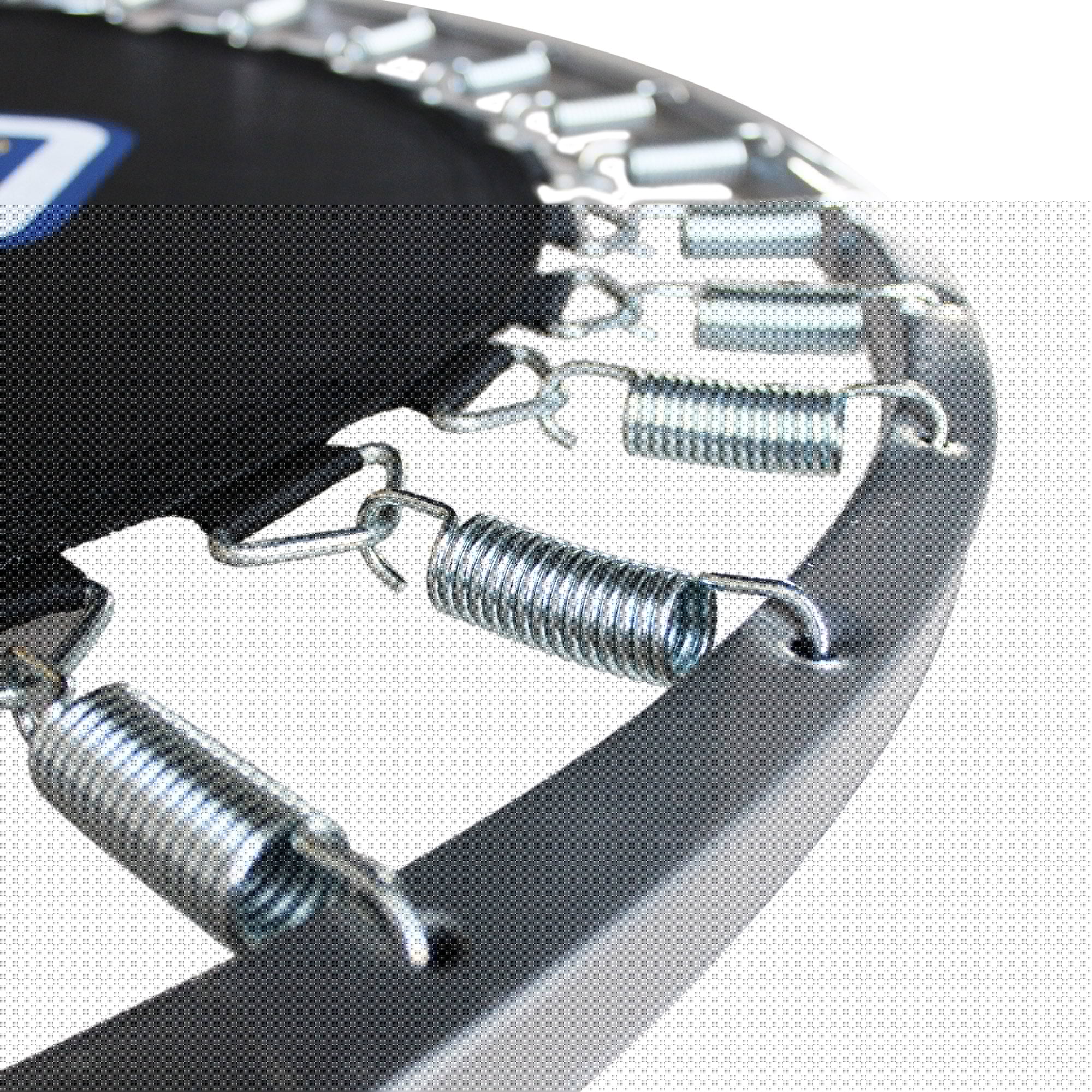 – Uses steel springs instead of elastic bands to provide a smooth bounce.