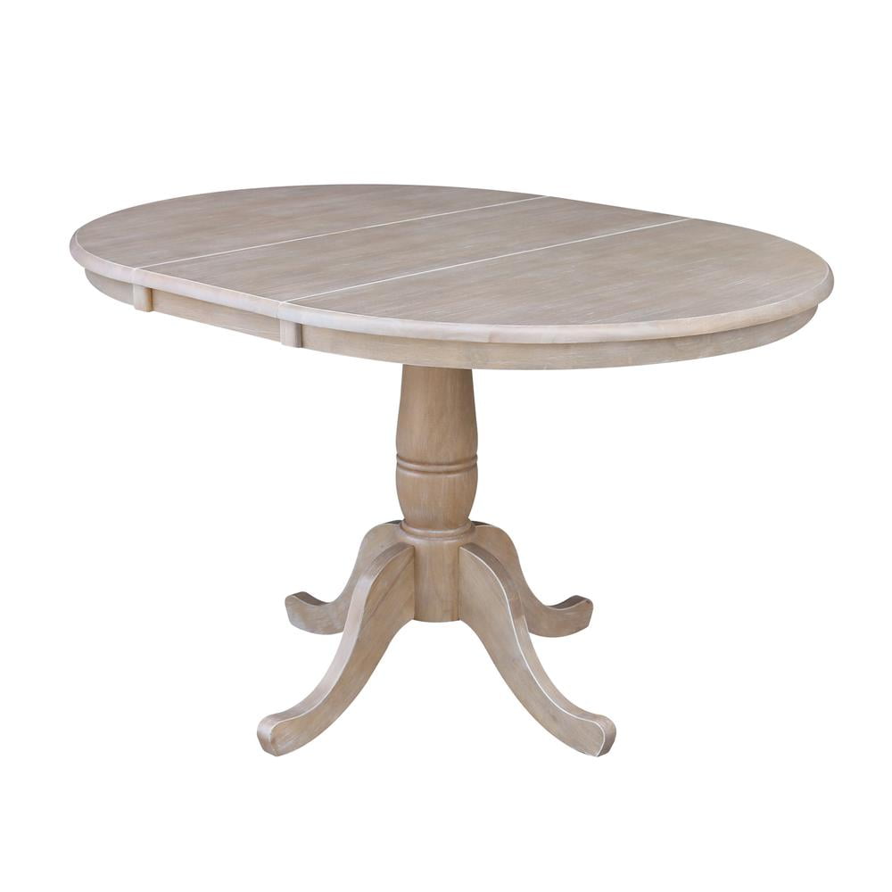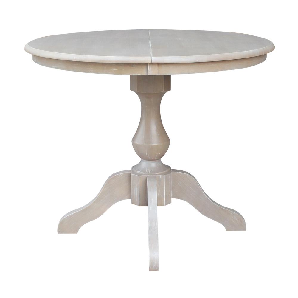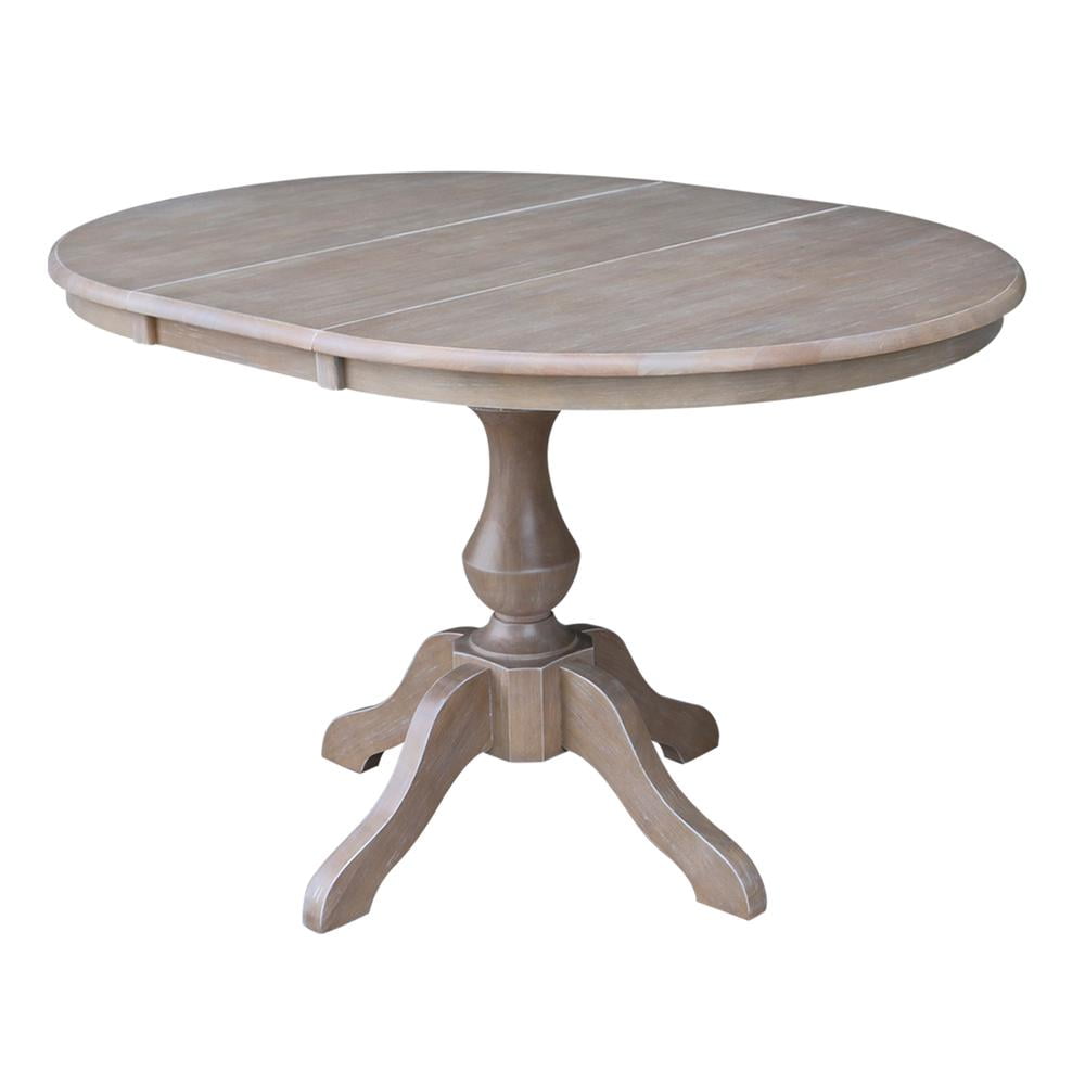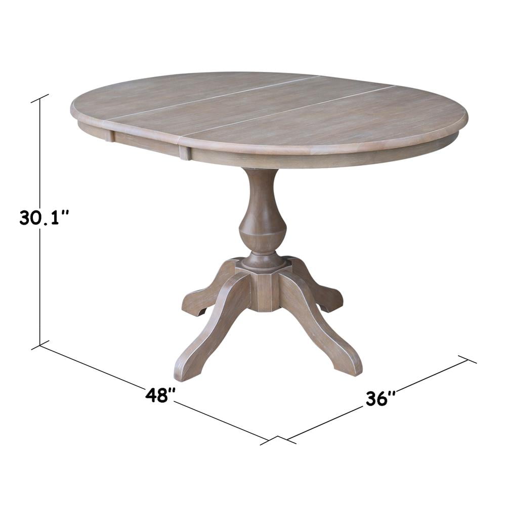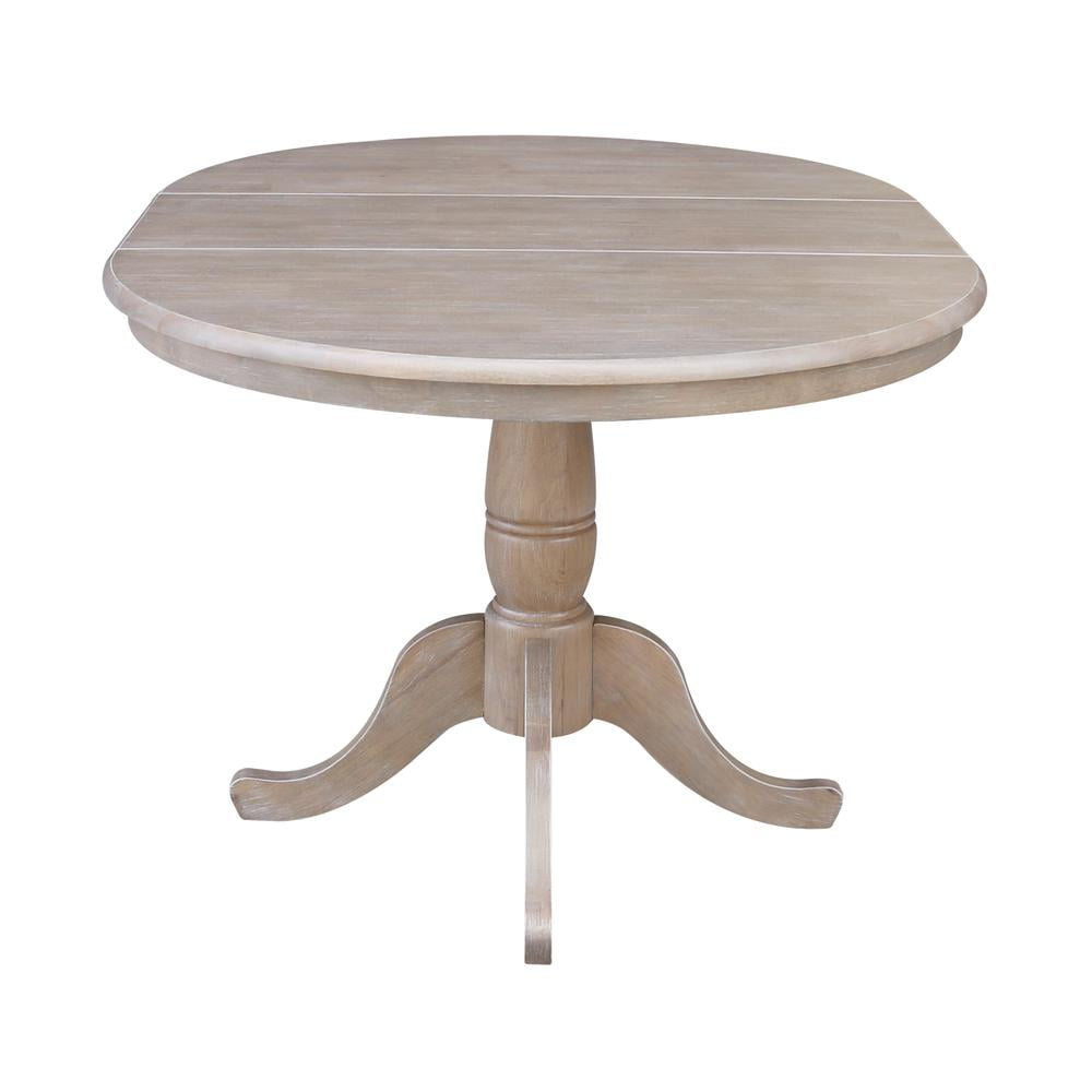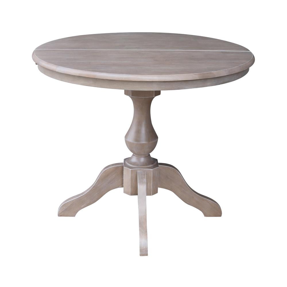 36″ Round Top Dining Table with 12″ Leaf, Washed Gray Taupe