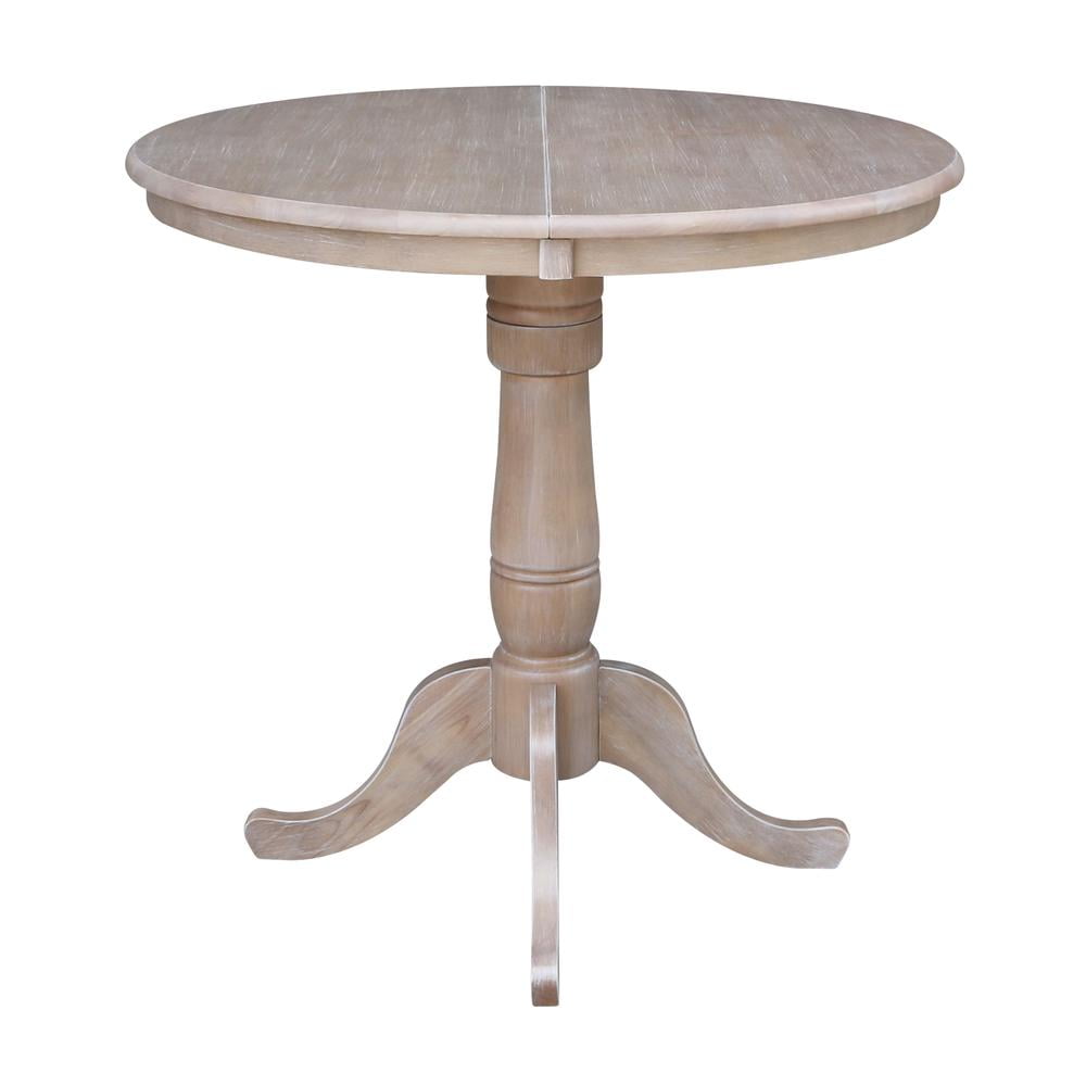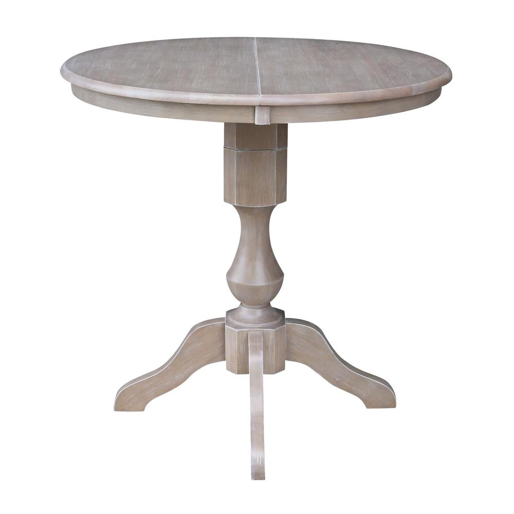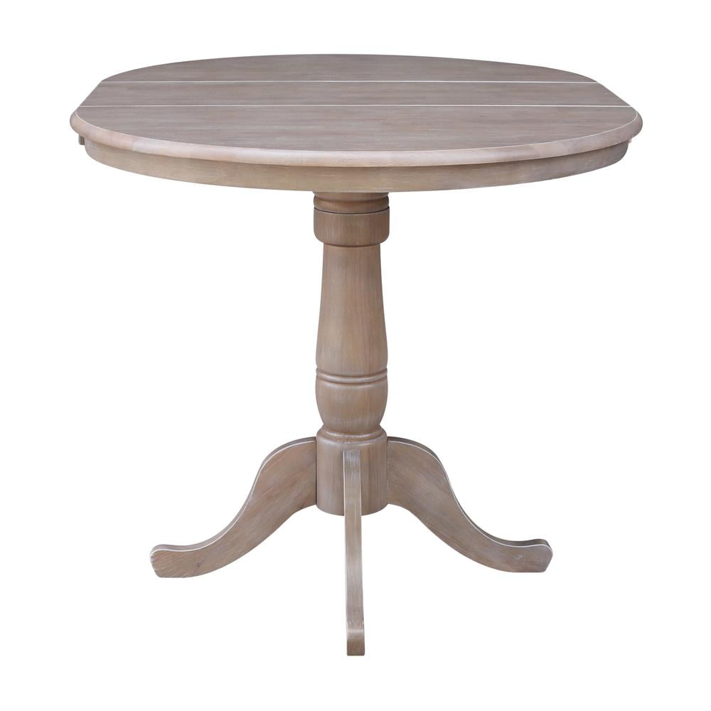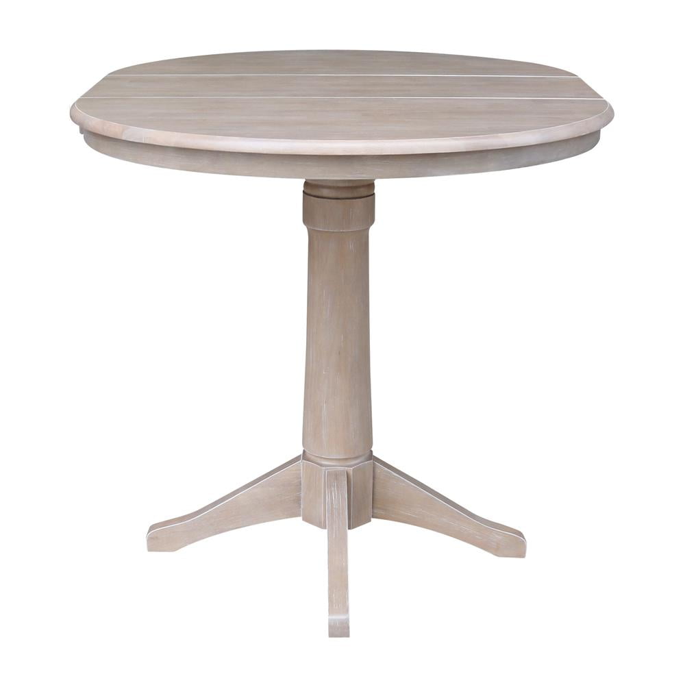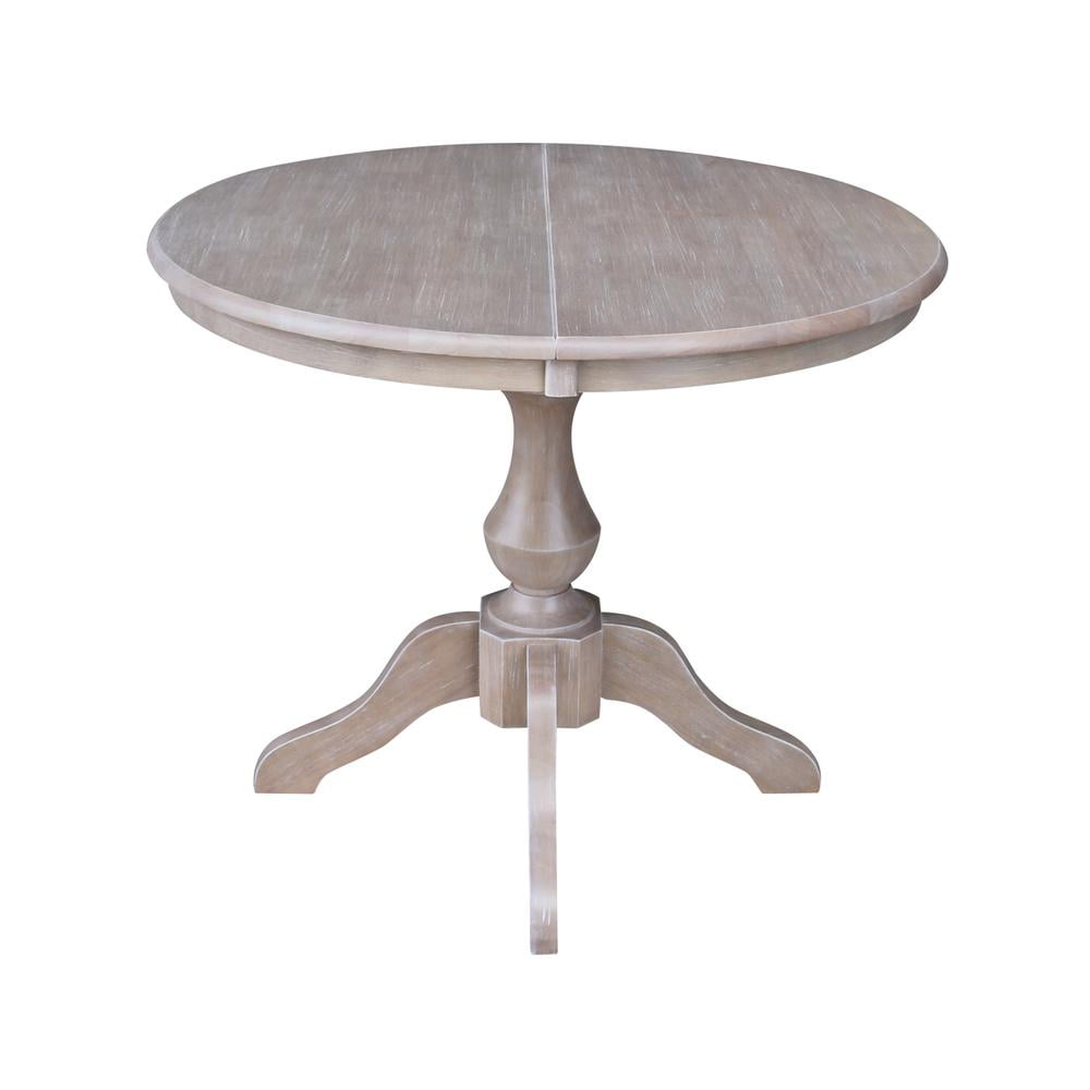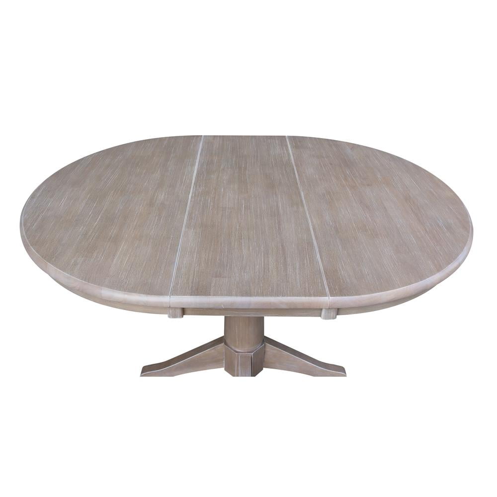 36″ Round Top Dining Table with 12″ Leaf, Washed Gray Taupe