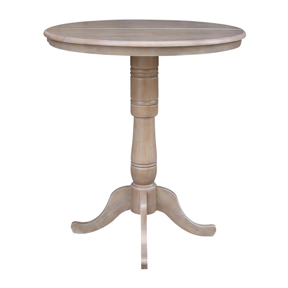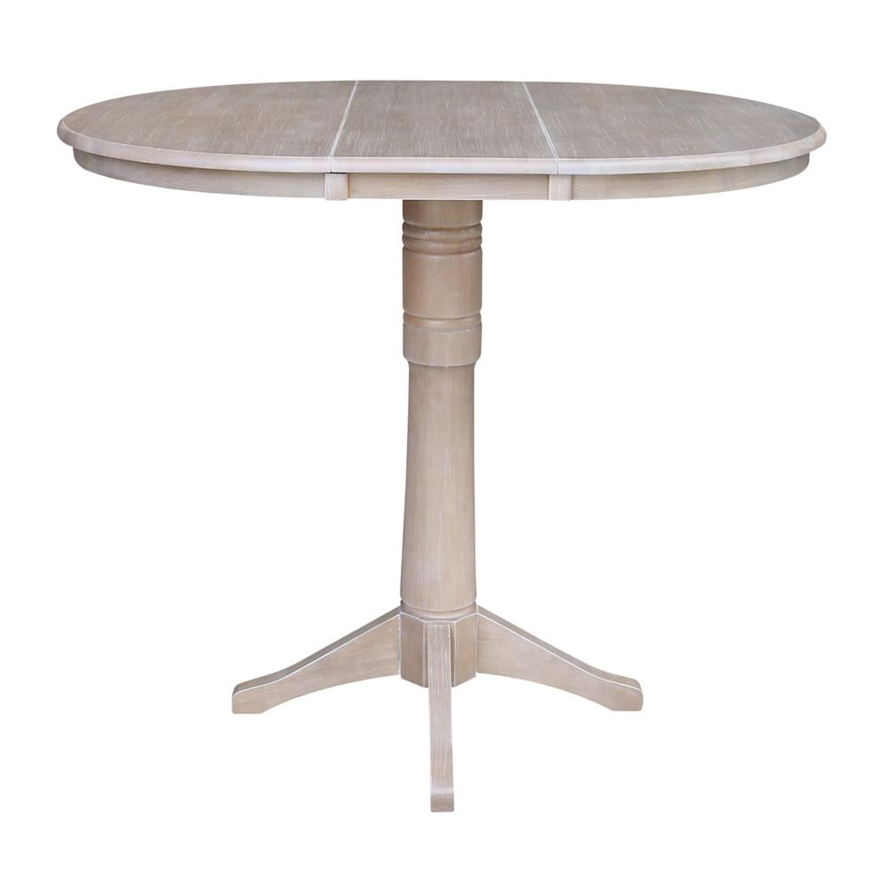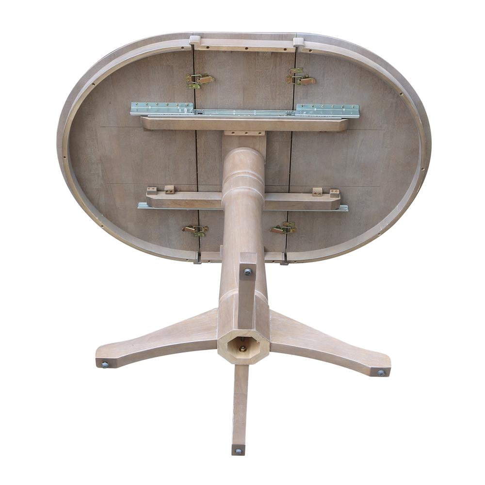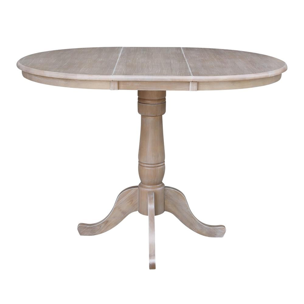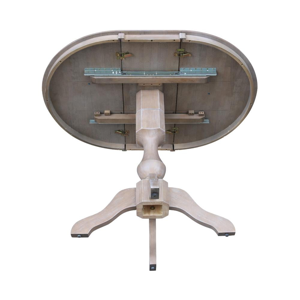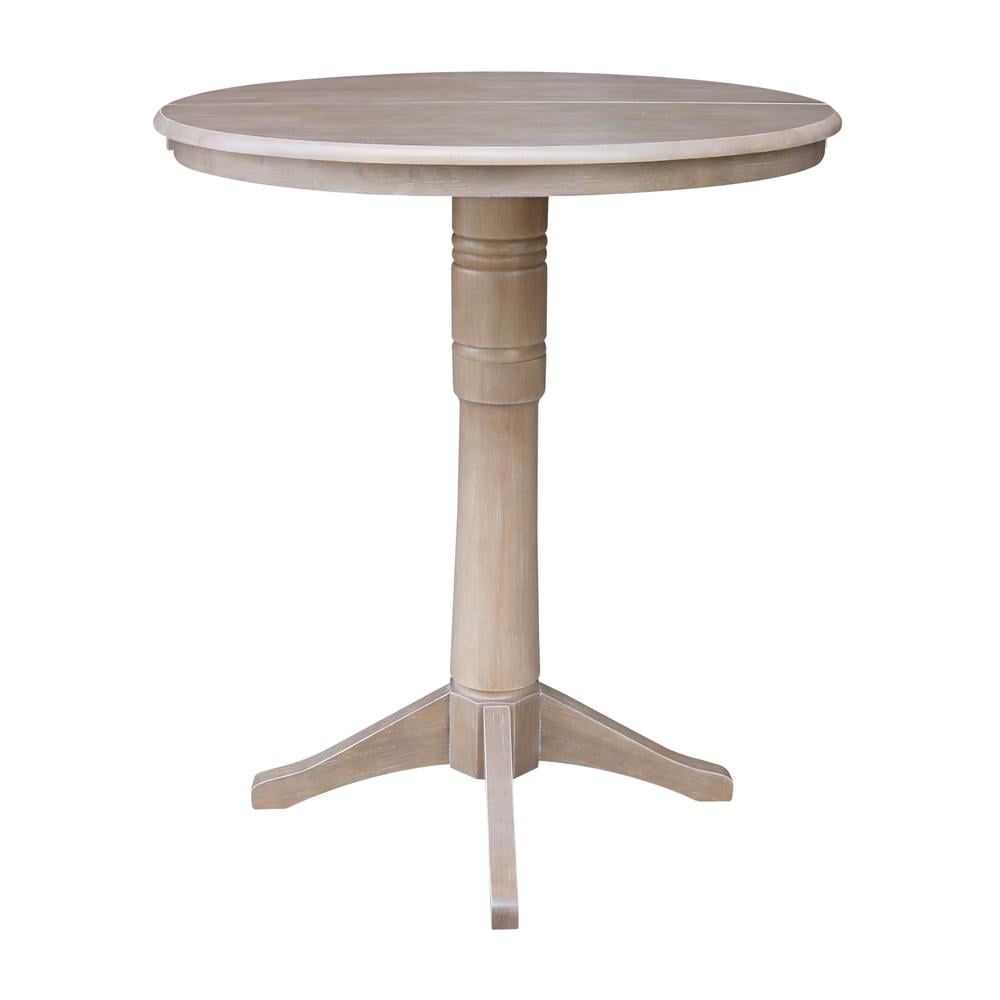 36″ Round Top Dining Table with 12″ Leaf, Washed Gray Taupe