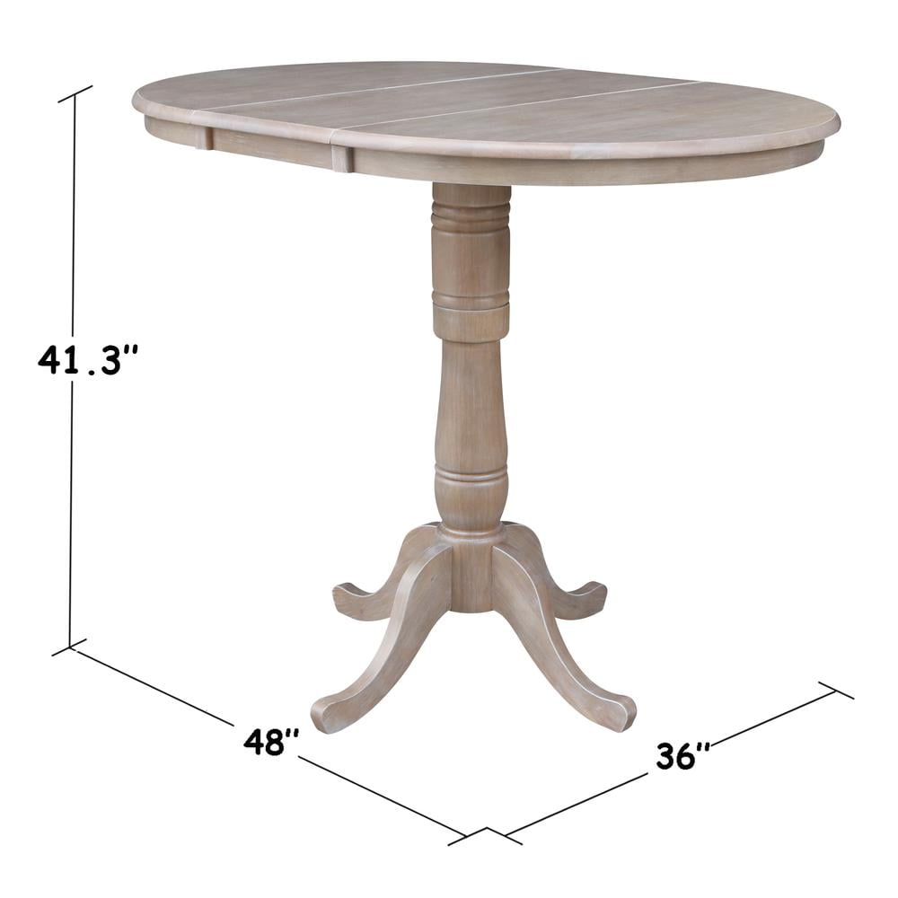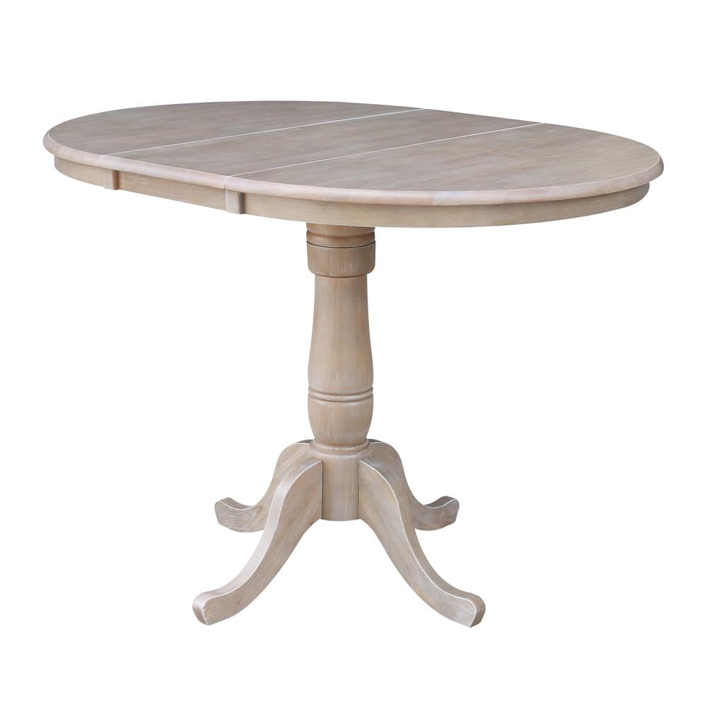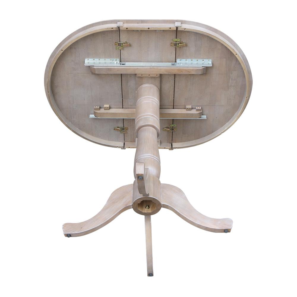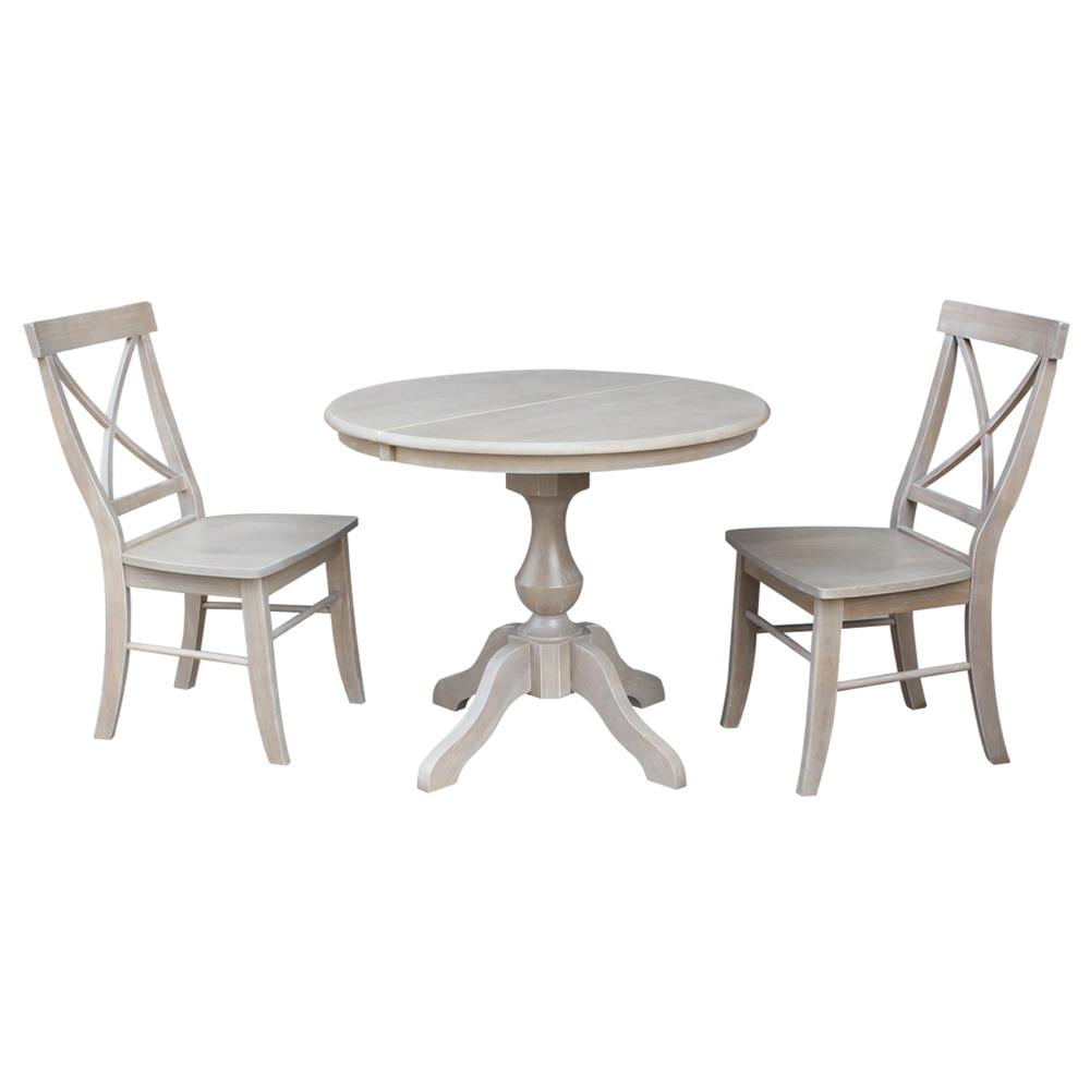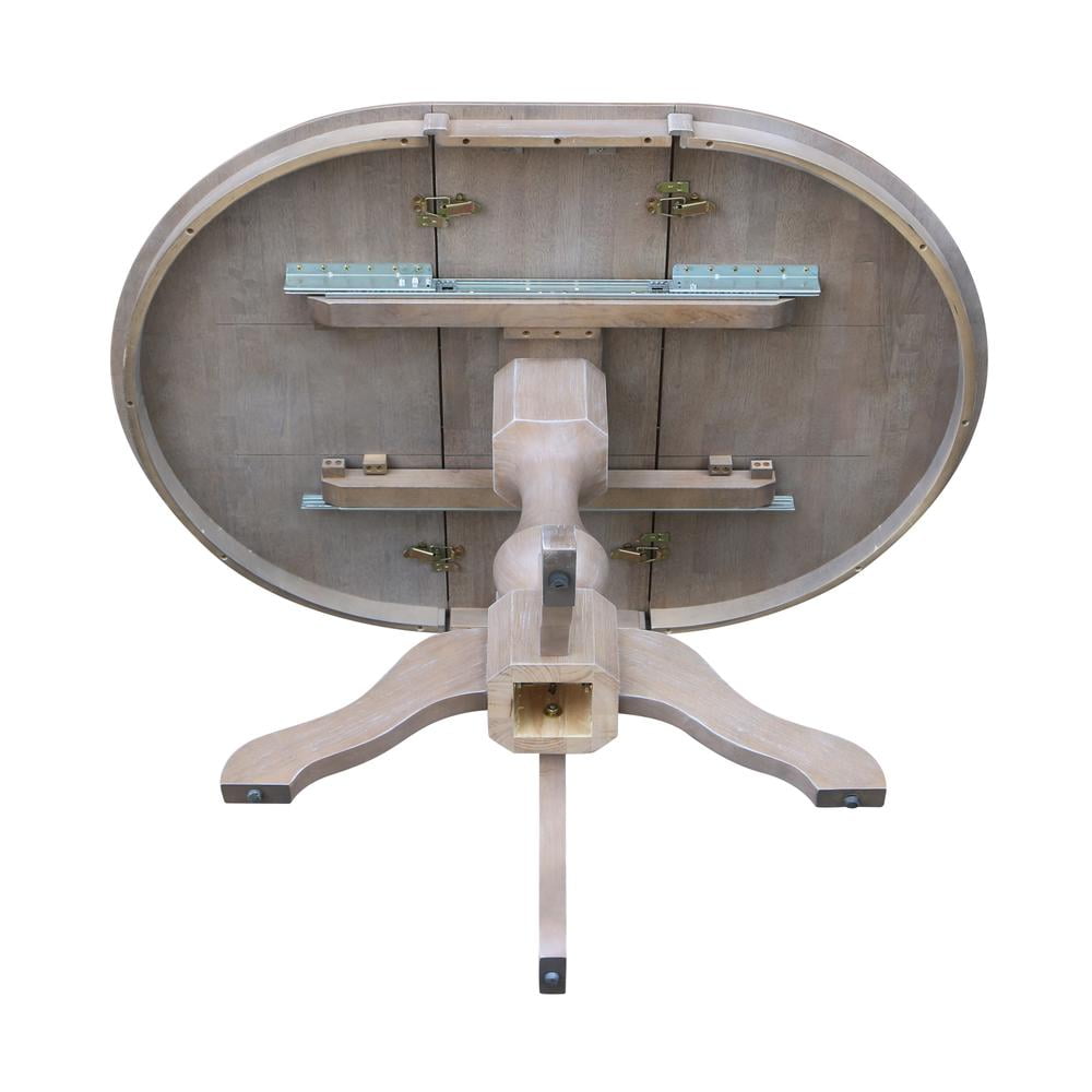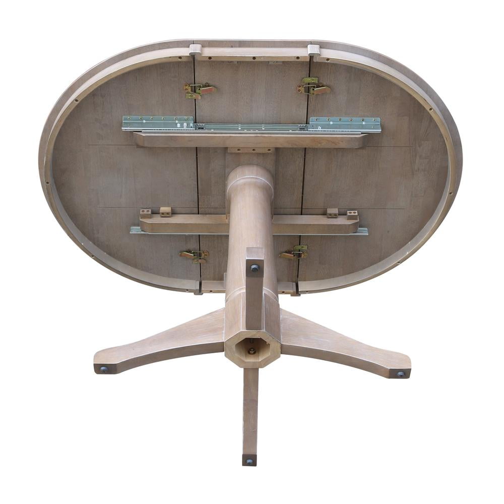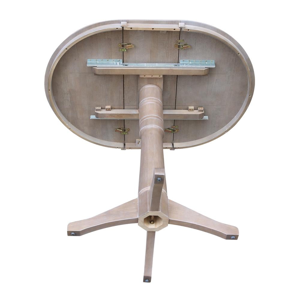 36″ Round Top Dining Table with 12″ Leaf, Washed Gray Taupe