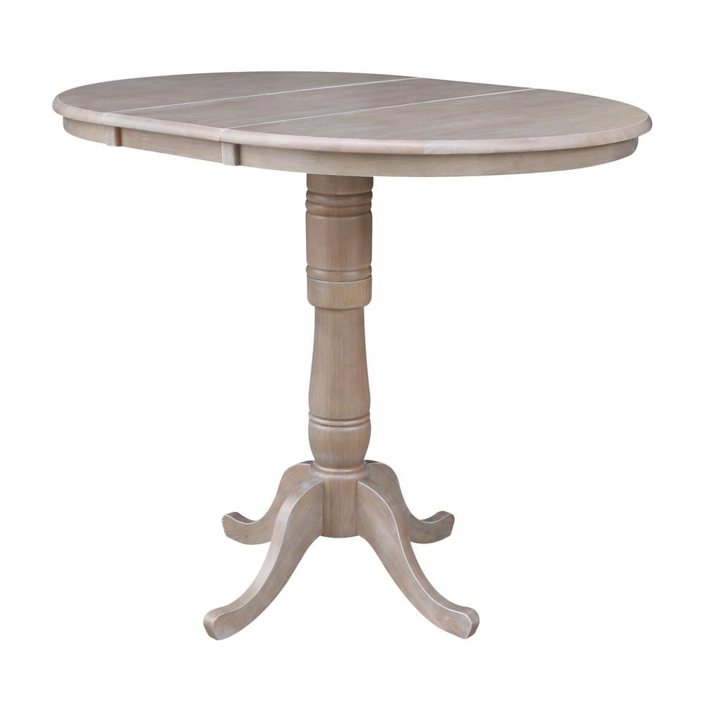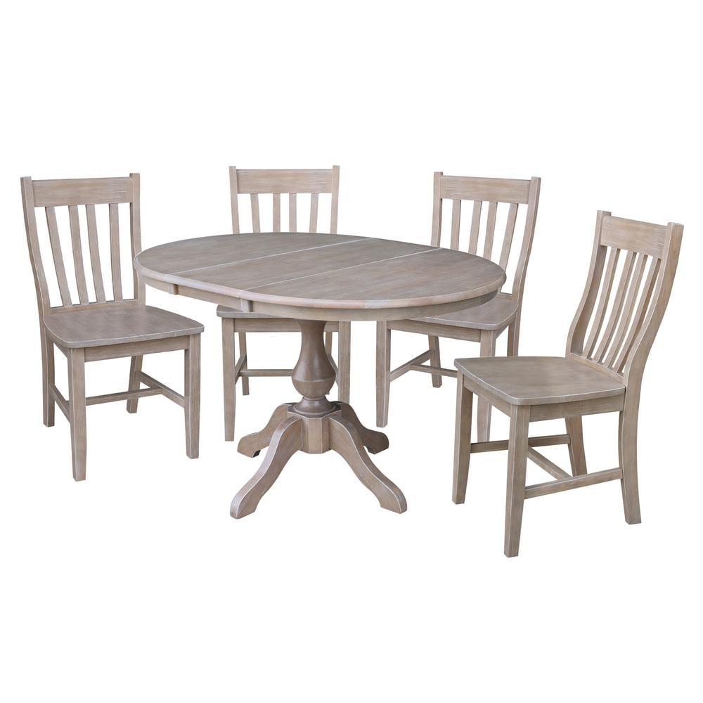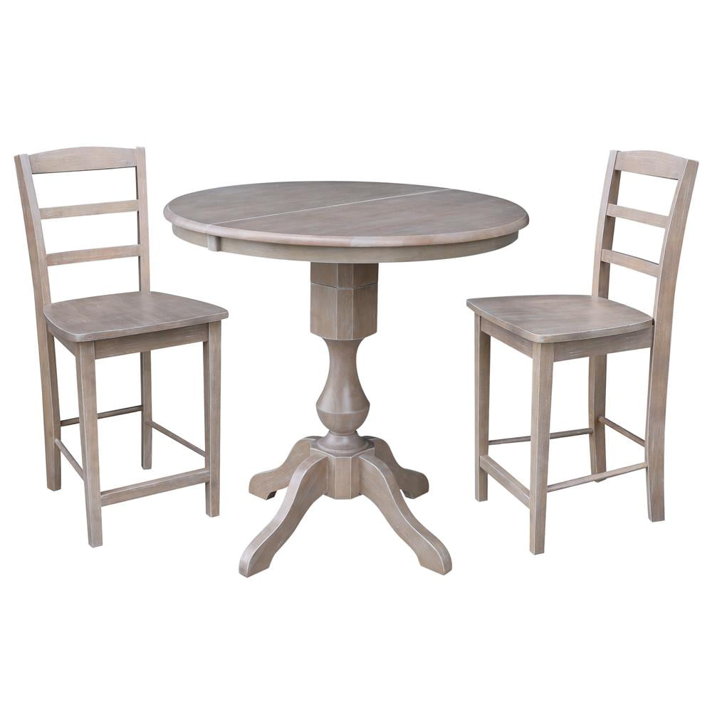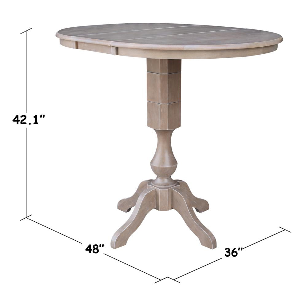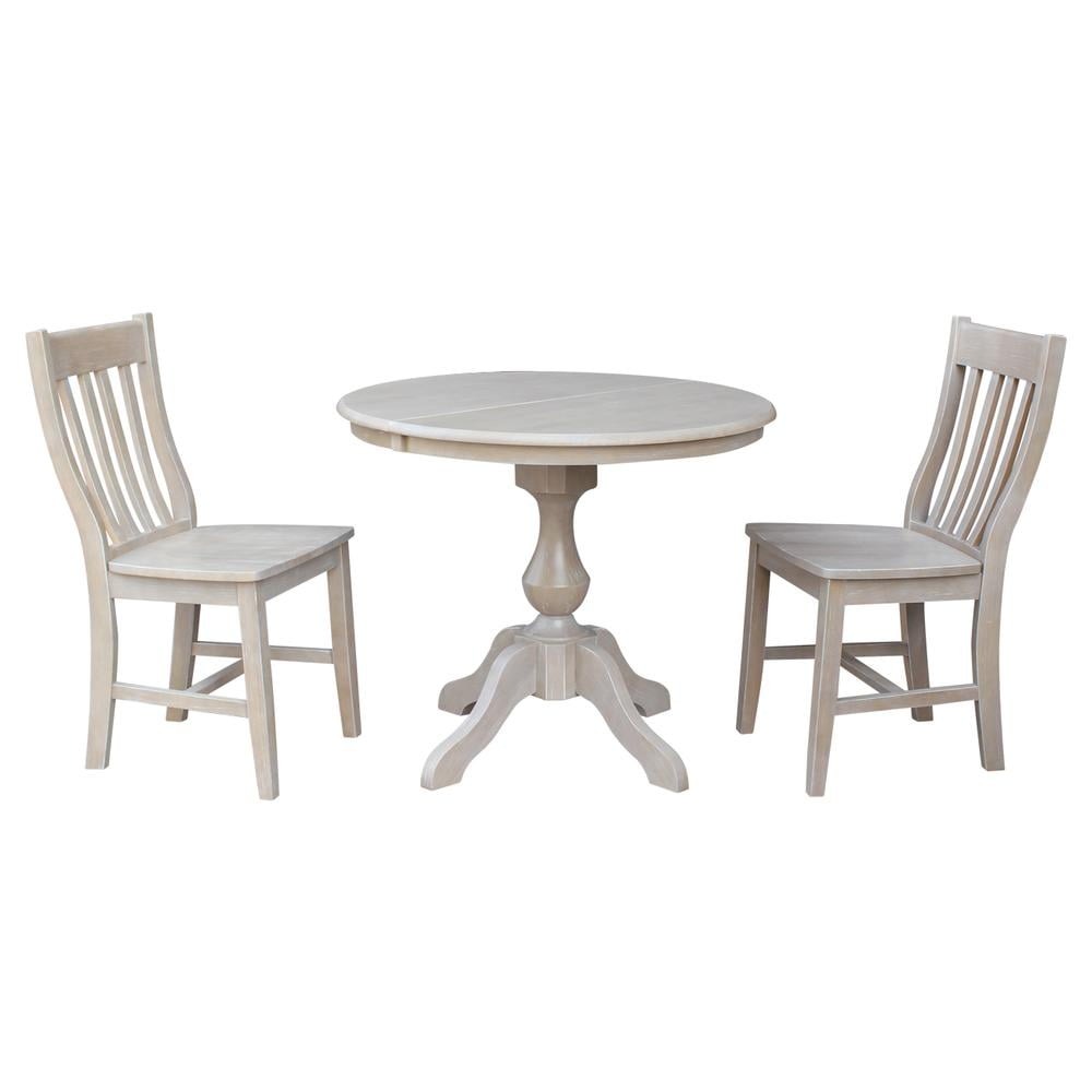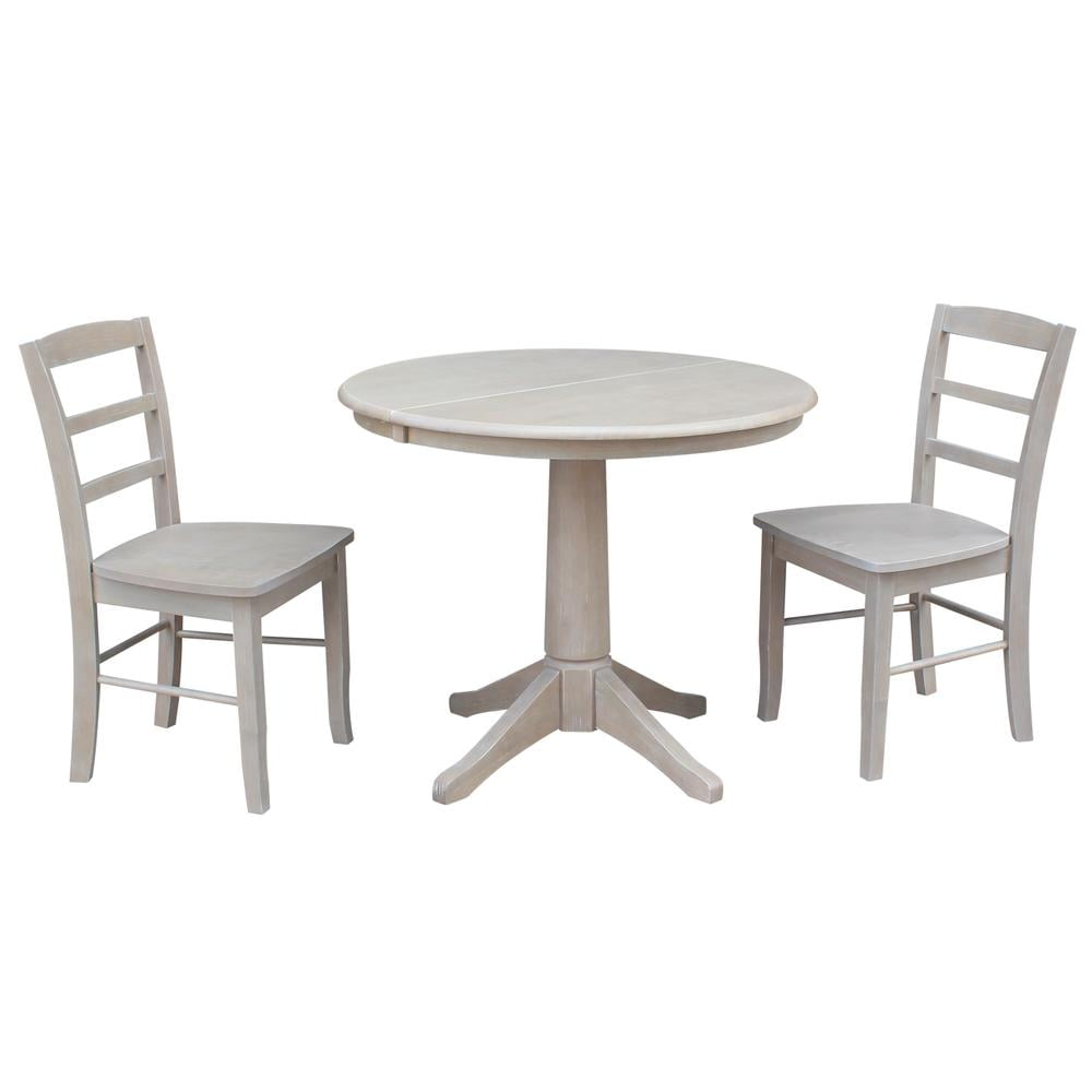 36″ Round Top Dining Table with 12″ Leaf, Washed Gray Taupe