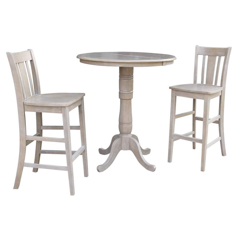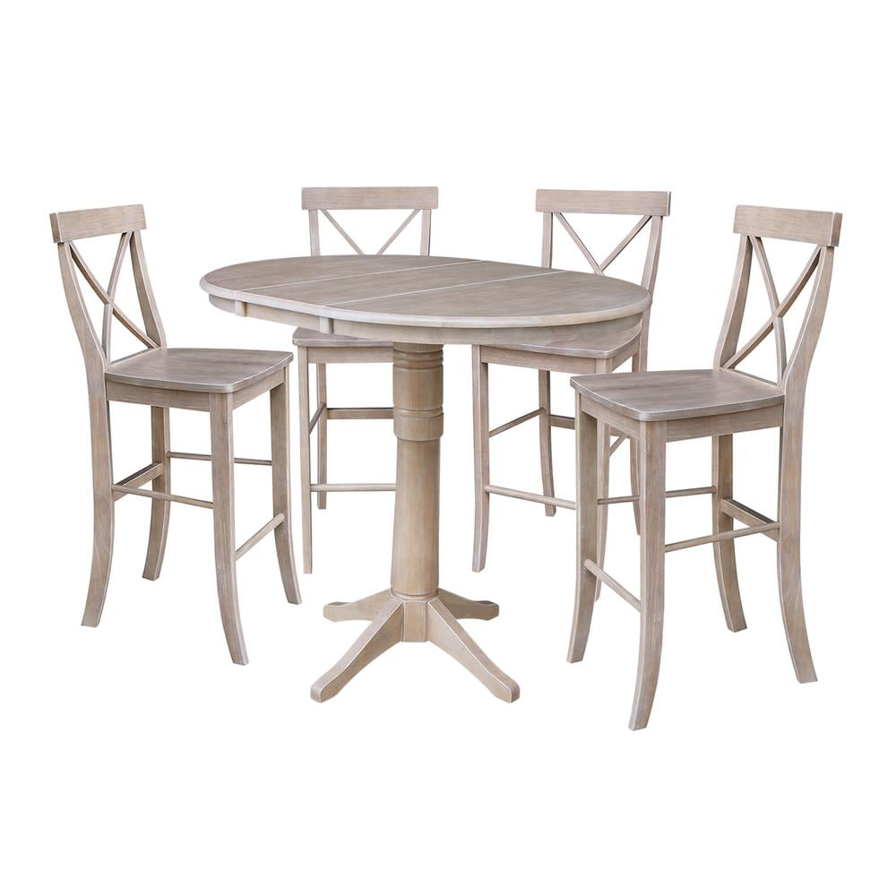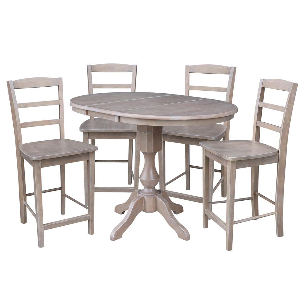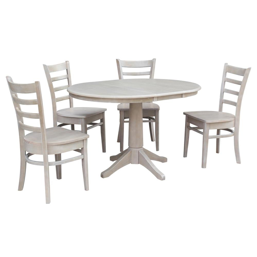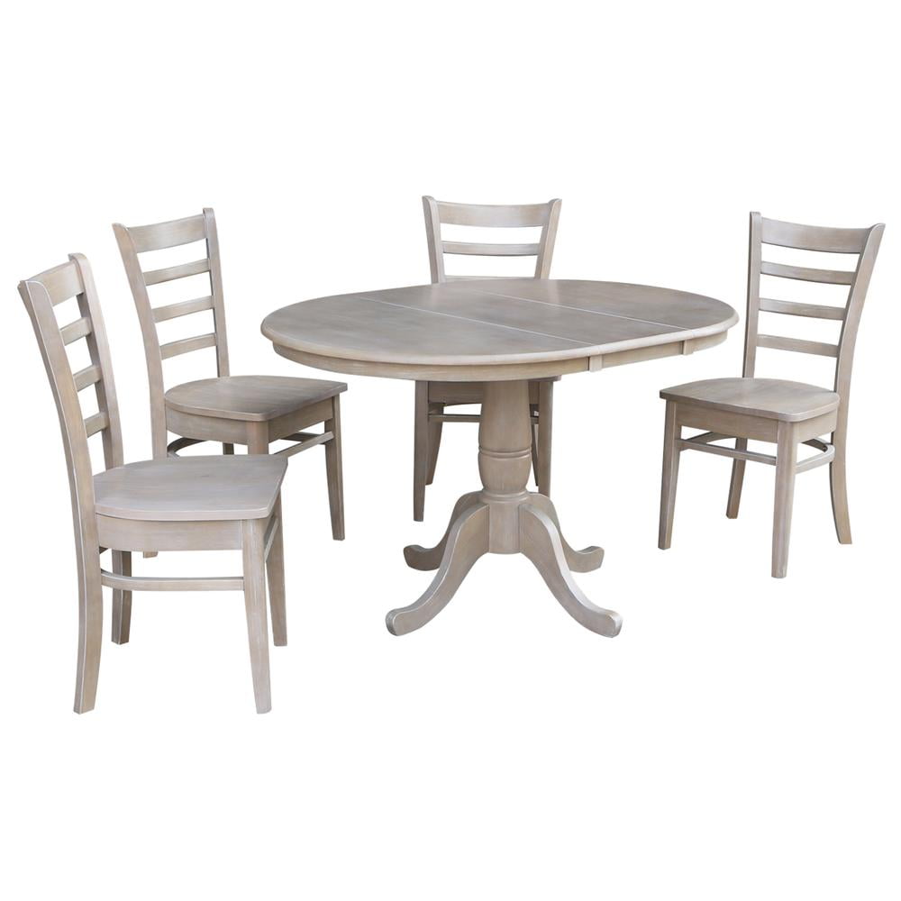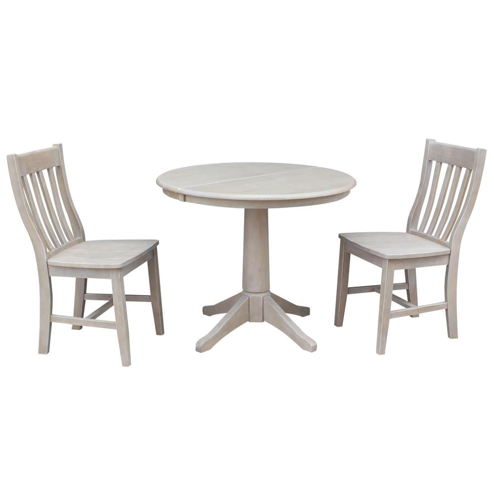 36″ Round Top Dining Table with 12″ Leaf, Washed Gray Taupe