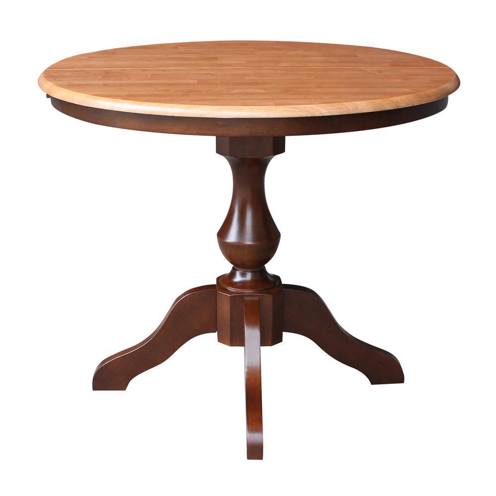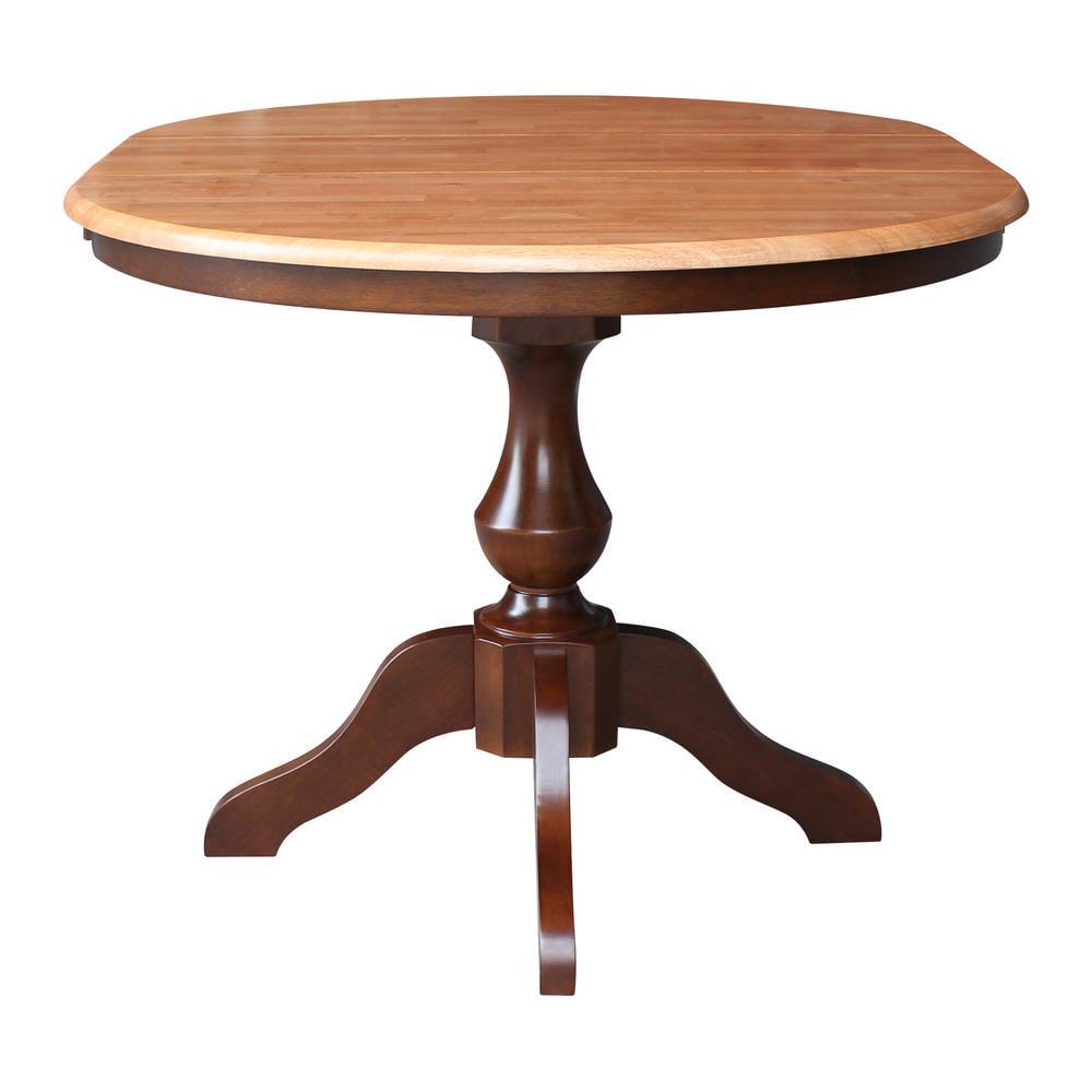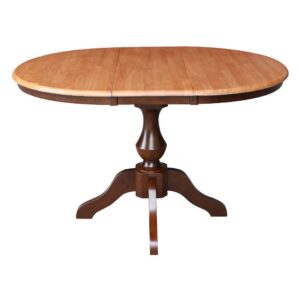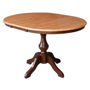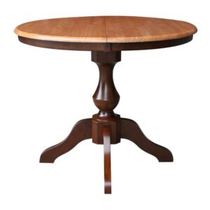 36″ Round Top Pedestal Table With 12″ Leaf – 28.9″H – Dining Height, Cinnamon/Espresso