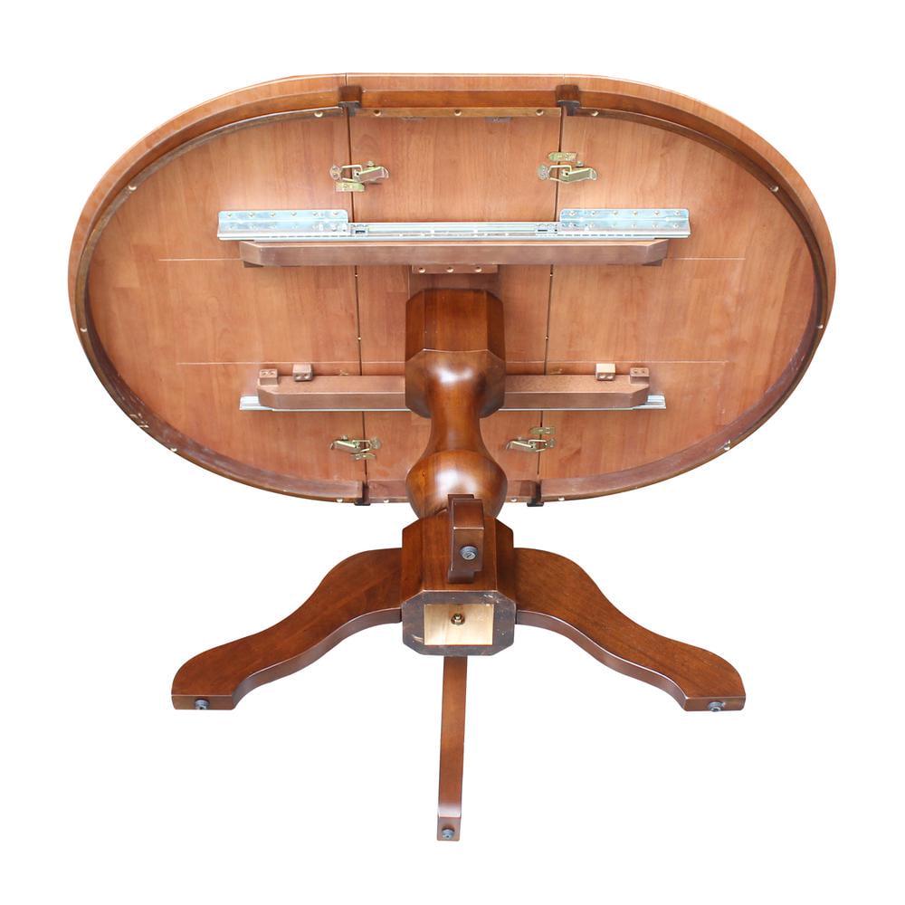 36 Round Top Pedestal Dining Table with 12 Leaf – Cinnamon/Espresso
