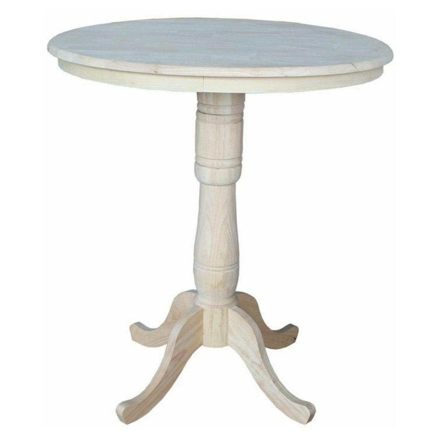 Lots of manufacturers seem to think that all a bar-height table needs to be is tall, but the International Concepts Hollow Creek 36 in. Round Pedestal Pub Table shows that just because a table’s tall doesn’t mean that it can’t be stylish too. Crafted with a style that’s reminiscent of traditional furniture design, this tall table features a thick, lathe-turned pedestal on a four-foot base for added stability. The three-foot wide tabletop features a subtle apron that adds visual depth to the design. The entire piece is constructed using unfinished parawood, a material that’s used in furniture-making for its appealing grain and reliable, medium-density body.