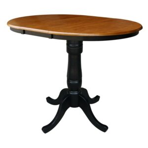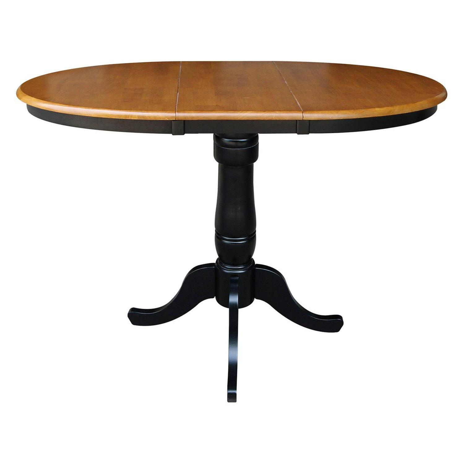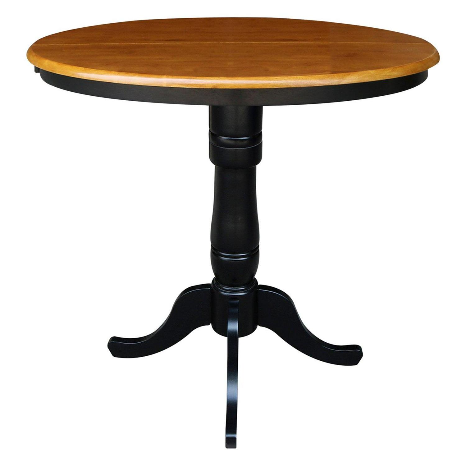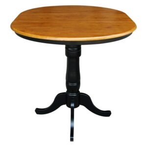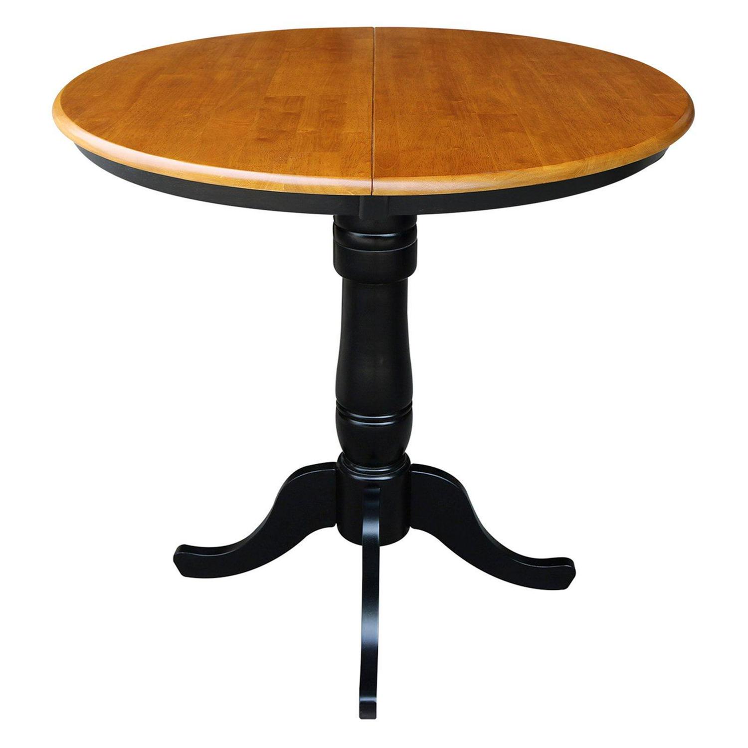 36″ Round Top Pedestal Table With 12″ Leaf – 34.9″H – Dining or Counter Height, Espresso