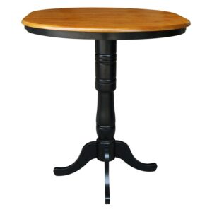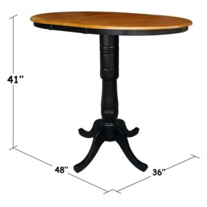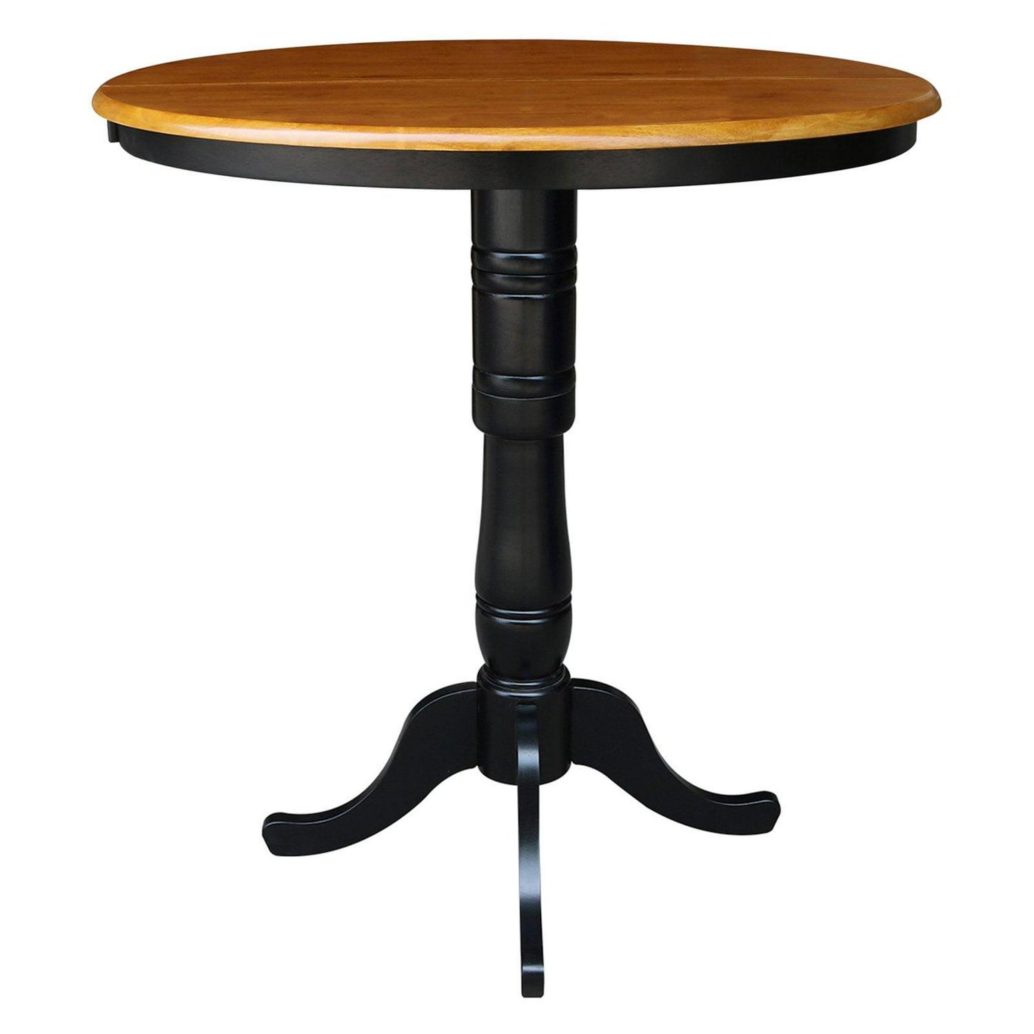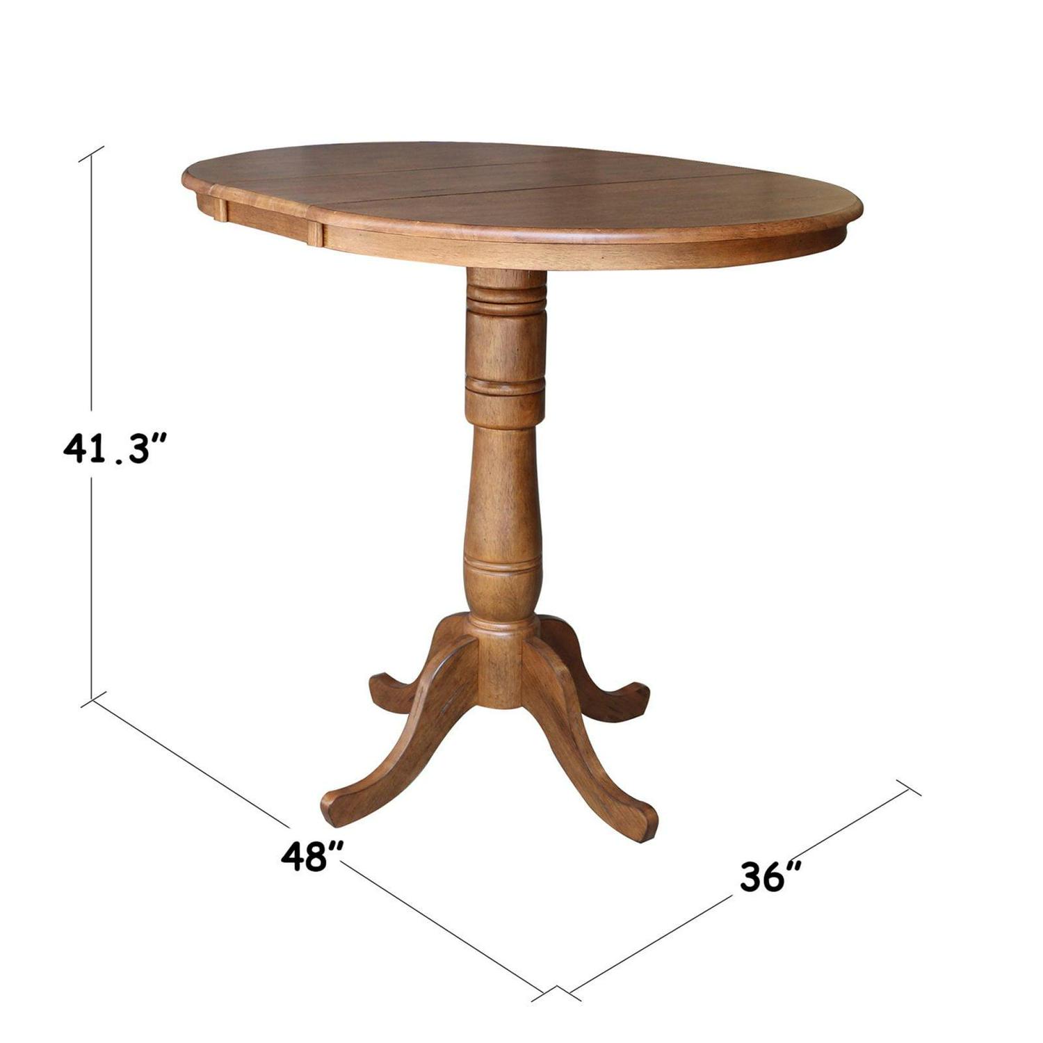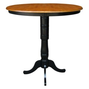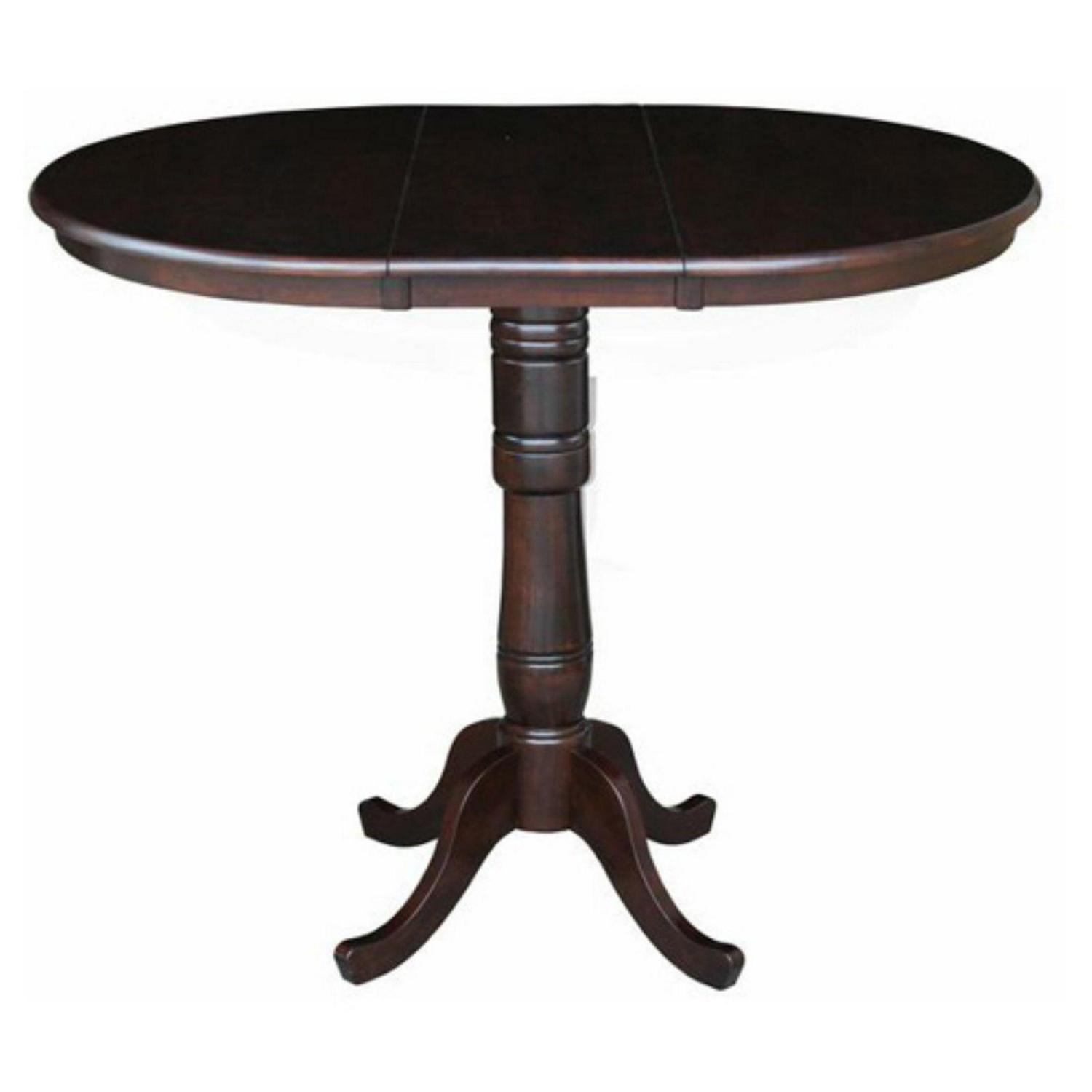 36″ Round Top Pedestal Table With 12″ Leaf – 40.9″H – Bar Height, Rich Mocha