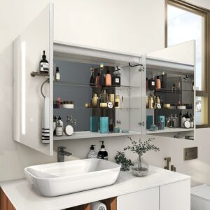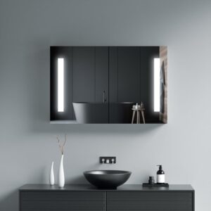 – Packaging & Accessories This wall-mounted medicine cabinet comes with customized packaging to better protect the LED mirror and cabinet. It has passed all tests, including drop test, impact test, stress test, etc.100cm Hard wire no plugs, 2-layer tempered glass partition screws, positioning plates, wall brackets and installation instructions included.