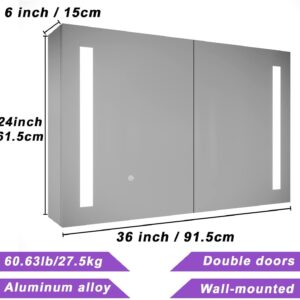 36 X 24 inch LED Lighted Medicine Cabinets with Mirror, Mriplus Wall Mounted LED Bathroom Mirror Medicine Cabinet, Double Doors Medicine Cabinet with Storage Shelves, Touch Switch, Defogger