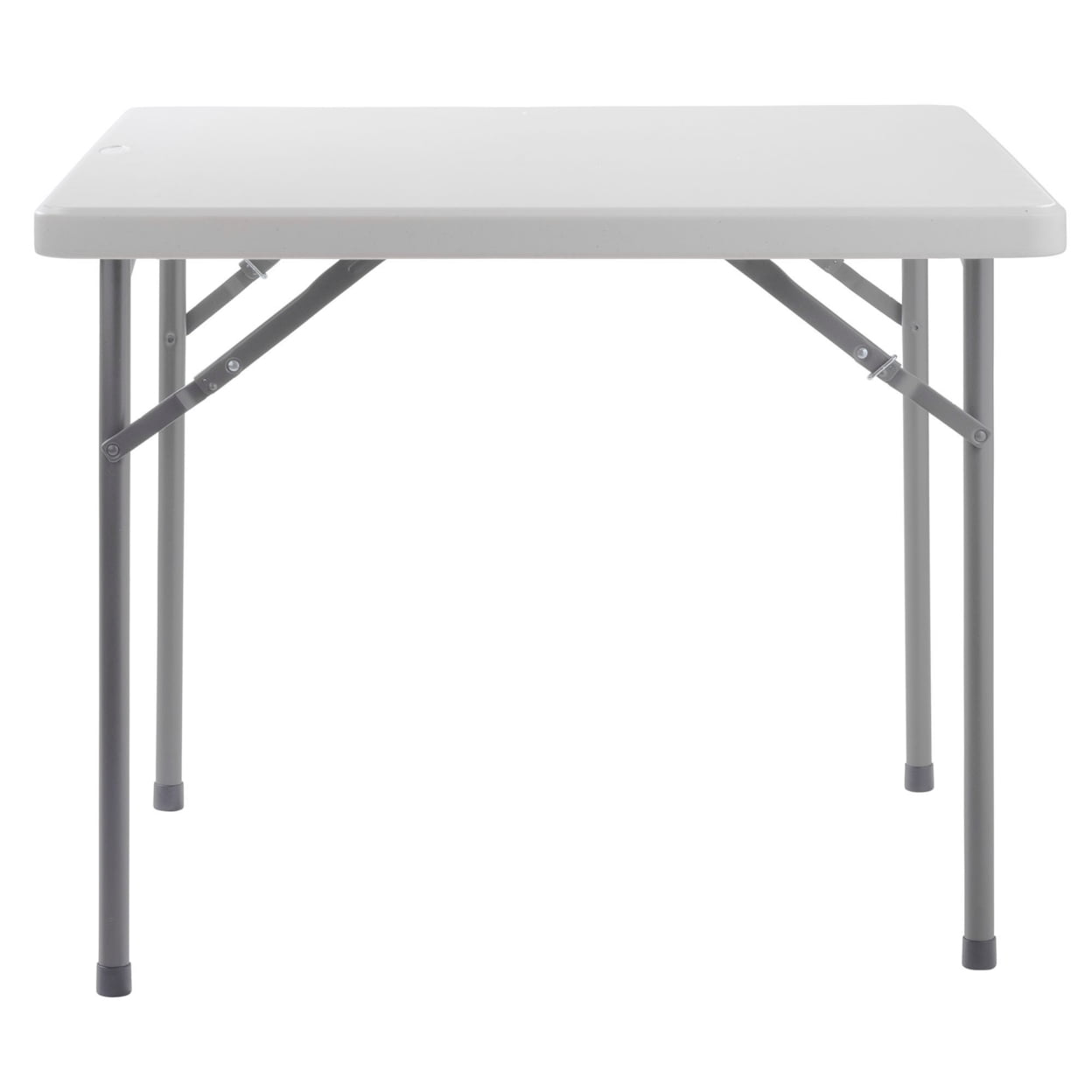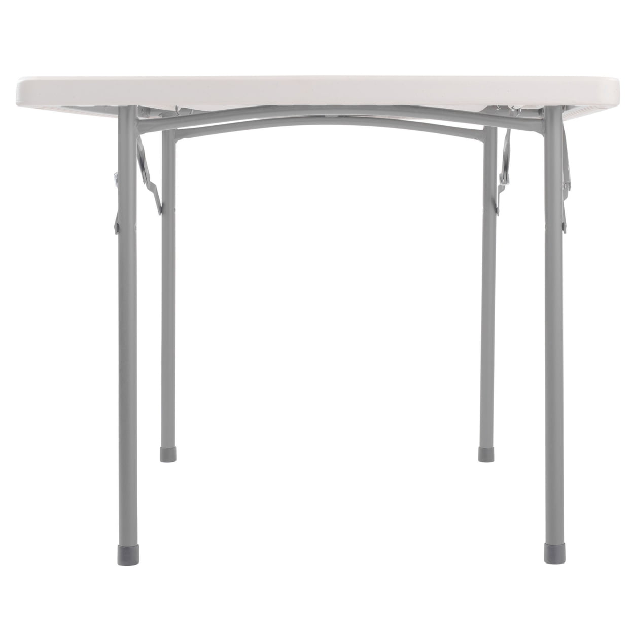 36″ x 36″ Heavy Duty Folding Table – Speckled Grey Description: Our square blow-molded plastic folding table is the perfect solution for home, office, picnic and cafeteria use. Suitable for indoor or outdoor in any application that calls for affordable, lightweight, weather-resistant and highly durable folding tables. Their lightly textured design keeps them scratch-resistant yet still enables a surface smooth enough for writing. The plastic tabletop is heat-resistant up to 212 degree F and designed with a non-bowing eggshell structure for fortification to hold up to 500 lbs. of distributed weight! The tabletop color is a light speckled gray matching the textured gray powder-coated steel frame. The legs are straight style and feature gravity slide locks which maintain the table’s overall strength and support. Lightly textured surface to resist scratching yet smooth enough to write on. Lightly spotted grey top w/ grey textured powder coated straight shaped legs on a square tabletop. Can withstand heat up to 212 degrees Fahrenheit. Gravity slide lock or snap lock, for extra stability. 19-Gauge Strength Frame And 19-Gauge Legs. Attractive Arched tube leg connectors for added strength. Features: 500 Lb. weight capacity equally distributed Surface Color: Speckled Grey. Frame Color: Grey Product Dimensions: 36″W x 36″D x 29.5″H, Weight: 23 lbs Square shape. 1 3/4″ thick Top 10 Year Warranty Brand Name: National Public Seating Model No: 1048-BT3636