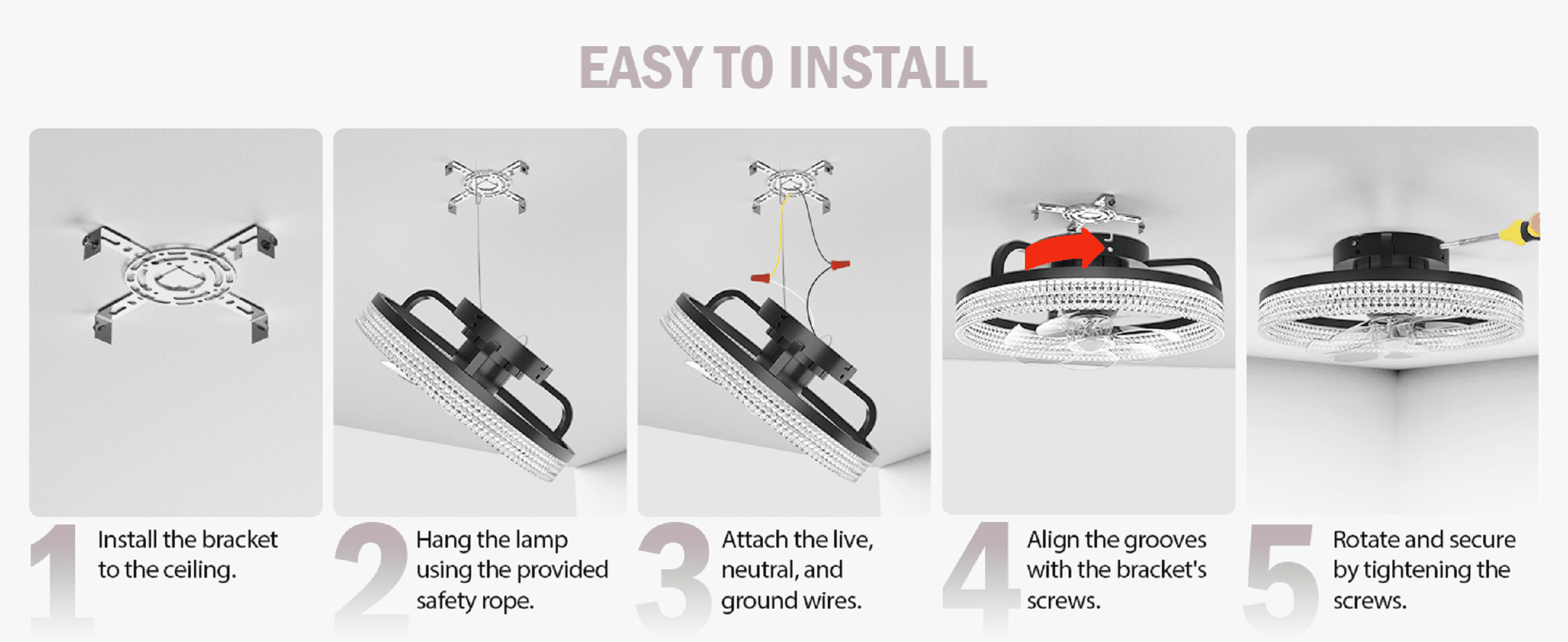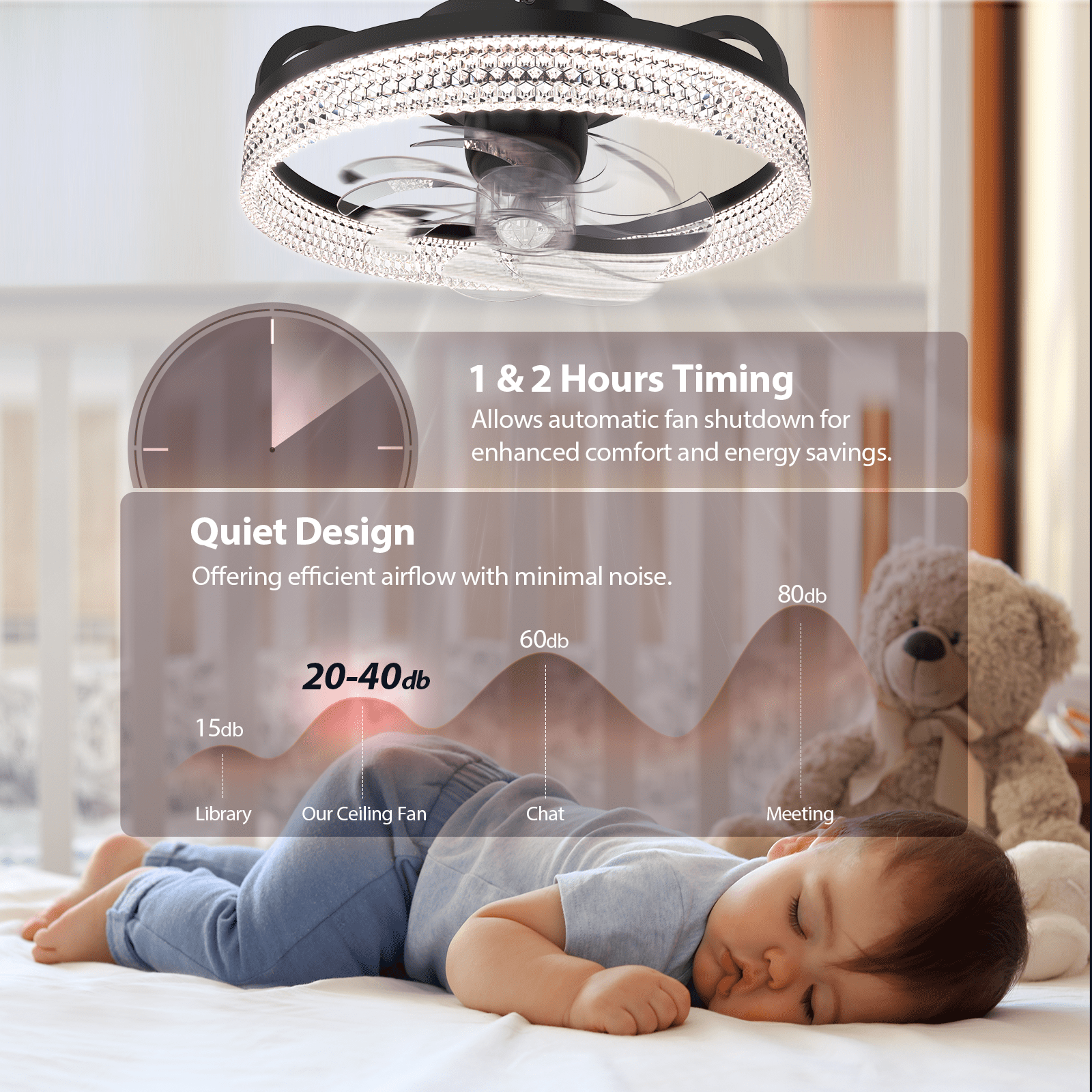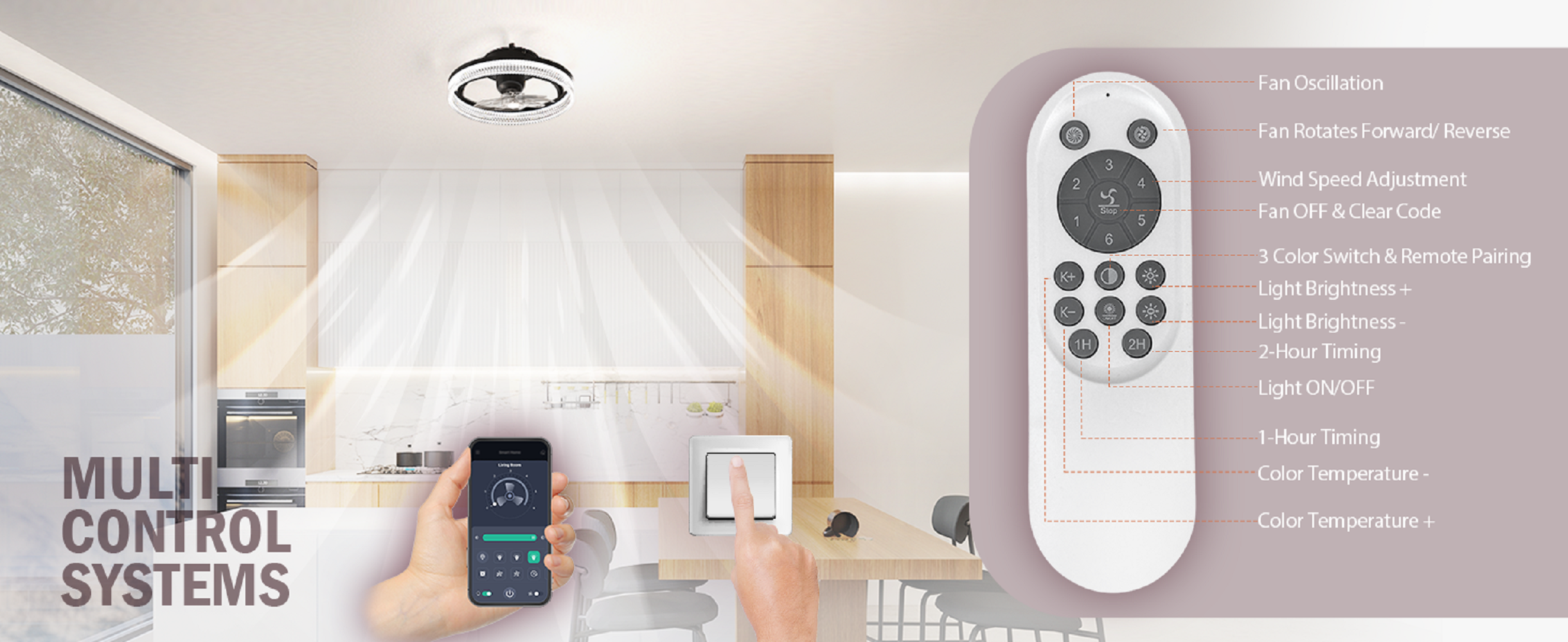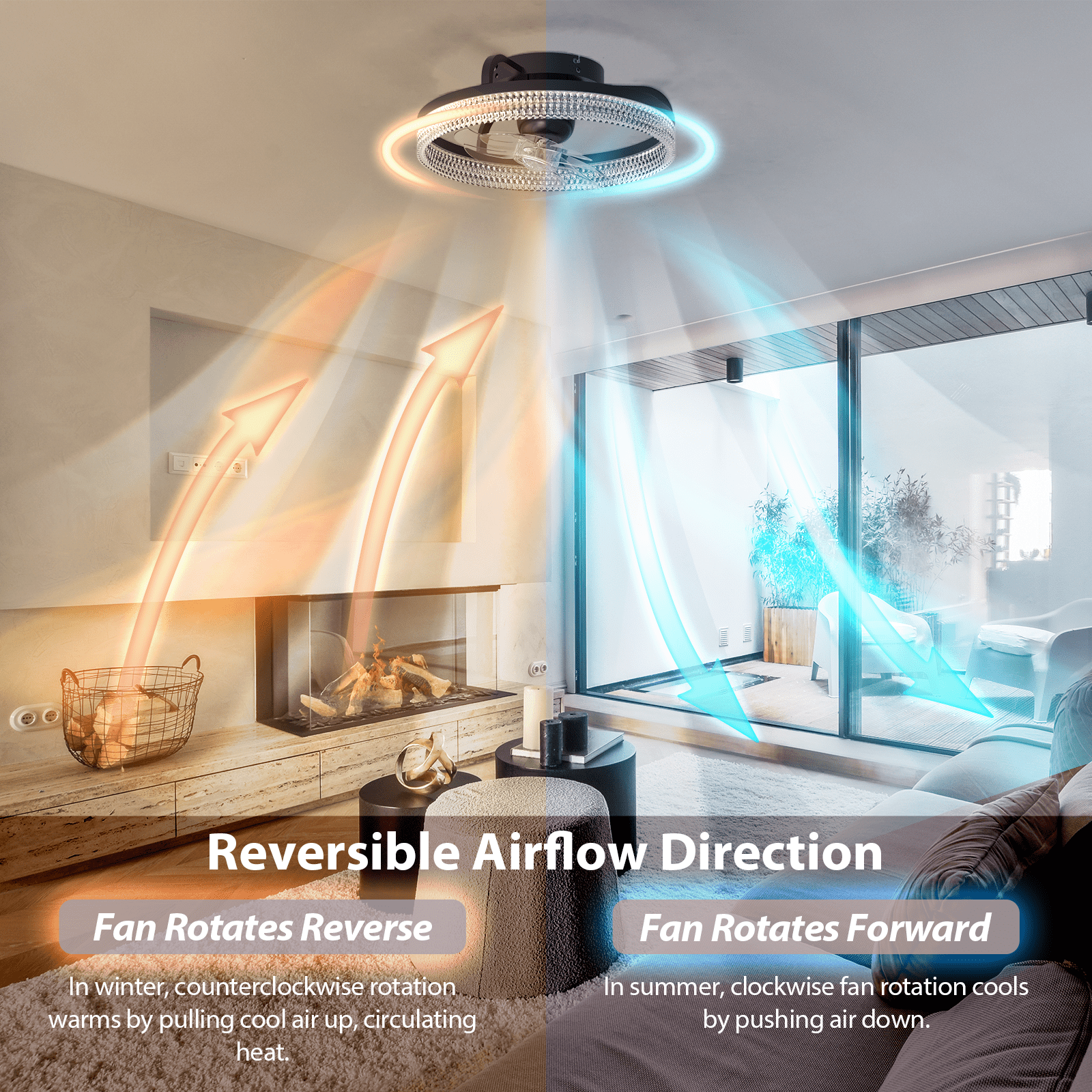 【360°Oscillating Ceiling Fan】 This FIMEI 360°oscillation ceiling fan can shake head but also focus the airflow in a specific direction. Even though it’s only 19.7 x 19.7 x 6.1 inches, it effortlessly fills the room with a refreshing breeze. The propeller-style design and large-angle black fan blades expand the effective range of air circulation, optimizing both comfort and space utilization. 【3-Color Dimmable LED Lighting & Memory Function】 With 3 selectable color temperatures (3000K/4500K/6600K) and stepless adjustable brightness ranging from 5% to 100%, you can customize the lighting according to various activities such as parties, work, or reading. It also features a memory function, remembering your last brightness setting for convenience. The ceiling fan utilizes a replaceable LED light board and offers enhanced functionality. 【Reversible & Quiet Motor & 6 Speed Options】Reversible function allows it to effortlessly switch from the downward airflow in summer to the upward airflow in winter using the remote control, provides a better air circulation. Benefit from 6 adjustable speed settings and noise levels from 20-40 dB, ensuring energy efficiency and peaceful operation. 【Convenient Remote, App Controls and 1-2 Hours Timing】The inclusive remote offers all operation features, such as 1-2 hours timing, 6-speed settings, 3 color temperatures, dimming features, reversible airflow etc. Also, you can use the app to add flexibility across different scenarios. The wall switch can turn on/off the light or switch the light color. NOTE: Remote is packed with the controller at the bottom of the packing box. 【Delicate Ceiling Fans for Perfect Decoration】The LED lamp shell of the ceiling fan is made of high transparent acrylic. High strength iron frame keeps the fan stable be mounted on the ceiling. With the modern designed outlook of the lamp shell, perfect decoration for your beautiful room. 【Easy to Install】Please confirm the size of the ceiling fan you need before ordering. The product comes with all necessary accessories and a graphic description manual, so you can finish the installation within a short time. If you have any questions, please feel free to contact us, so that we can solve it for you in a timely manner.