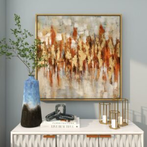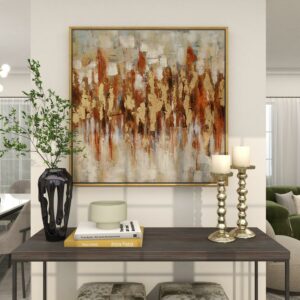 – 39″ x 39″ Abstract Framed Wall Art with Gold Frame, by DecMode makes a perfect addition to any home
