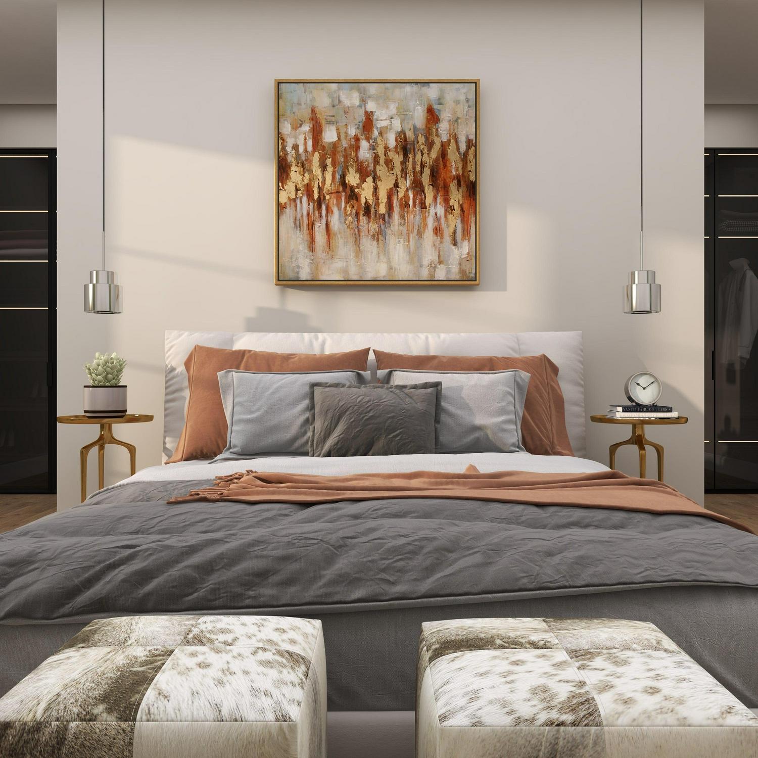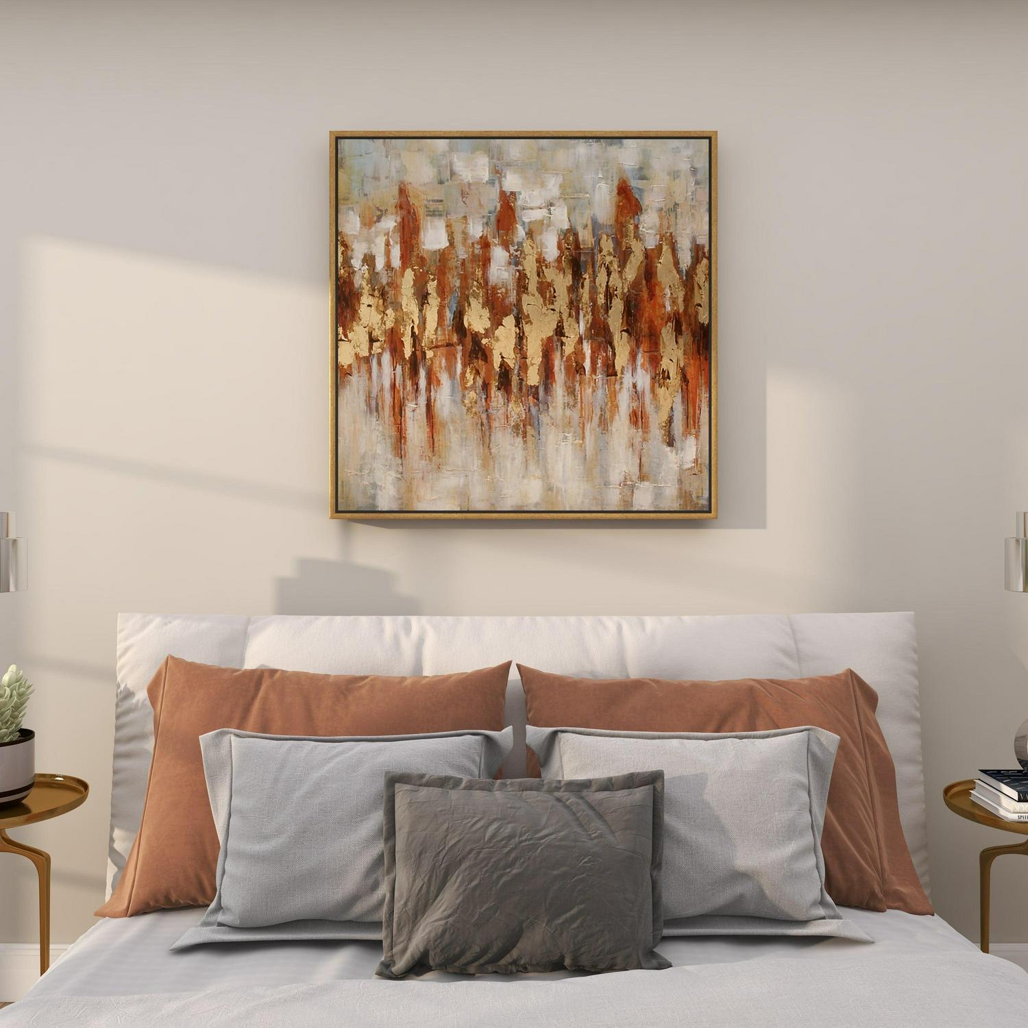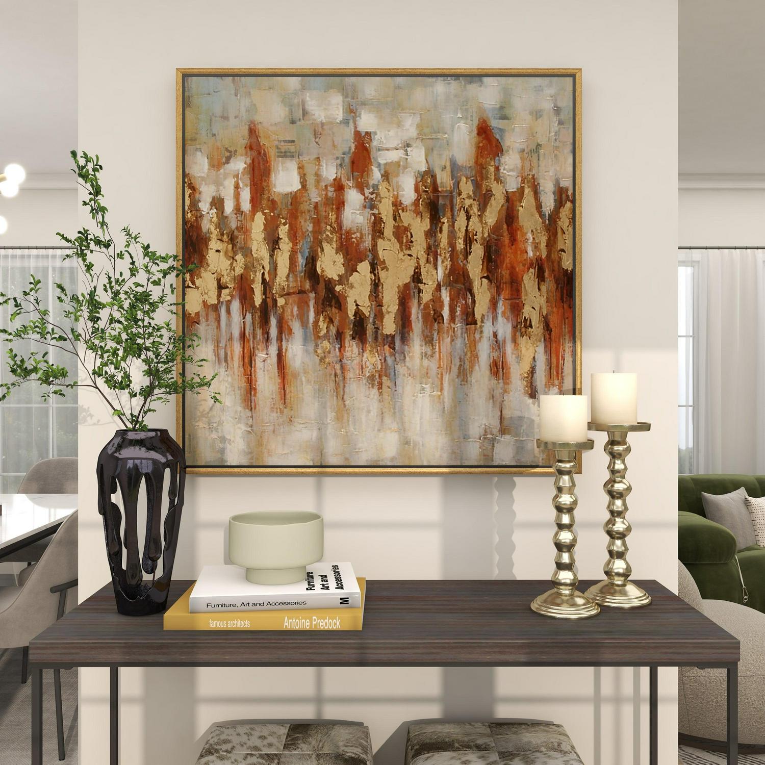 - 39″ x 39″ Abstract Framed Wall Art with Gold Frame, by DecMode makes a perfect addition to any home