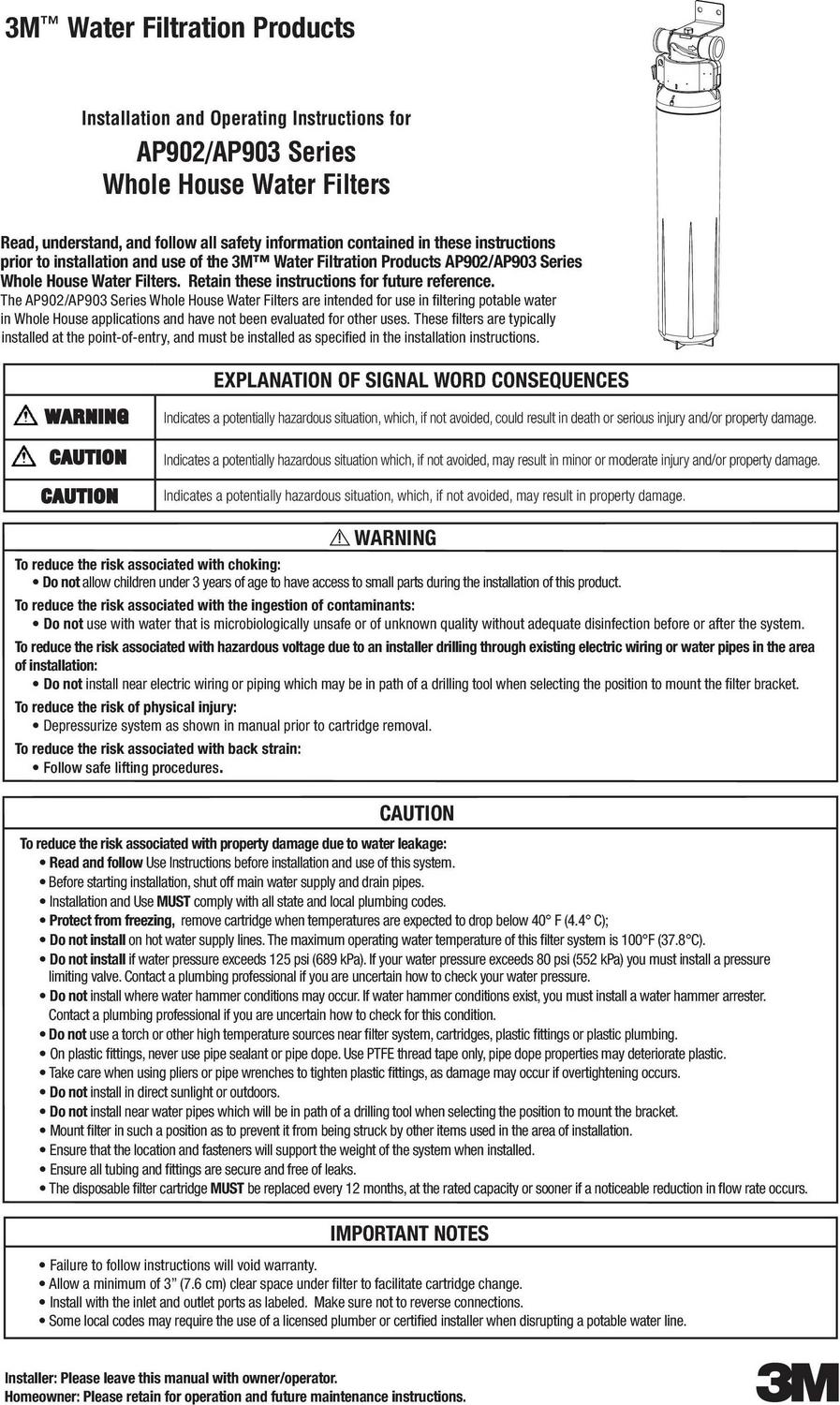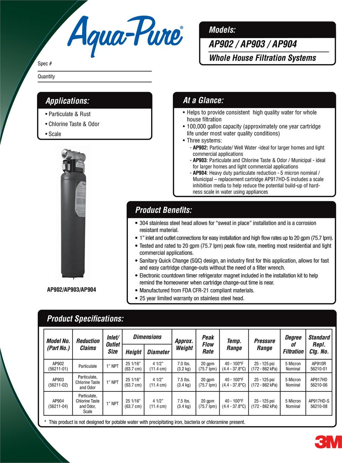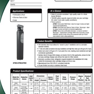– Sanitary Quick Change (SQC) design allows for fast and easy change-outs of the 3M Aqua-Pure AP917HD Replacement Water Filter Cartridge without having to contact the filter media or the need for a filter wrench