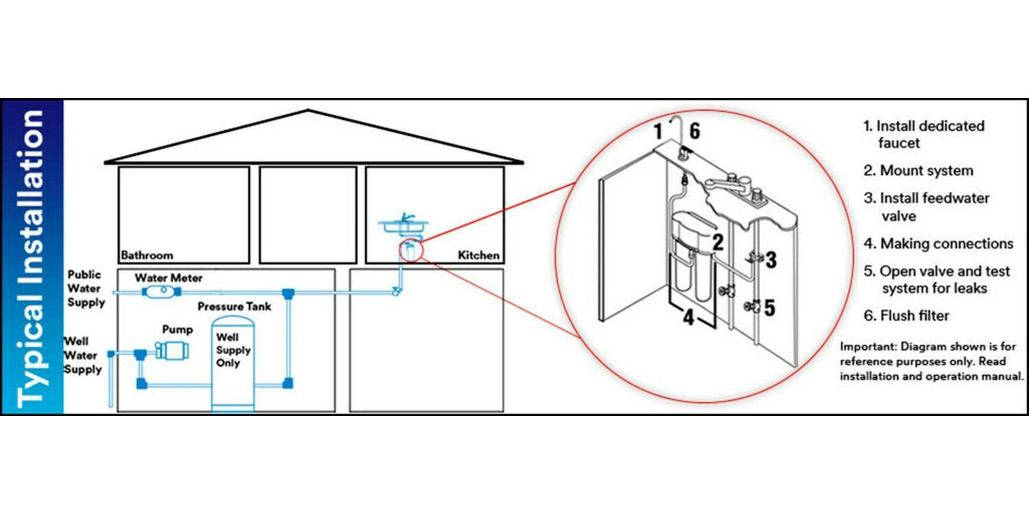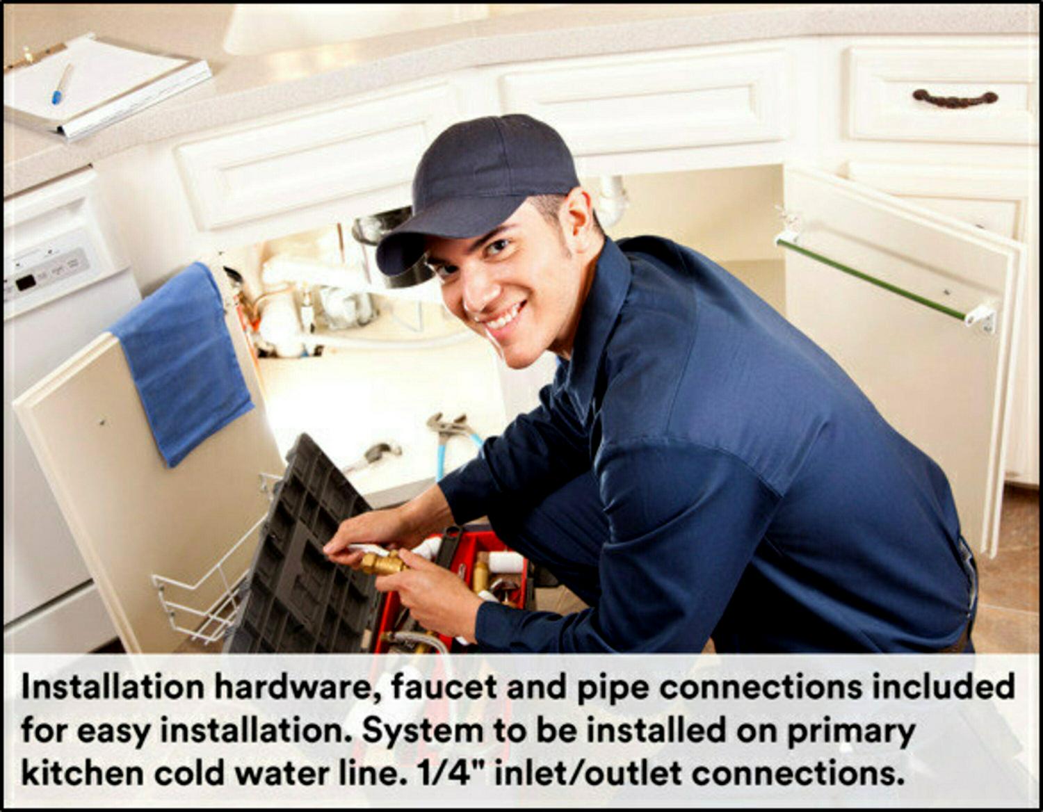 – INSTALLATION MADE EASY: Installation hardware, faucet, and pipe connections included for easy installation. System to be installed on primary kitchen cold water line. 1/4″ inlet/outlet connections