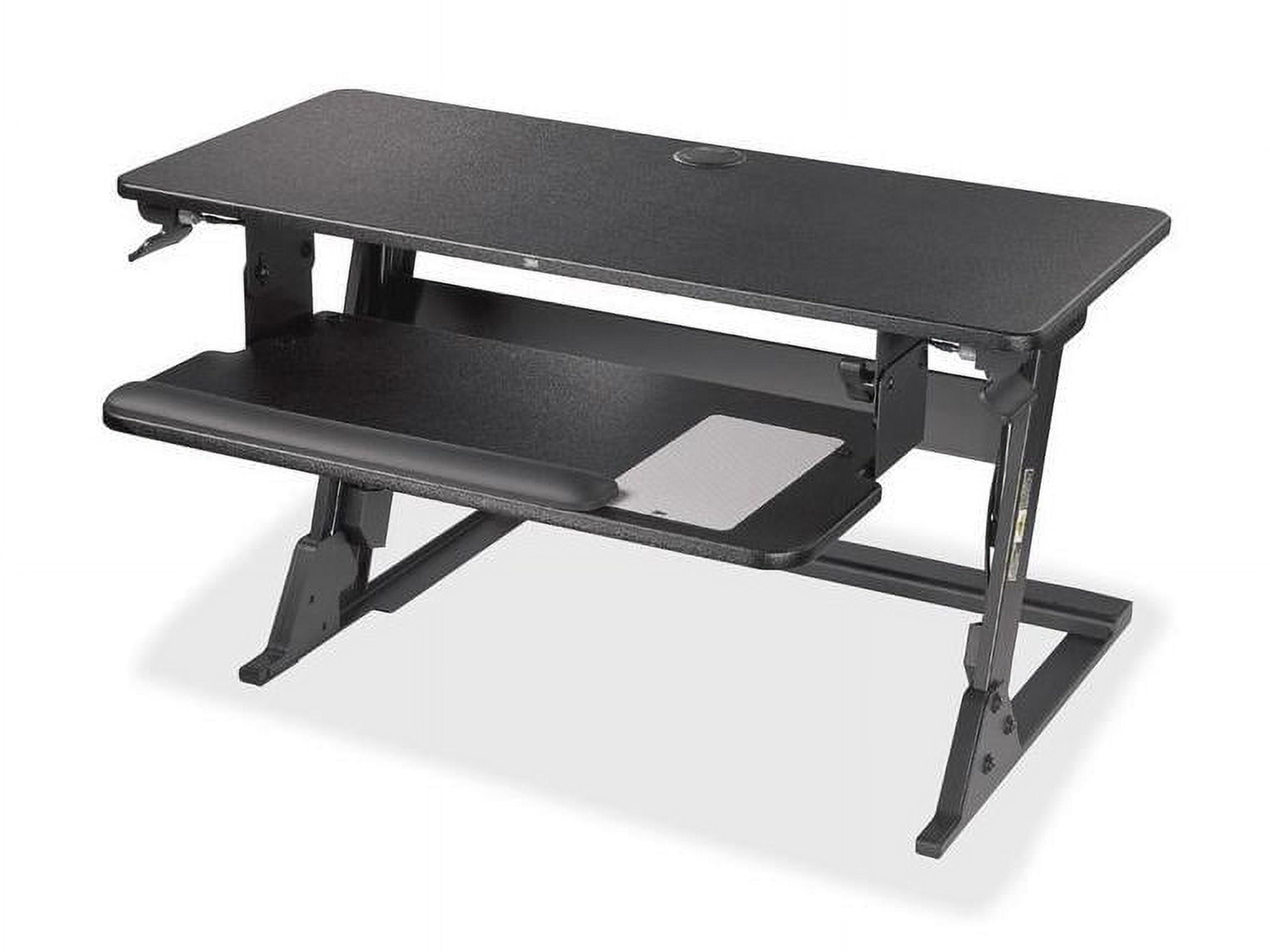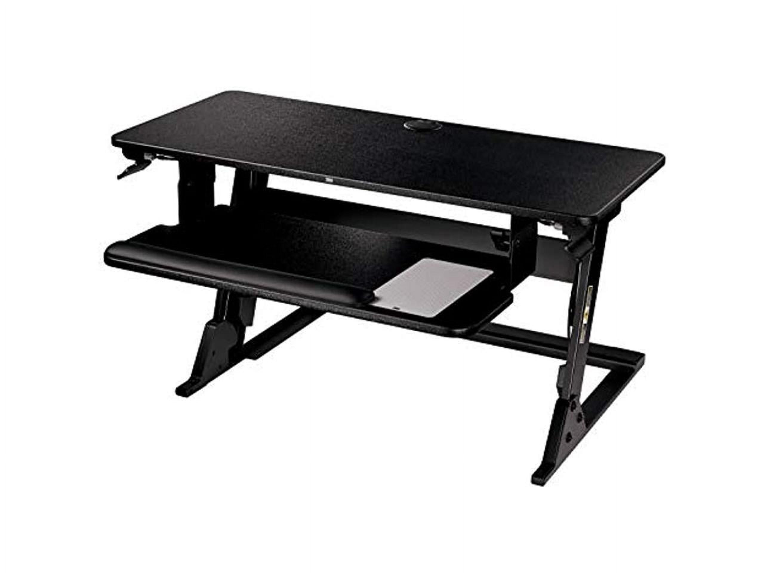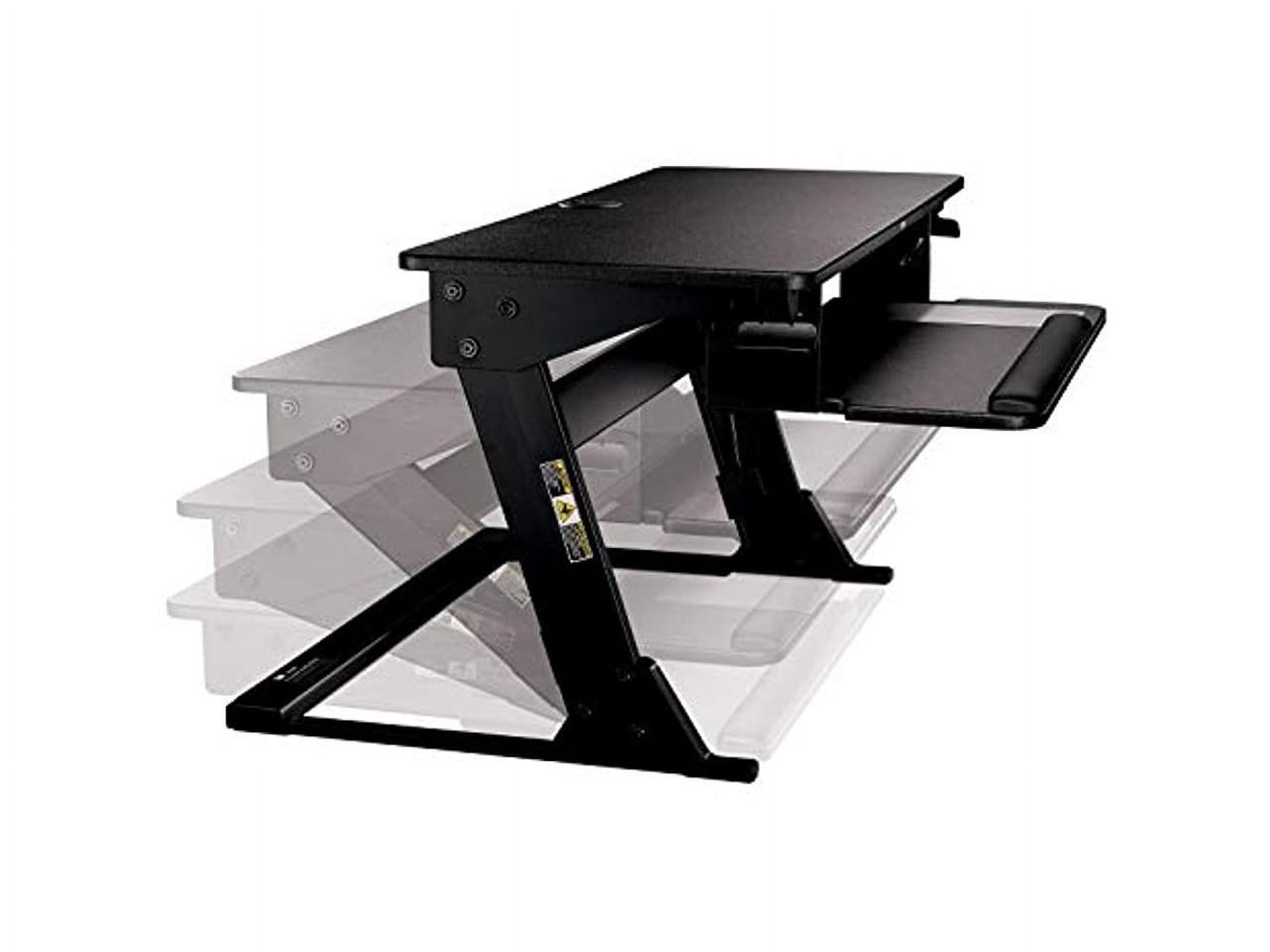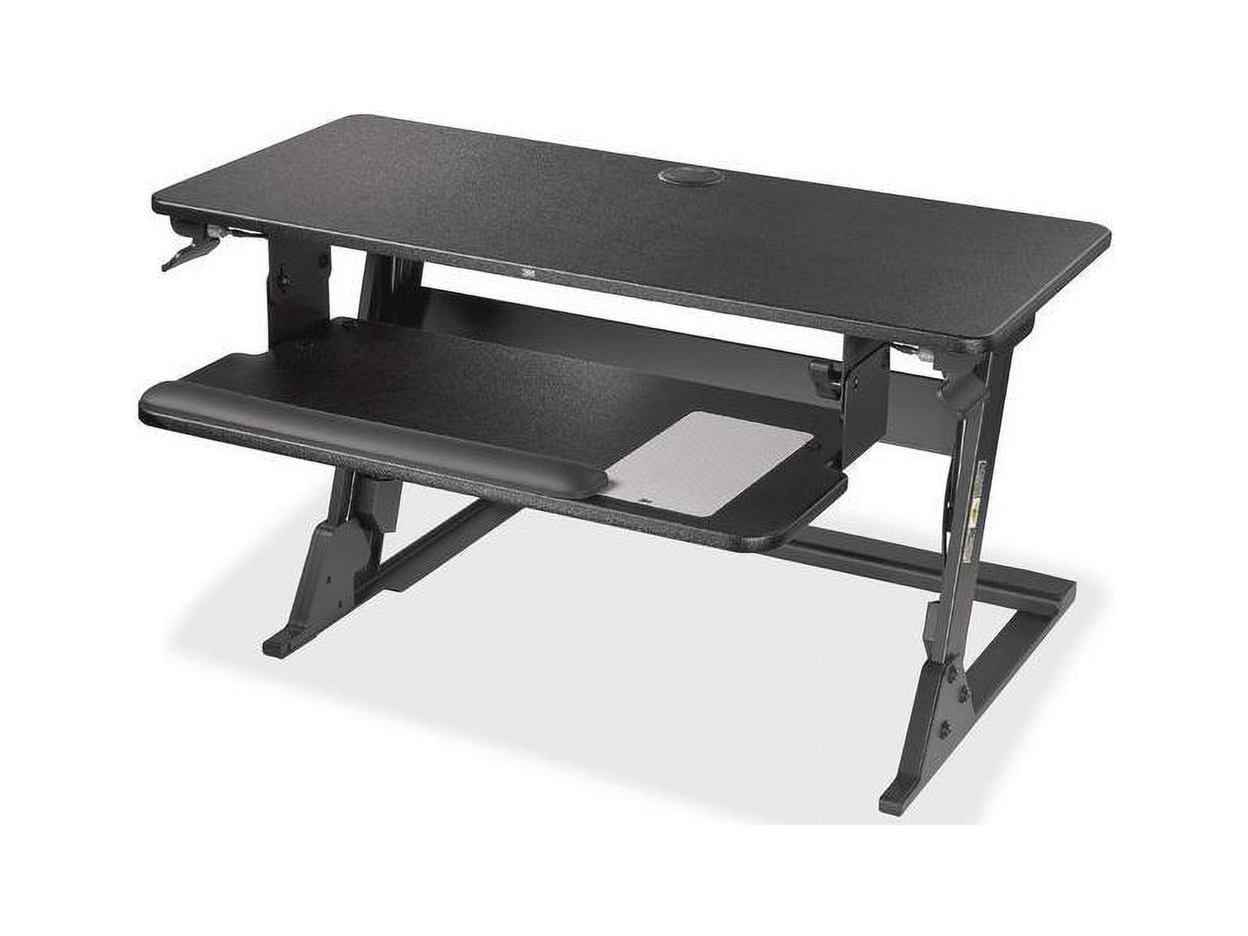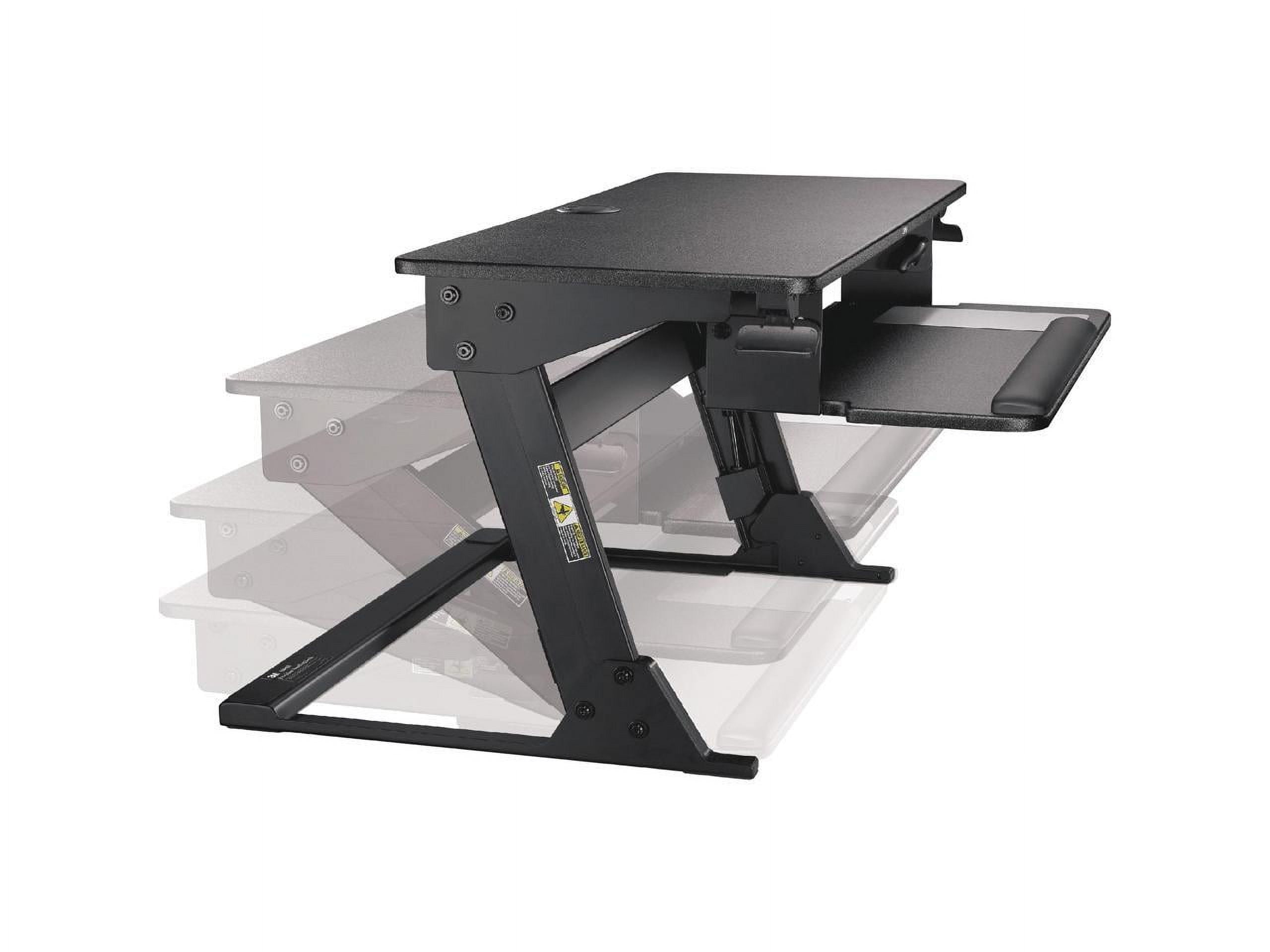 The 3M Precision Standing Desk provides maximum adjustability to achieve your most comfortable standing work position. When it comes to standing comfort, small adjustments can make a big difference! Standing desk with gel wrist rest and mouse pad. Black, MDF. Primary work surface is 35.4″” W x 23.2″” D and is large enough to fit two 24 monitors and holds up to 35 lbs. Gas assist continuous height adjustment allows you to move smoothly and quietly between sitting and standing positions in seconds. Includes 3M Gel Wrist Rest for your keyboard and 3M Precise Mouse Pad. Height adjustment range from 6.2 to 20 above the desk accommodates a wide range of users. Pre-assembled solution eliminates need for installers. +10°/-10° keyboard surface tilt to help achieve comfortable typing position. Sold as 1 Each. Side mounted levers controlling gas assist height change technology allows for continuous height settings from 6.2 to 20 above the desk surface. The keyboard surface has tilt adjustment range of 10?/+10? to help achieve most comfortable typing position. The 3M Precision Standing Desk also includes a 3M Gel Wrist Rest and Precise Mouse Pad for added comfort and productivity.