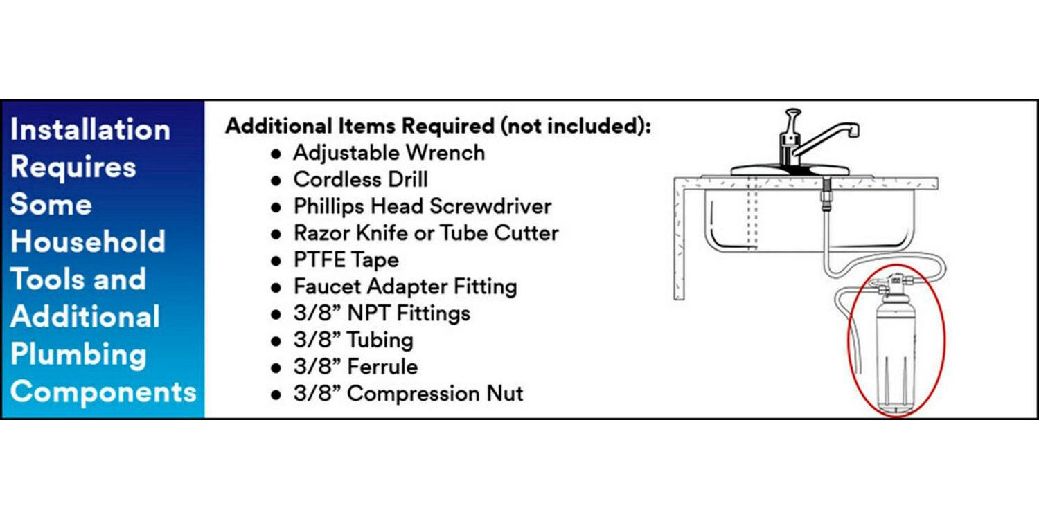 – INCLUDES a filter-head assembly, filter and mounting screws. Installation requires some household tools and additional plumbing components
