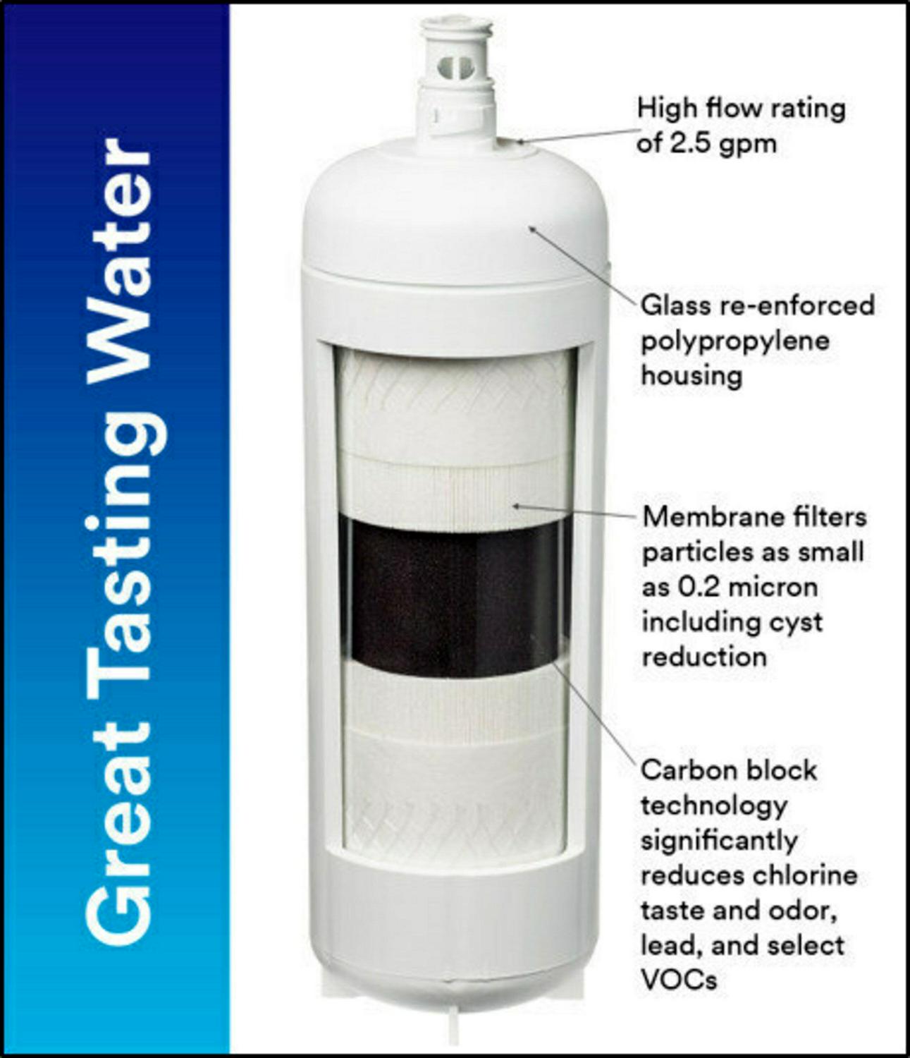 – CARBON-BLOCK FILTRATION: Advanced triple stage filtration process to help provide cleaner, clearer, better tasting drinking water
