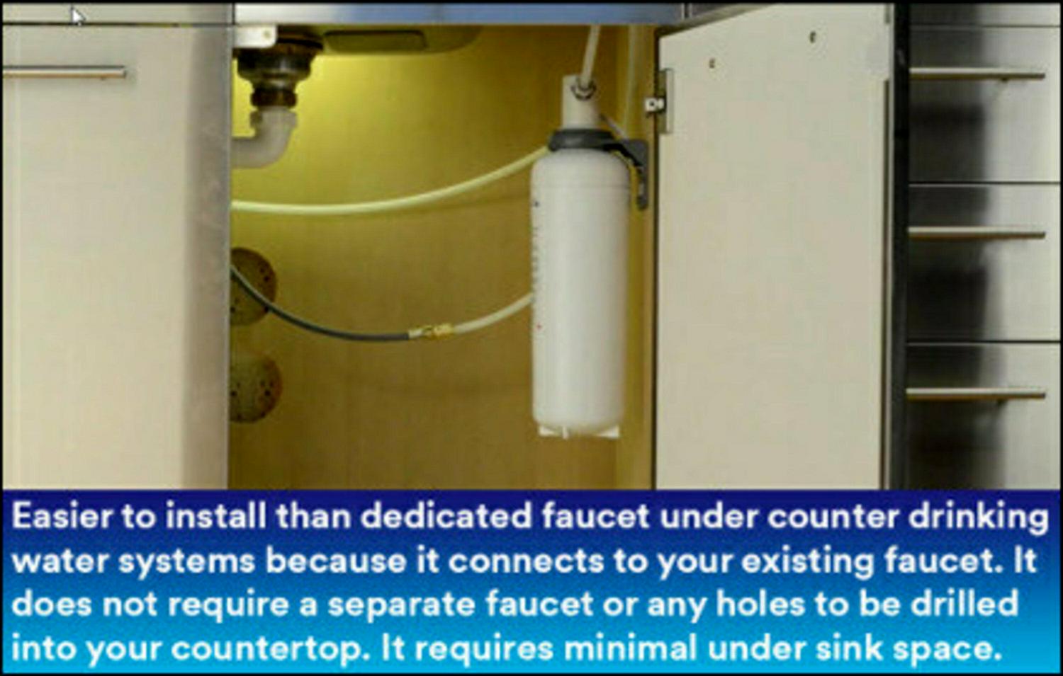 – EASY TO INSTALL: Easier to install than dedicated faucet under counter drinking water systems because it connects to your existing faucet. It does not require a separate faucet or any holes to be drilled into your countertop