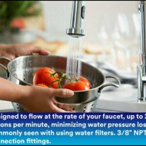 – FULL FLOW: Designed to flow at the rate of your faucet, up to 2.5 gallons per minute, minimizing water pressure loss commonly seen with using water filters. 3/8″ NPT connection fittings