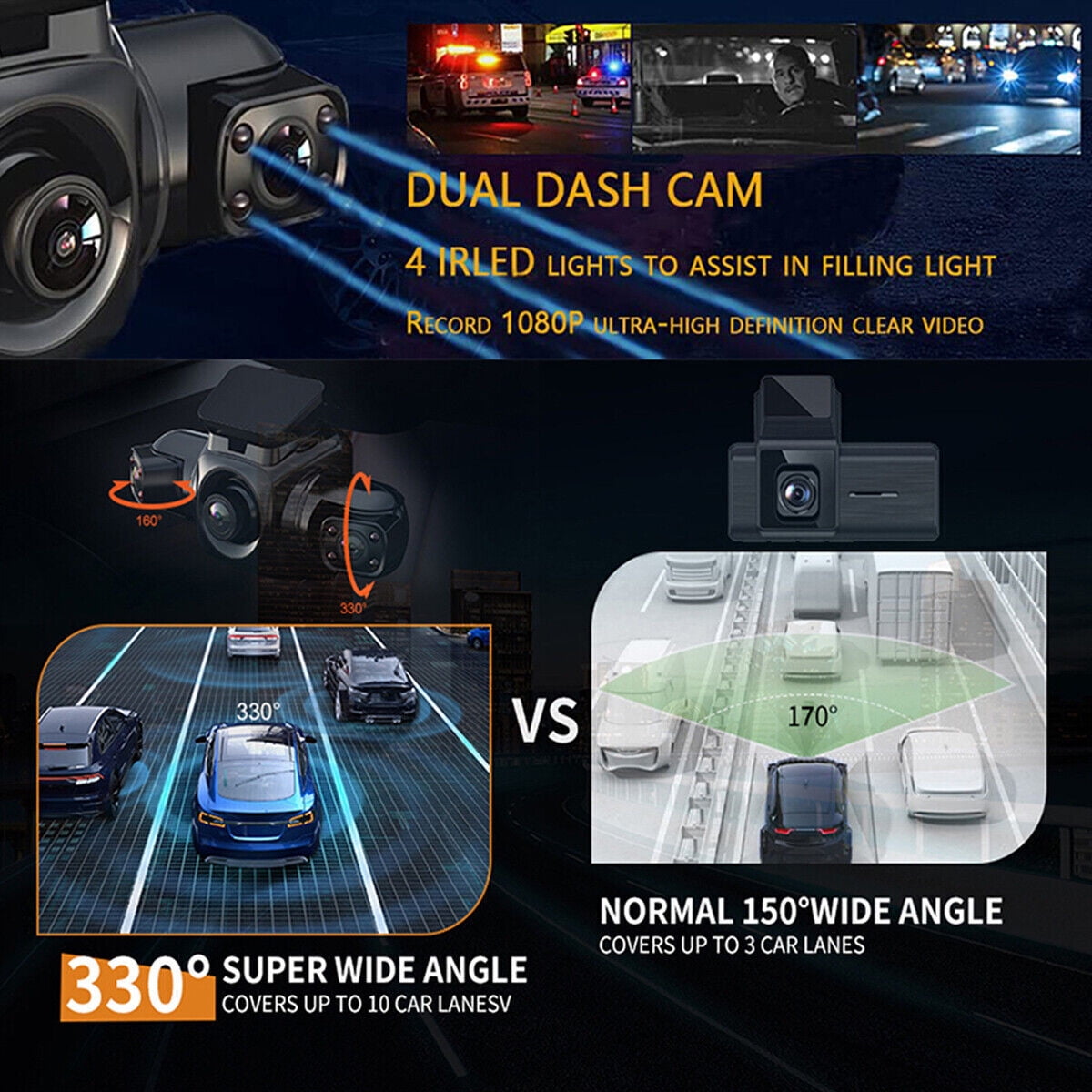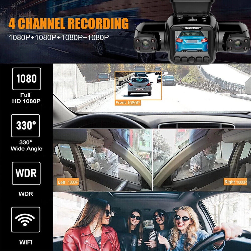 4 Channel Camera with Recording: The quad 1920*1080P dash cam’s 170-degree super wide-angle lens and 3 inches huge LCD screen give sharper movies and images even when traveling at high speeds, and allow you to re-watch important moments. The first dash cam can simultaneously record the front and sides of the vehicle and the two cabin cameras can freely change the recording angles and rotate left and right allowing you to record in opposite directions as well. Built-in GPS and Tracking Speed: The dash camera’s integrated GPS allows it to precisely pinpoint the vehicle’s location, speed (KMH/MPH), time, and routes on a map in real time. Install and use the GPS player. The right side of the GPS player displays the path trajectory that has been taken and coordinates help track the precise positions of an accident, which is important for roadside help and insurance claims. Quality Night Vision and Reassuring All-Weather Monitor: The cabin cameras have an F1.8 aperture and 4 infrared lights. In addition to producing incredibly clear recordings, its image performance will be far superior to that of other dash cams at night. The cameras also have the latest, most sensitive night vision image sensor integrated right into them, so they can capture stunning images even in pitch-black spaces at night that protect you around the clock. Loop Recording and Emergency Lock: When the memory card reaches its maximum capacity, it will automatically overwrite the oldest unlocked footage to ensure unlimited loop recording. Support 1 minute/2 minutes/3 minutes loop recording, support micro SD card of class 10 or above, up to 256GB. once the built-in gravity sensor detects a collision, D80 Car Recorder will automatically lock the current video as proof of the accident. Locked files will not be overwritten by looped video. Easy to use: No battery is needed to prevent damage to your car or other accidents caused by sunlight and high temperature. This D80 driving recorder is easy to install and operate, please refer to the pictures in our user manual. Simply insert the SD card (Not Included) and connect it to the power supply.